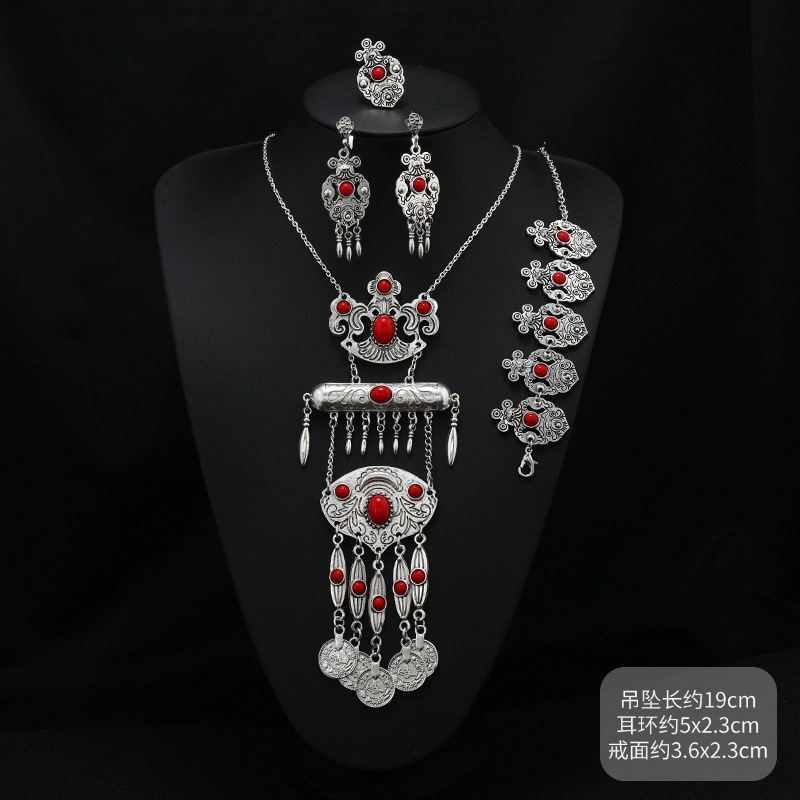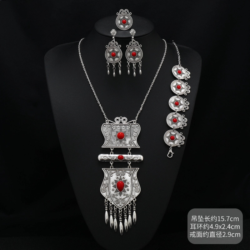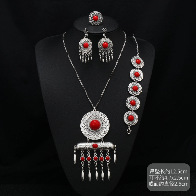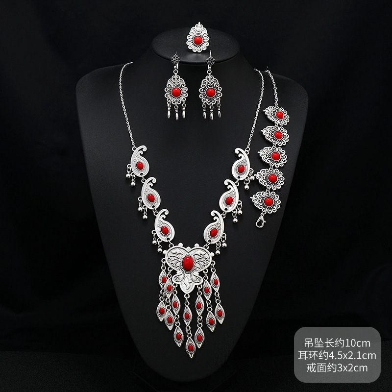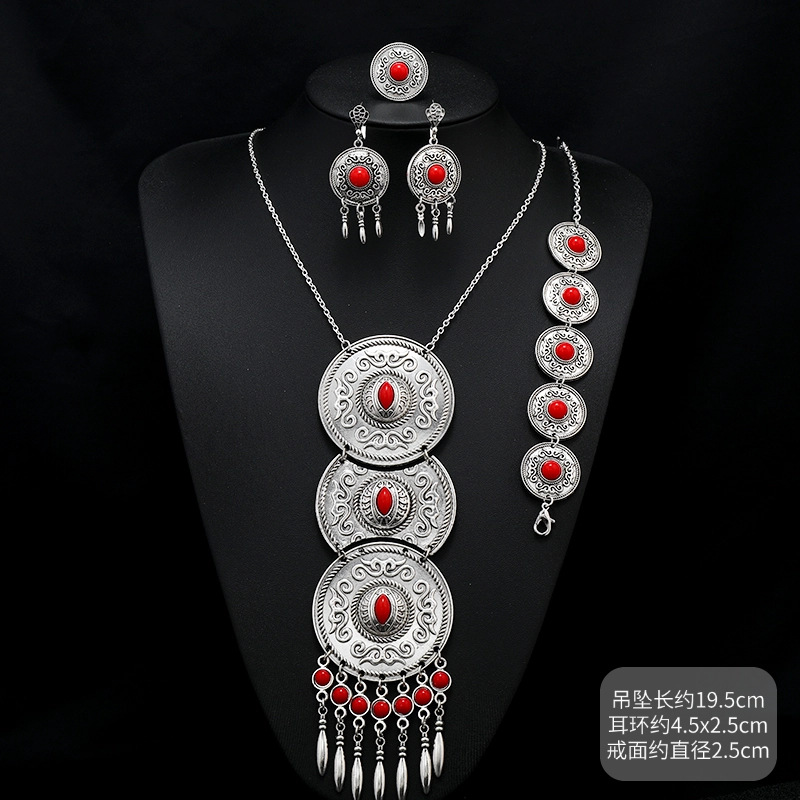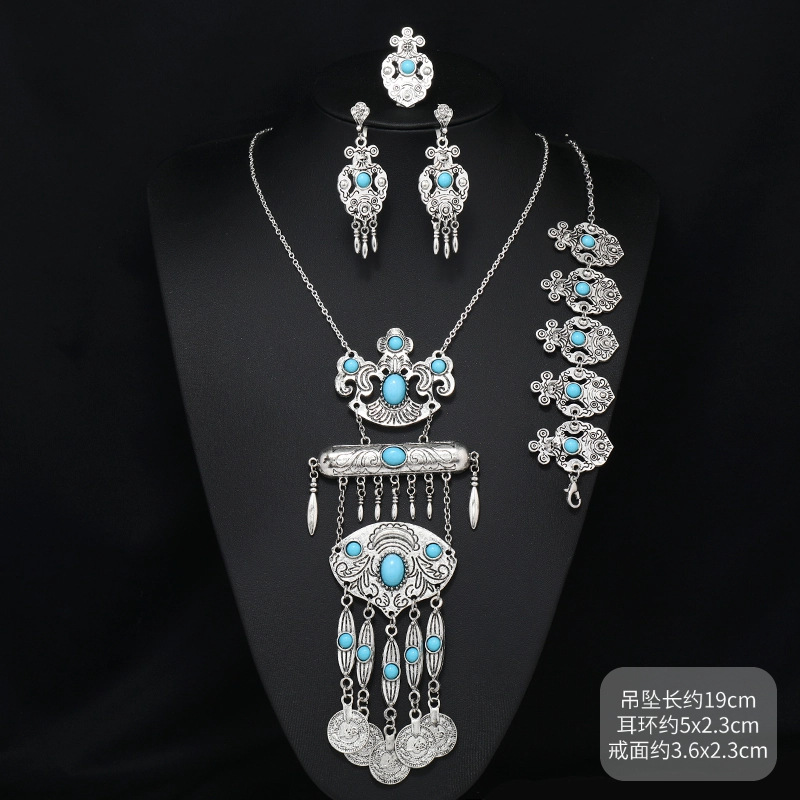 欧美民族风长款流苏项链复古异域波西米亚度假手链耳环旅拍套装女