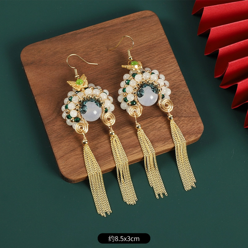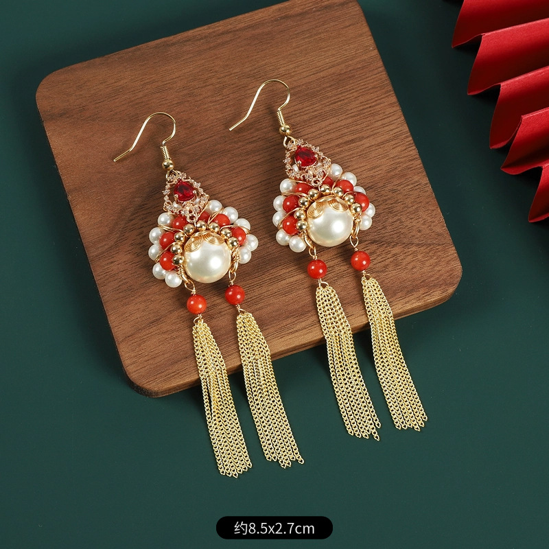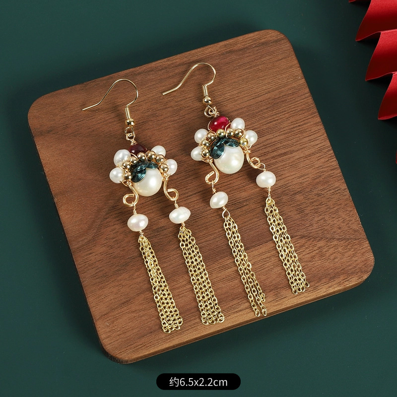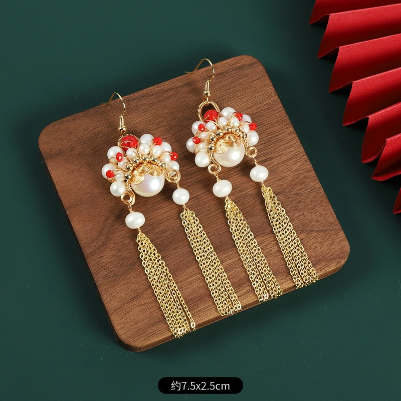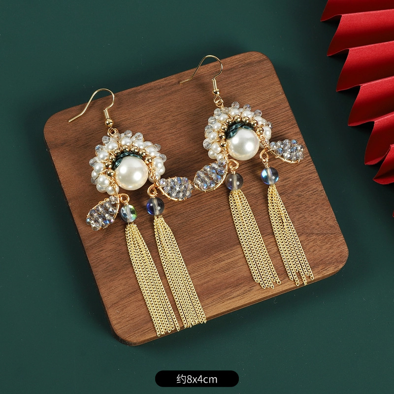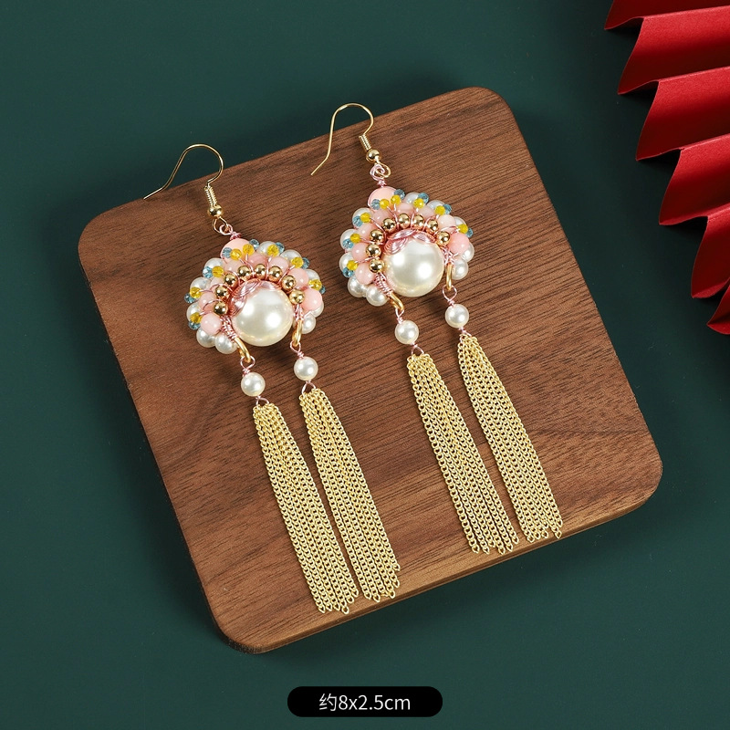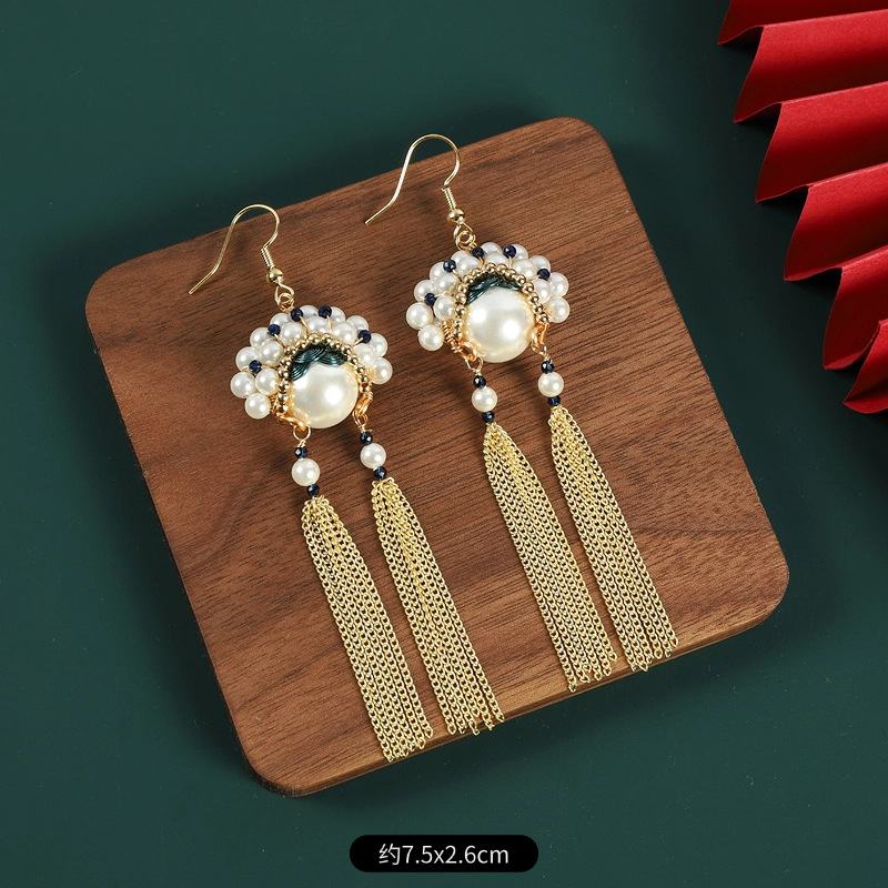 新中式刀马旦脸谱流苏珍珠耳环国风设计感气质长款小众国潮耳饰女