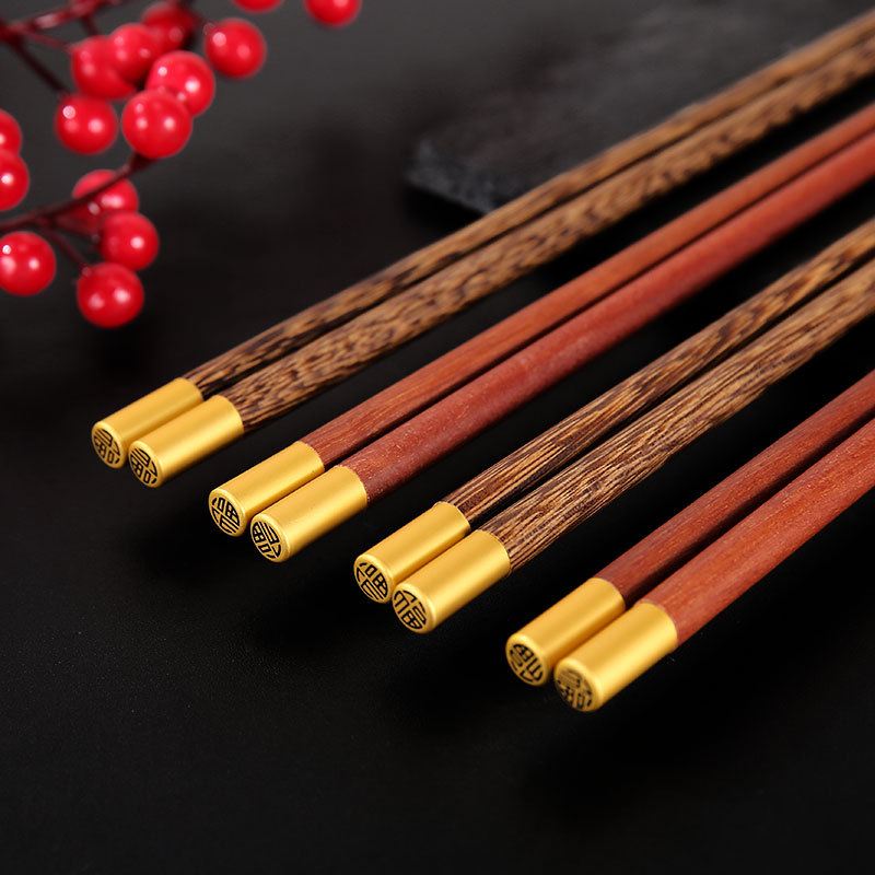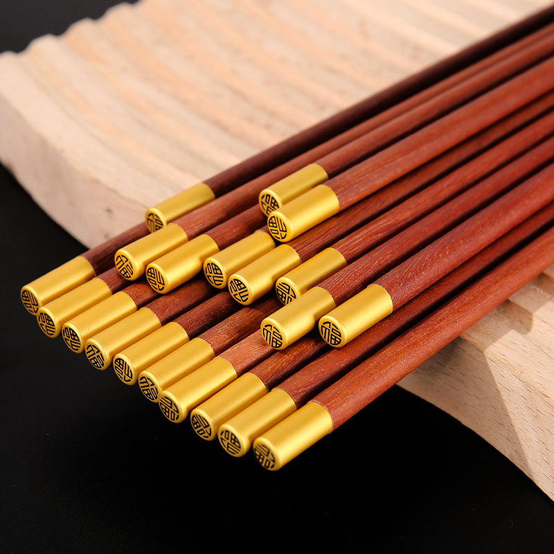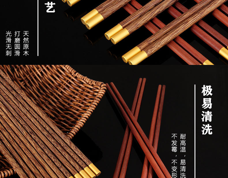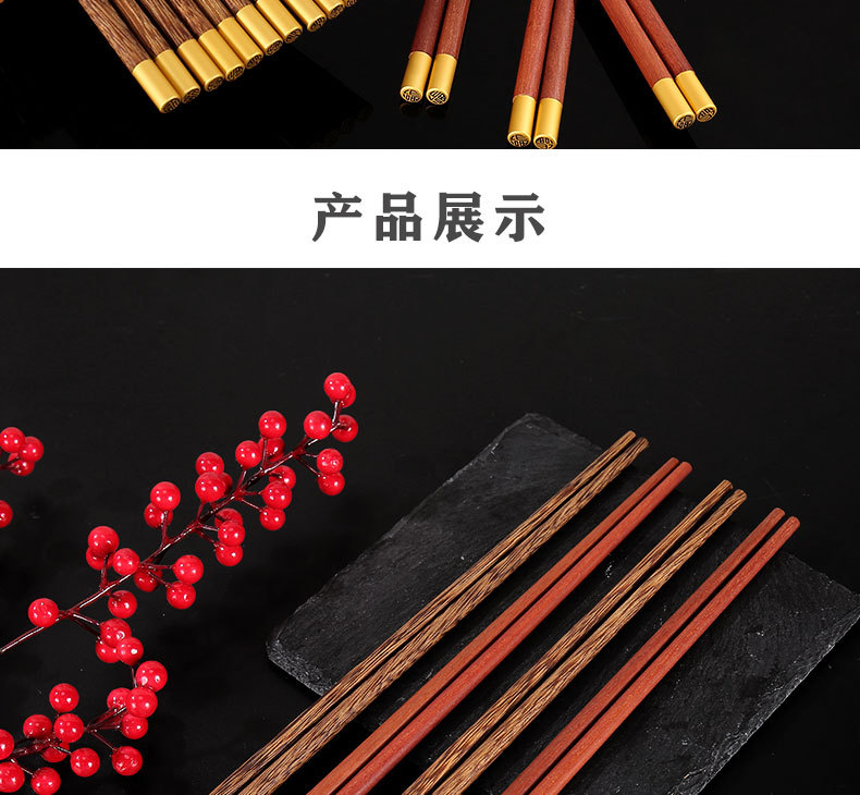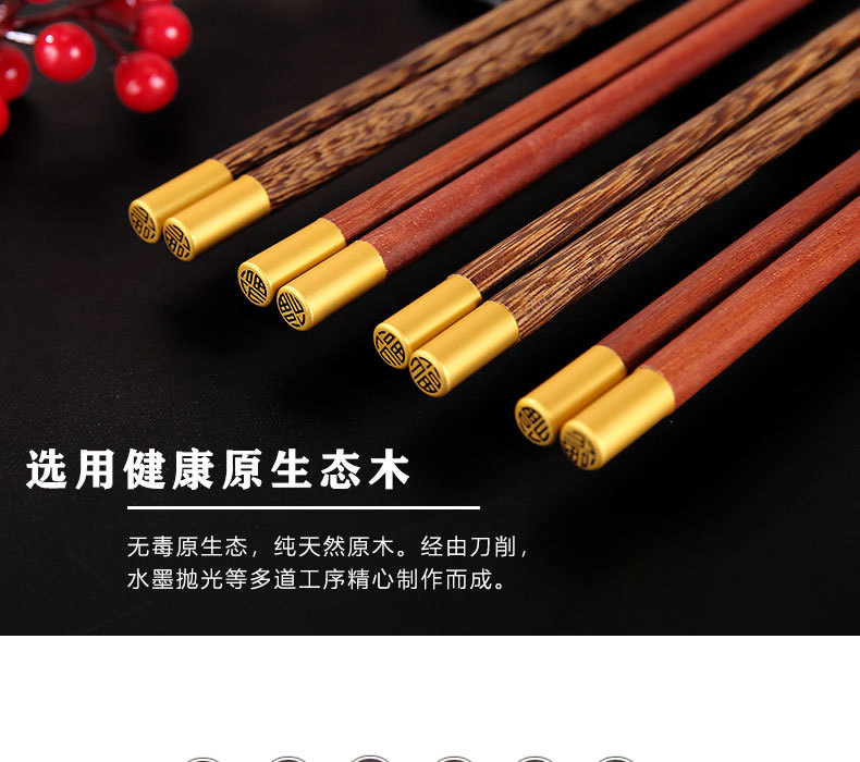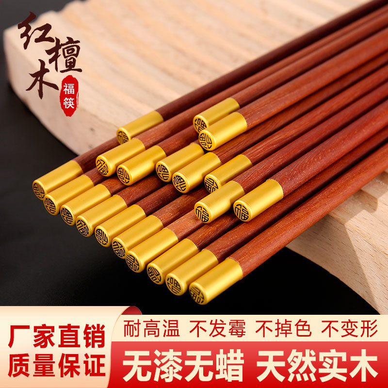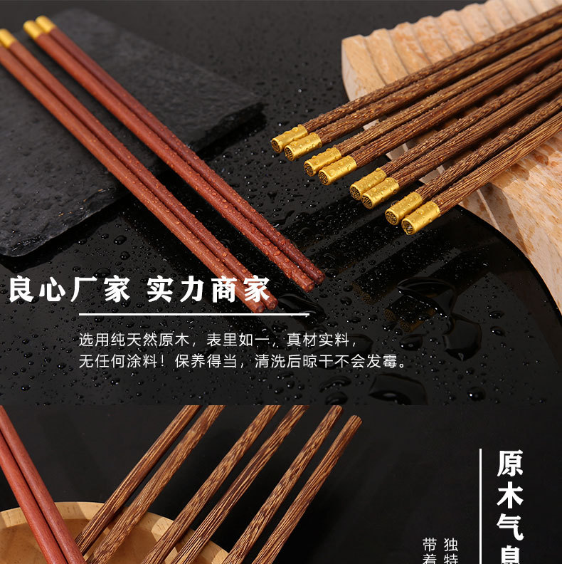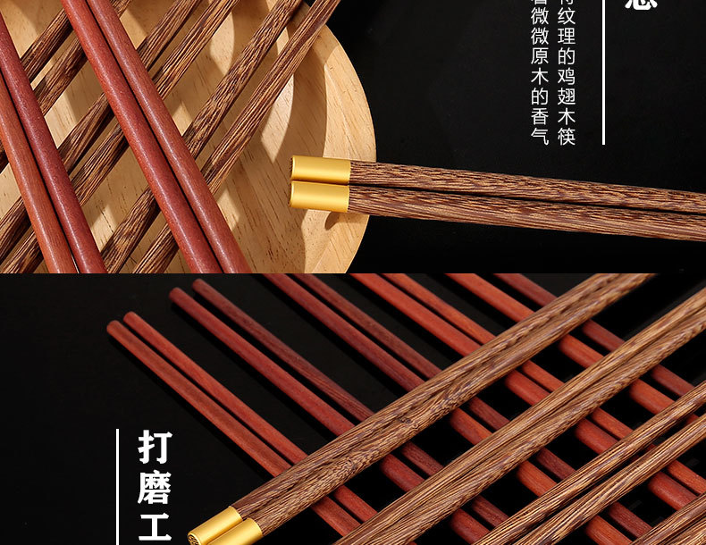 鸡翅木筷子家用高档套装批发防霉无漆无蜡红檀木原木实木筷子餐具