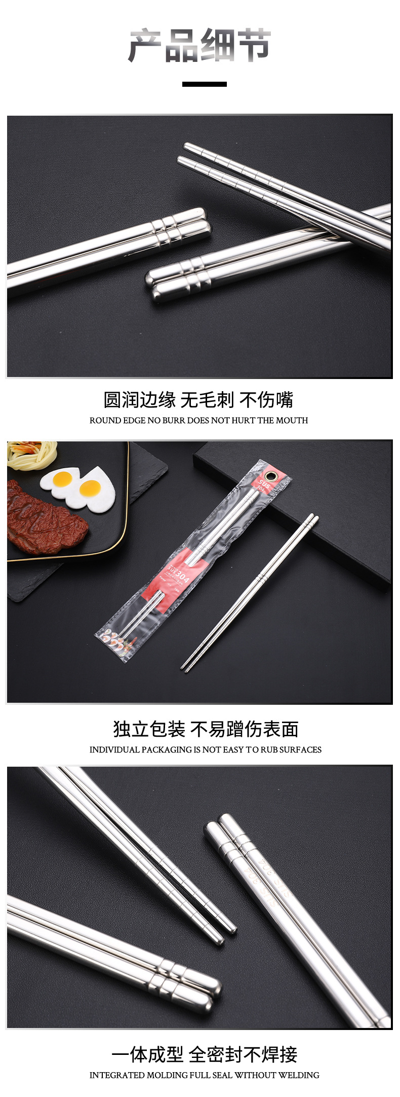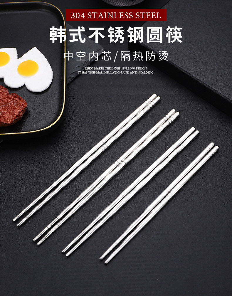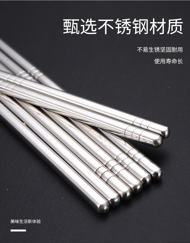 304不锈钢筷子家用一人一筷酒店防滑隔热金属筷子礼品筷激光LOGO