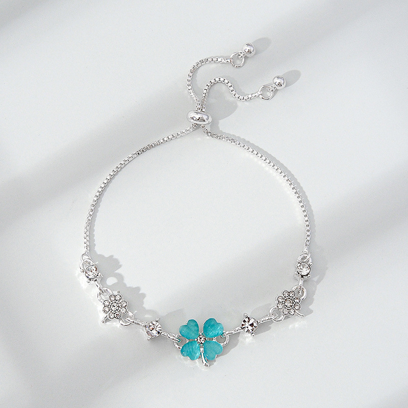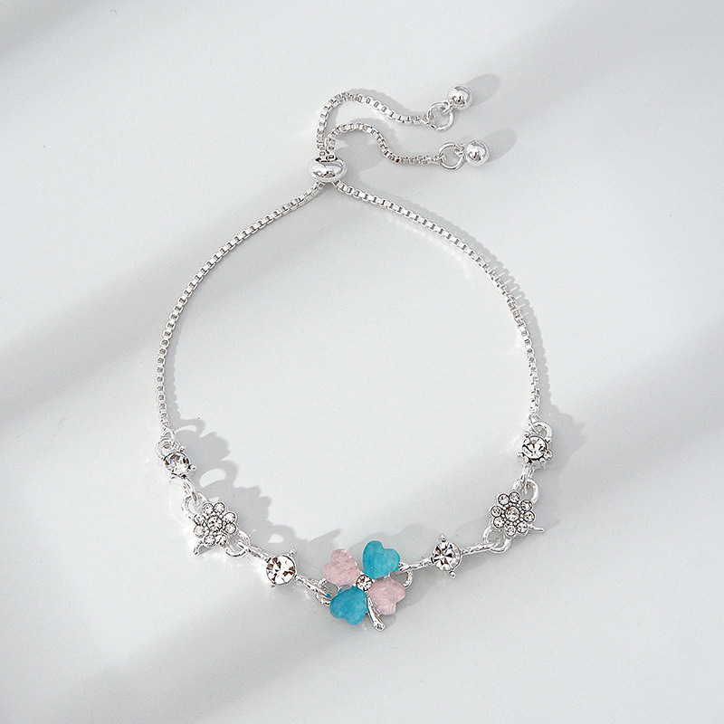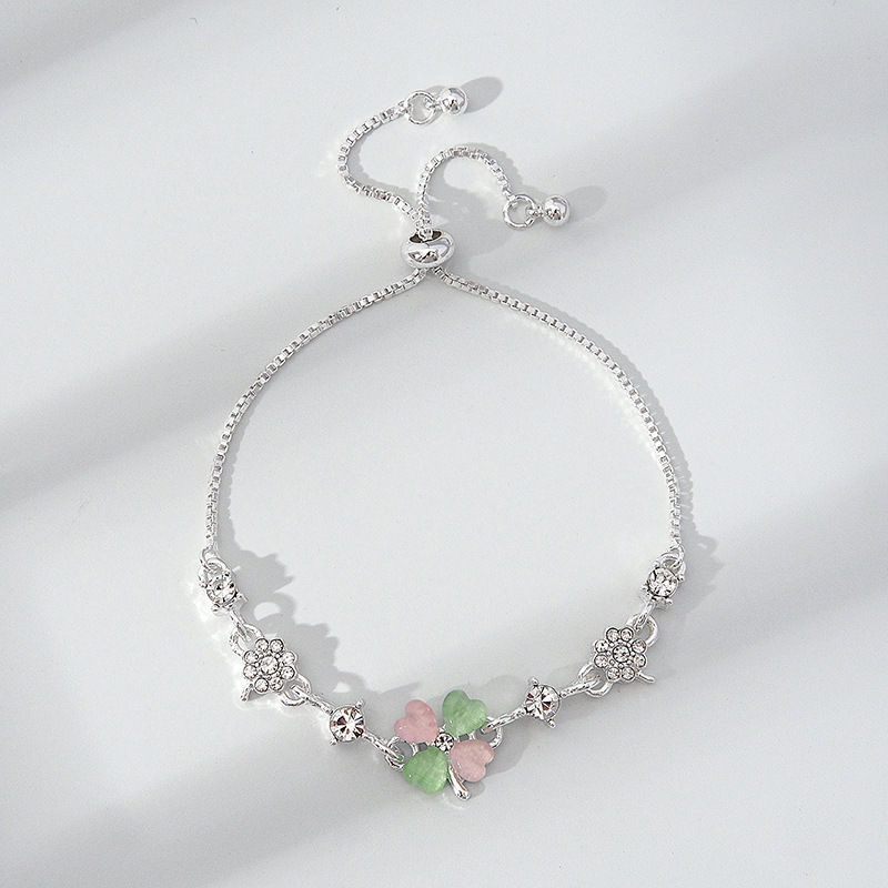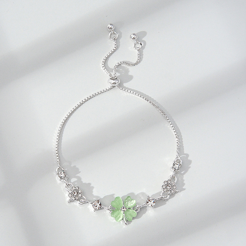 韩版新款幸运四叶草手链时尚个性森系ins 设计可抽拉调节大小手环
