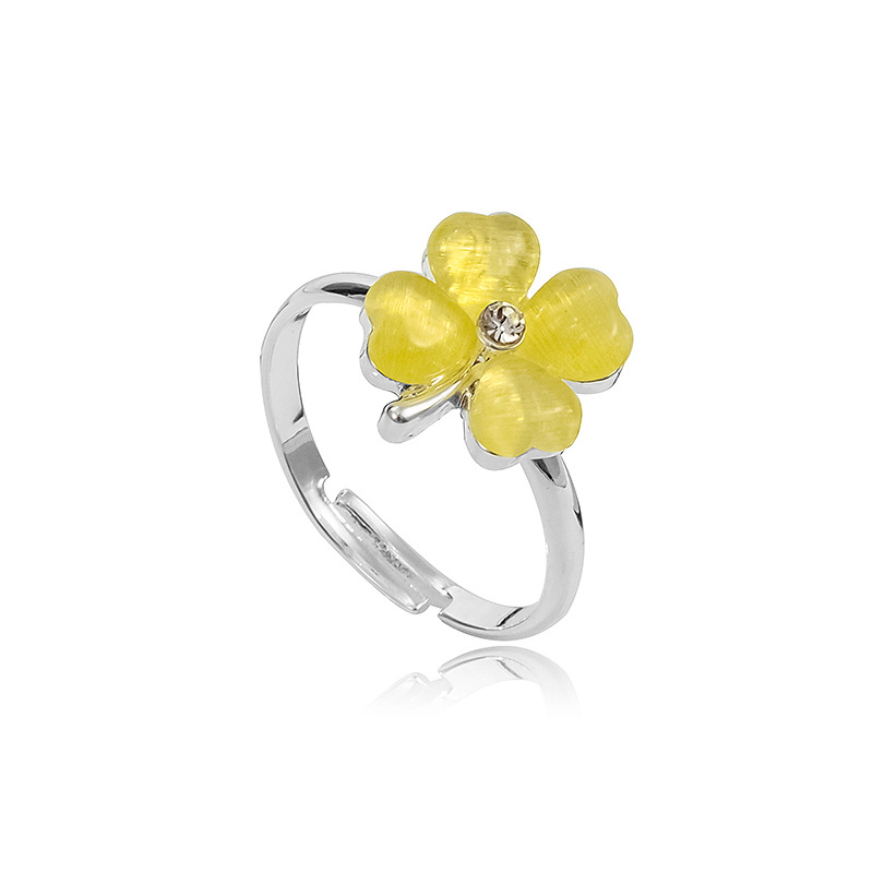 森系小清新绿色四叶草戒指女时尚个性设计感独特百搭可调节指环潮
