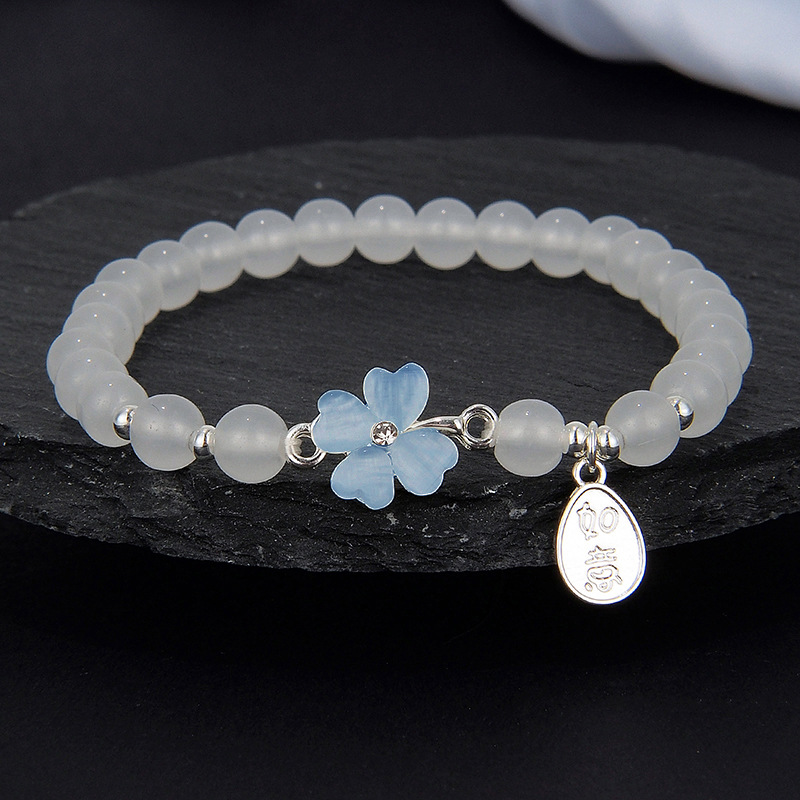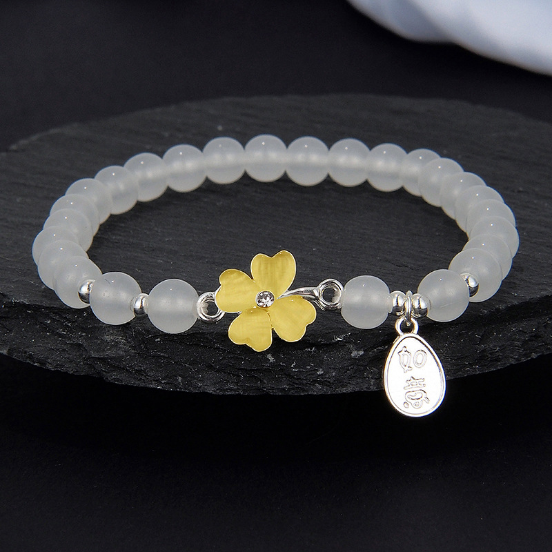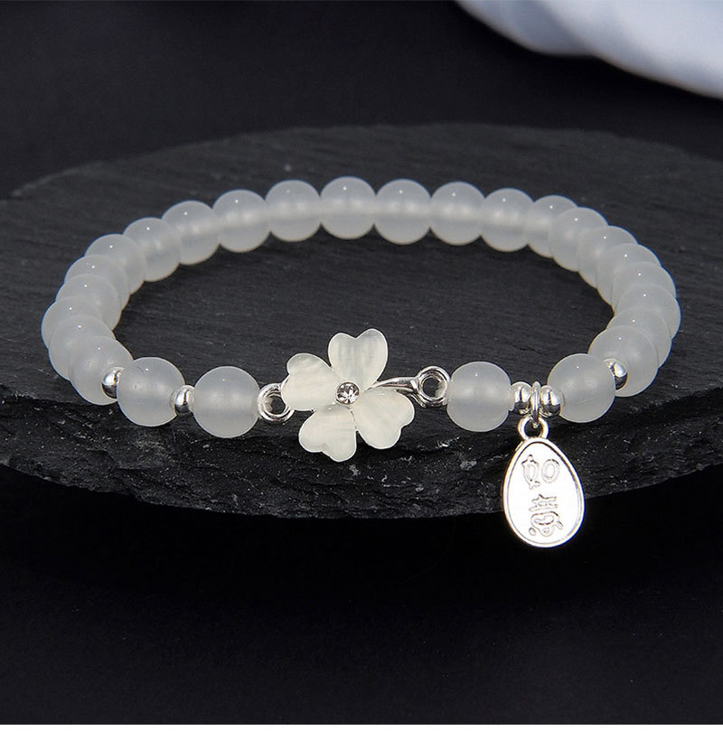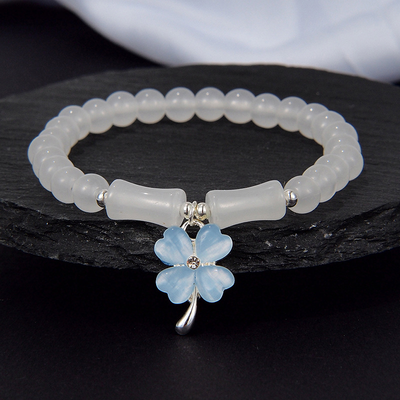 幸运相遇有你知竹韩版新款森系四叶草白色东陵玉竹节串珠手链手串