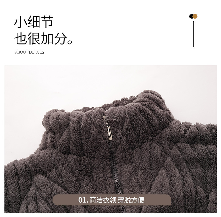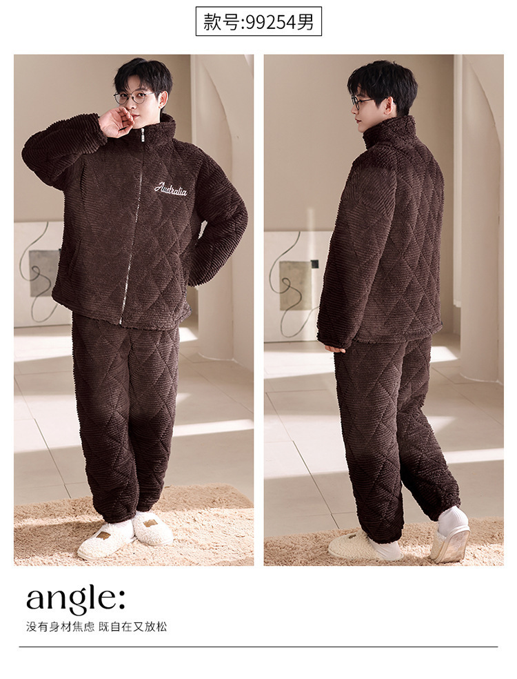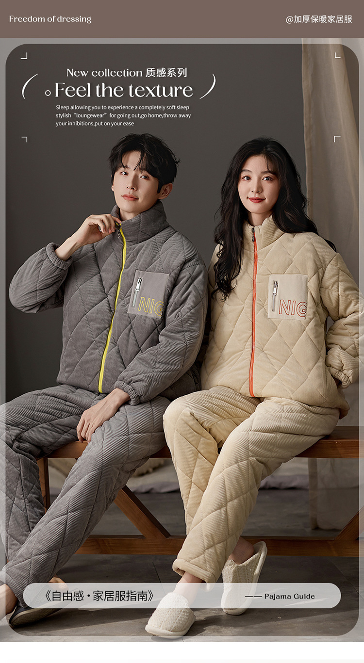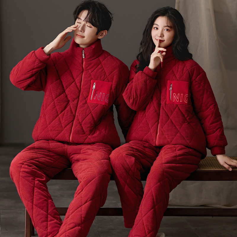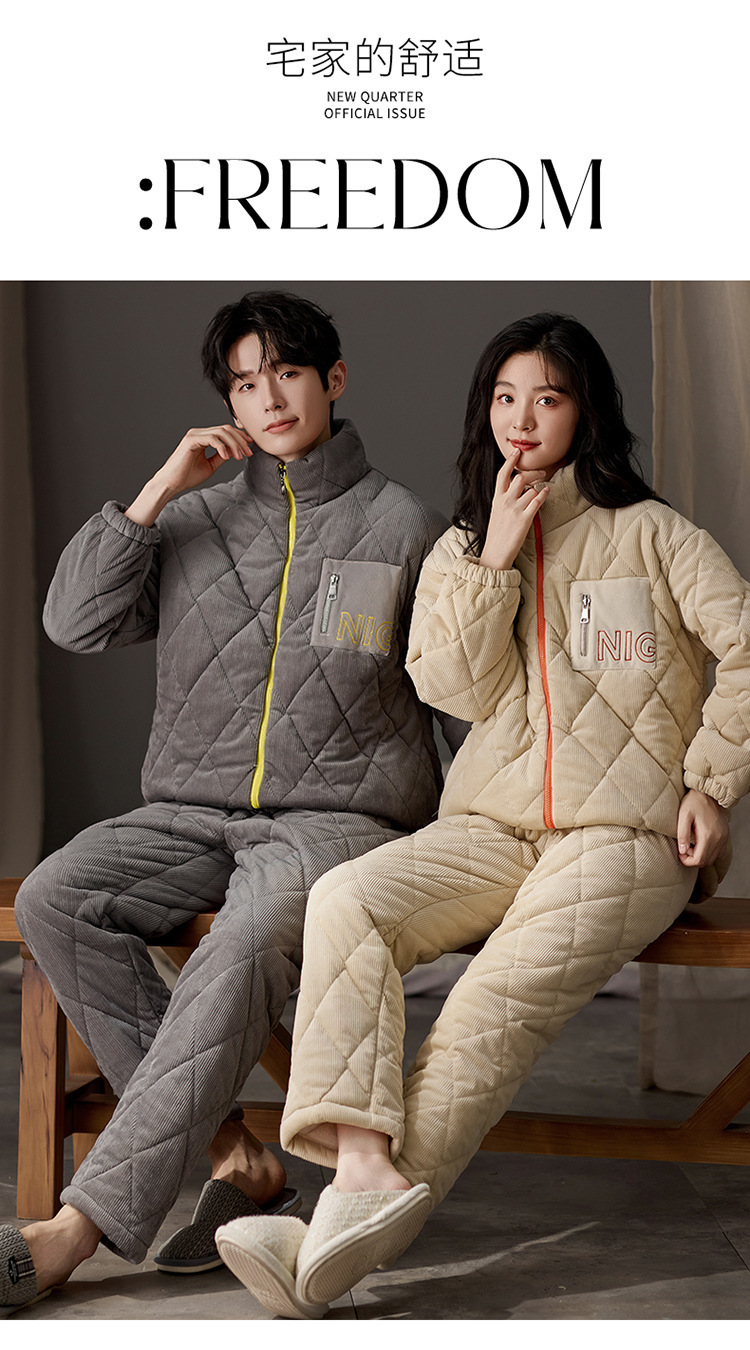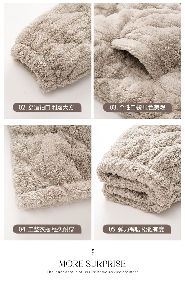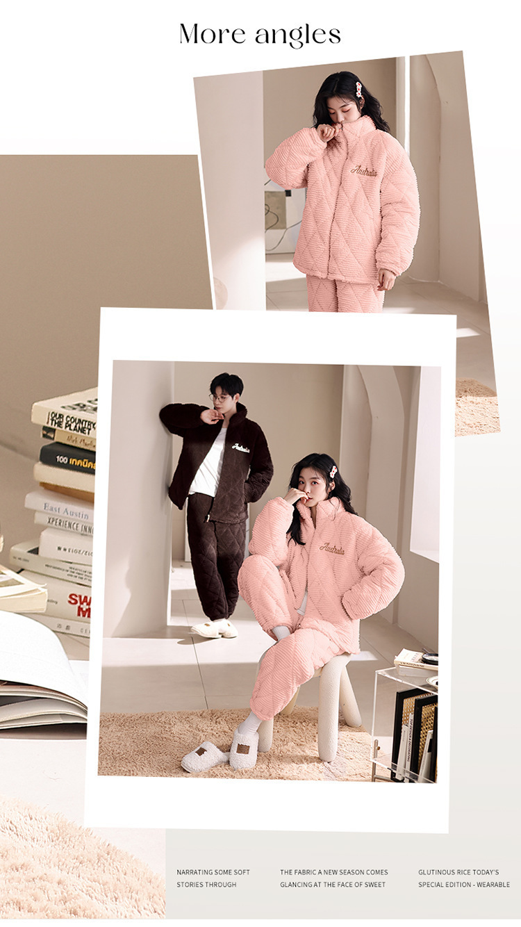 冬季情侣睡衣女珊瑚绒开衫三层加厚夹棉加绒法兰绒男生棉袄家居服