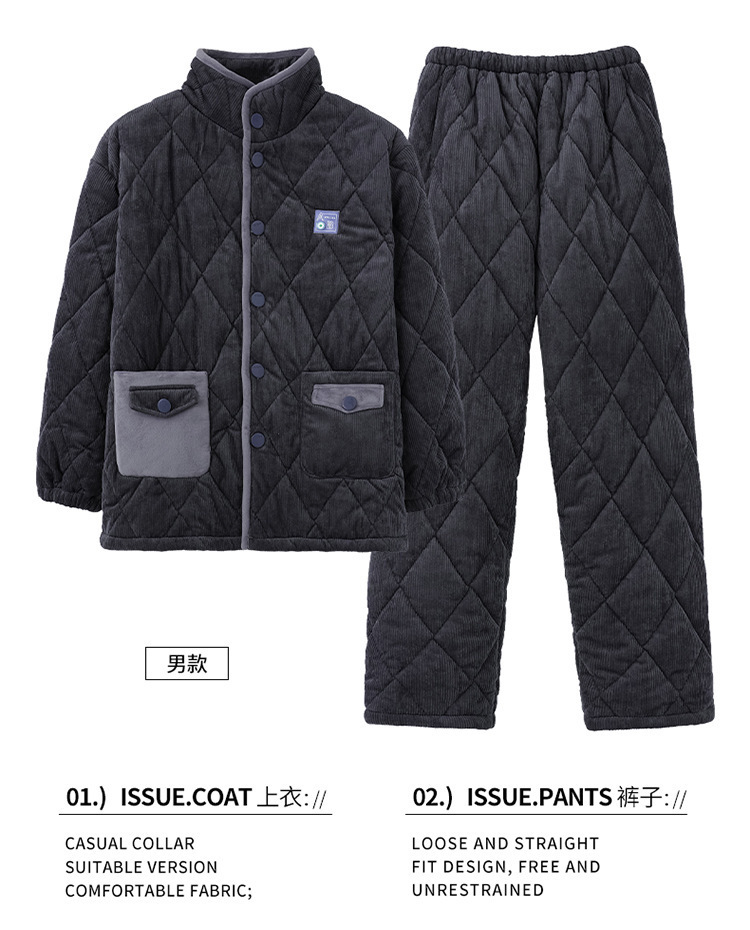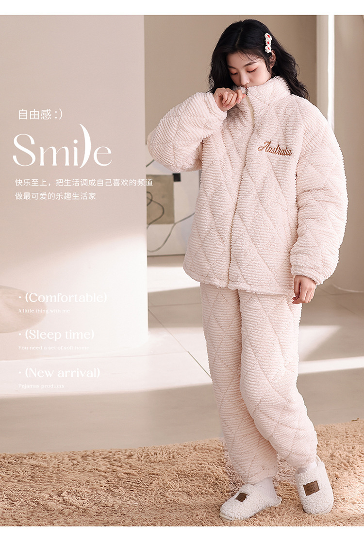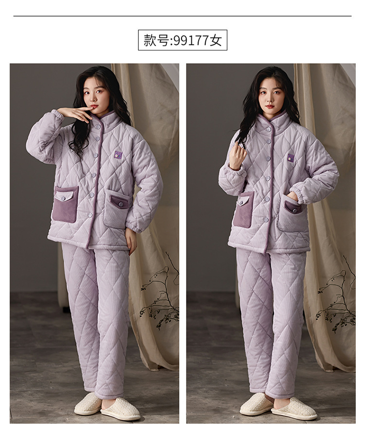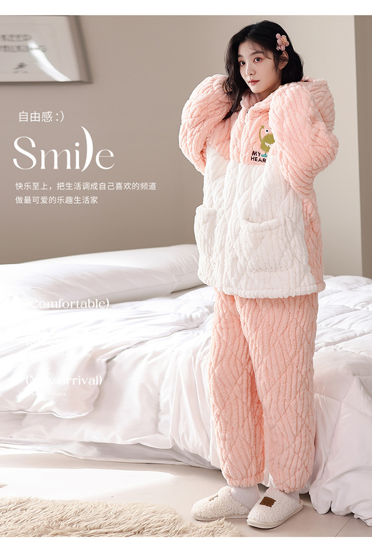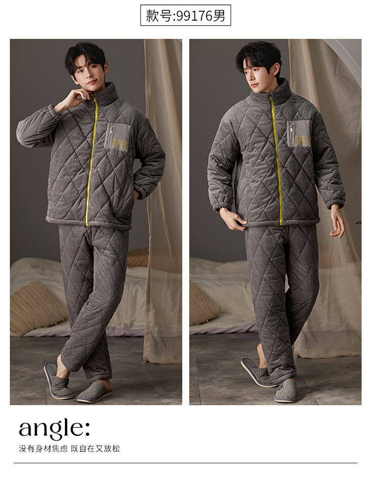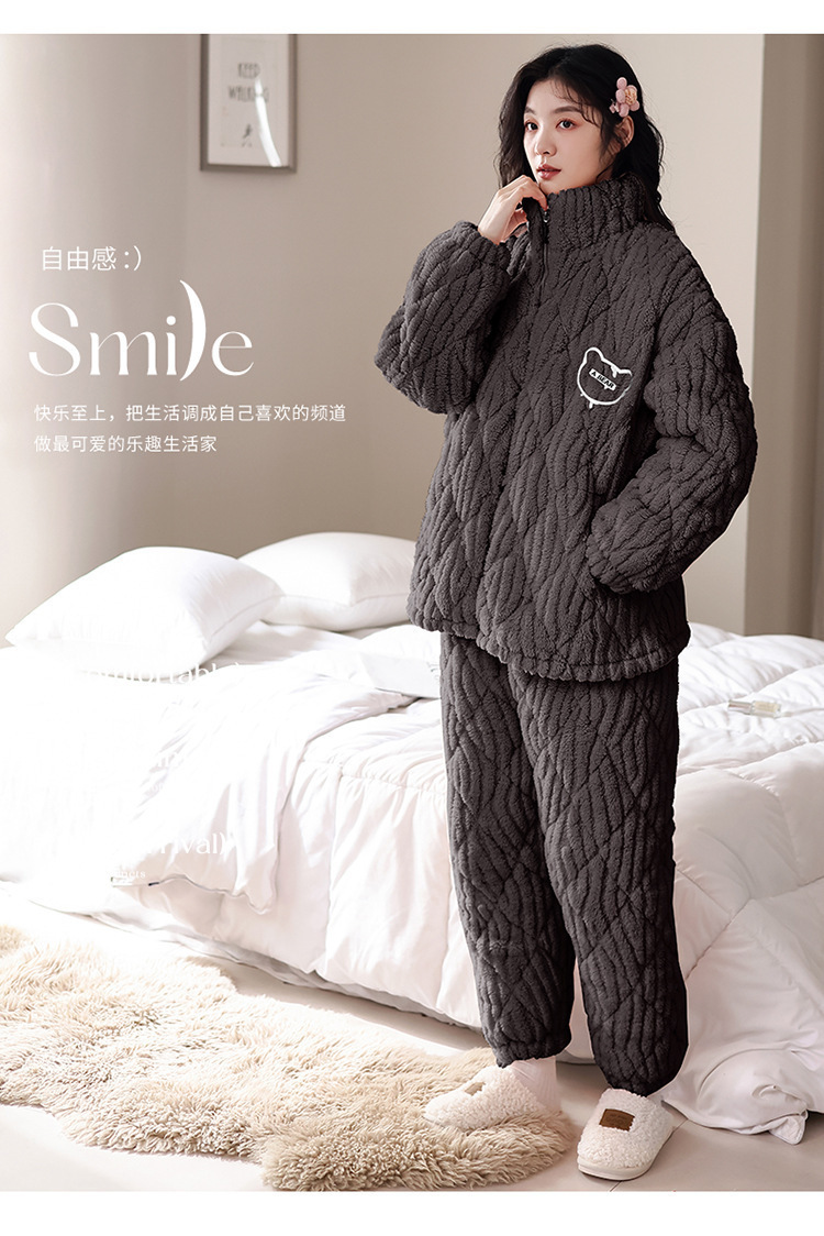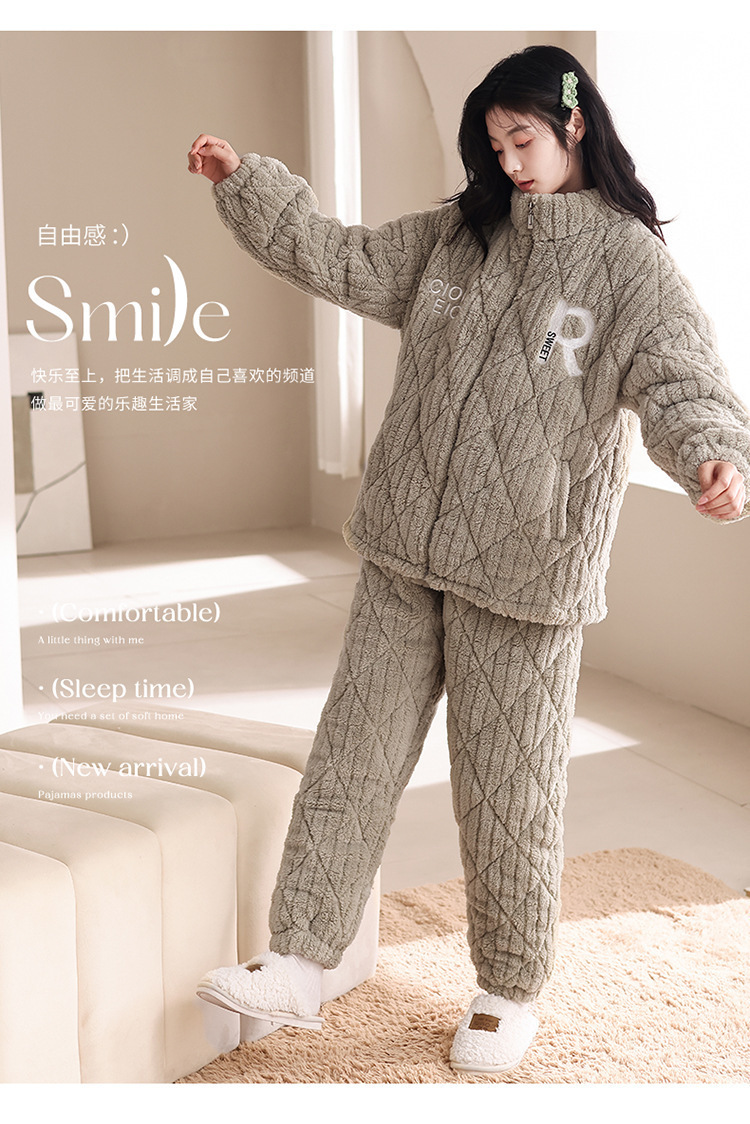 冬季情侣睡衣女珊瑚绒开衫三层加厚夹棉加绒法兰绒男生棉袄家居服