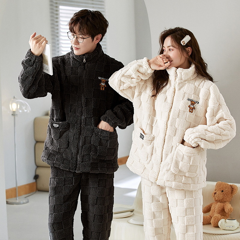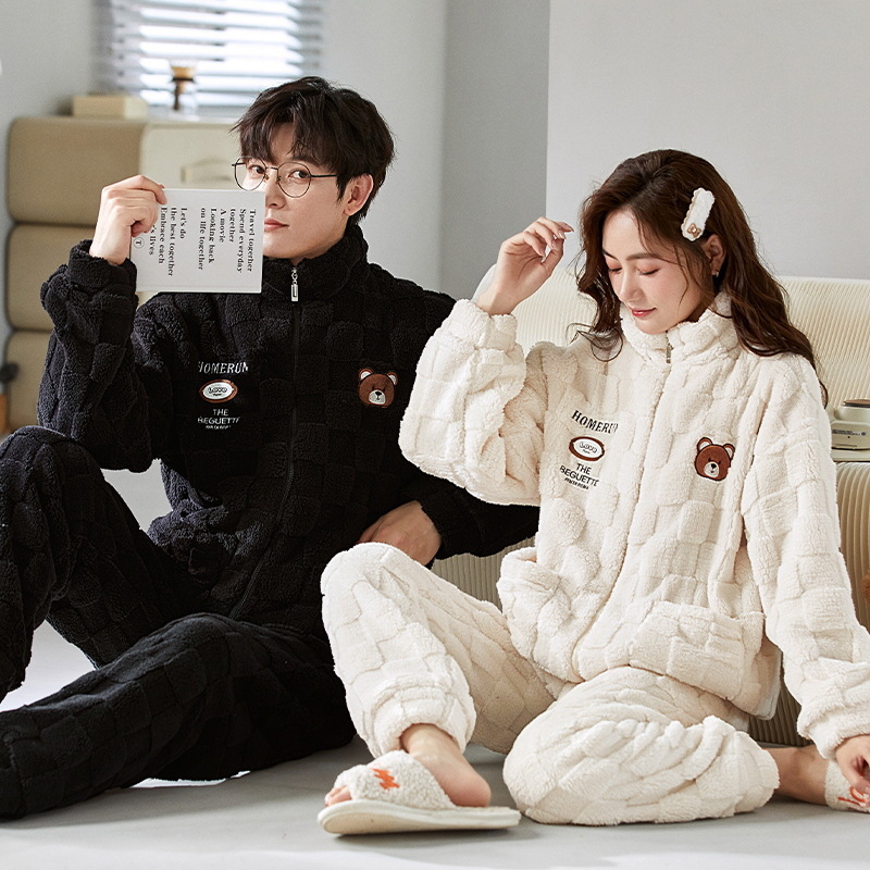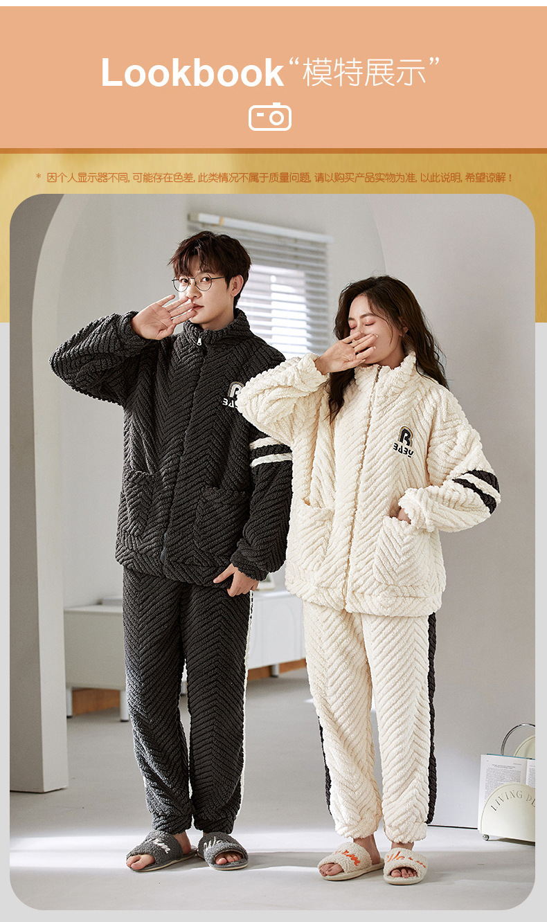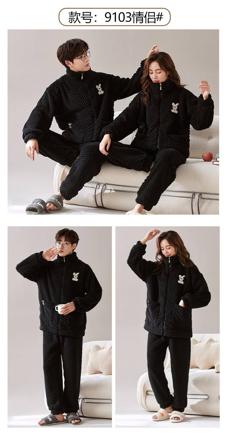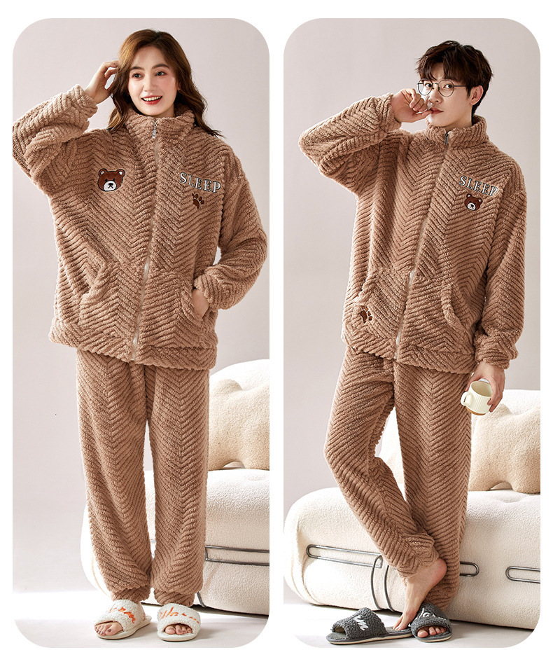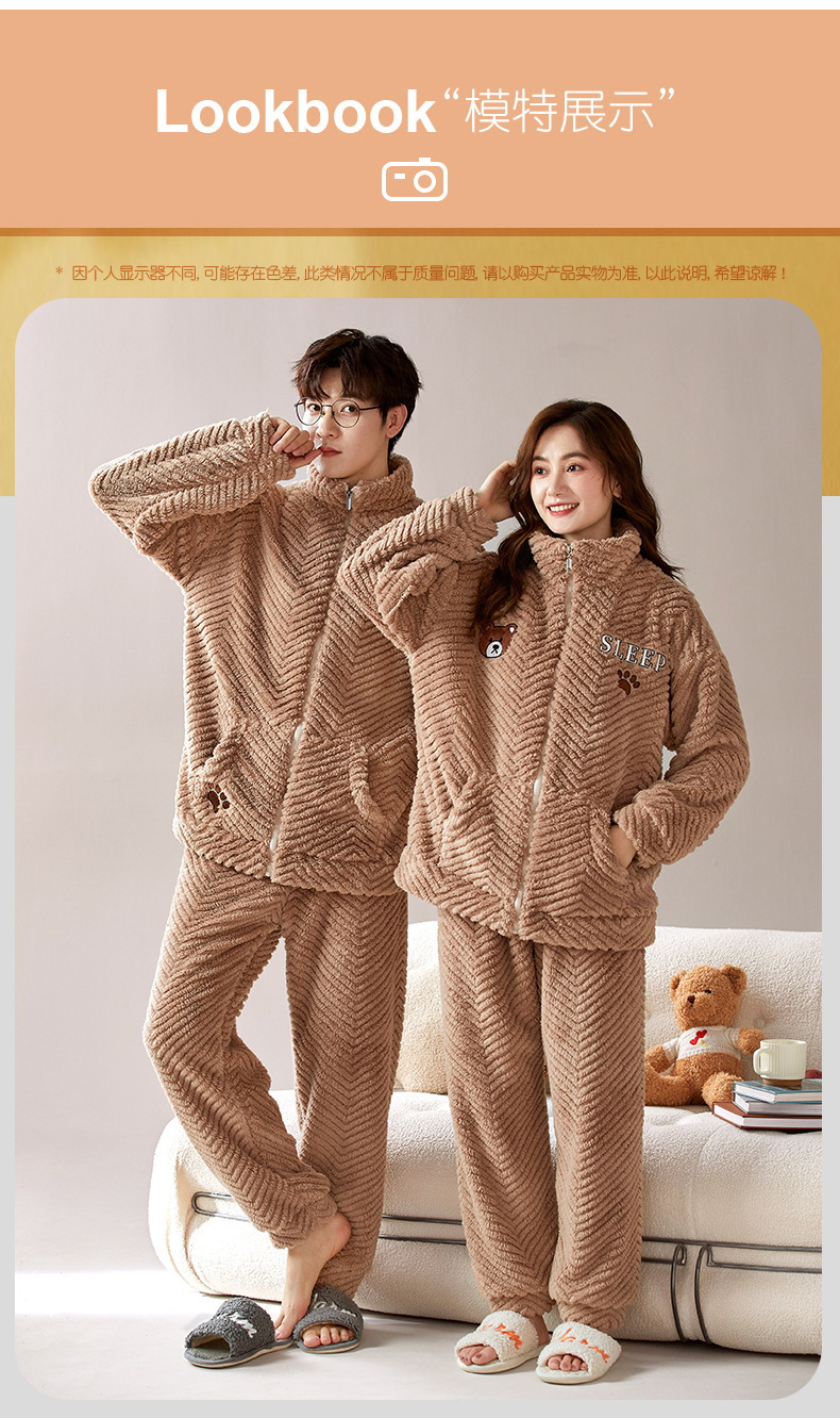 情侣睡衣秋冬季加厚珊瑚绒女款卡通冬天法兰绒男士家居服拉链套装