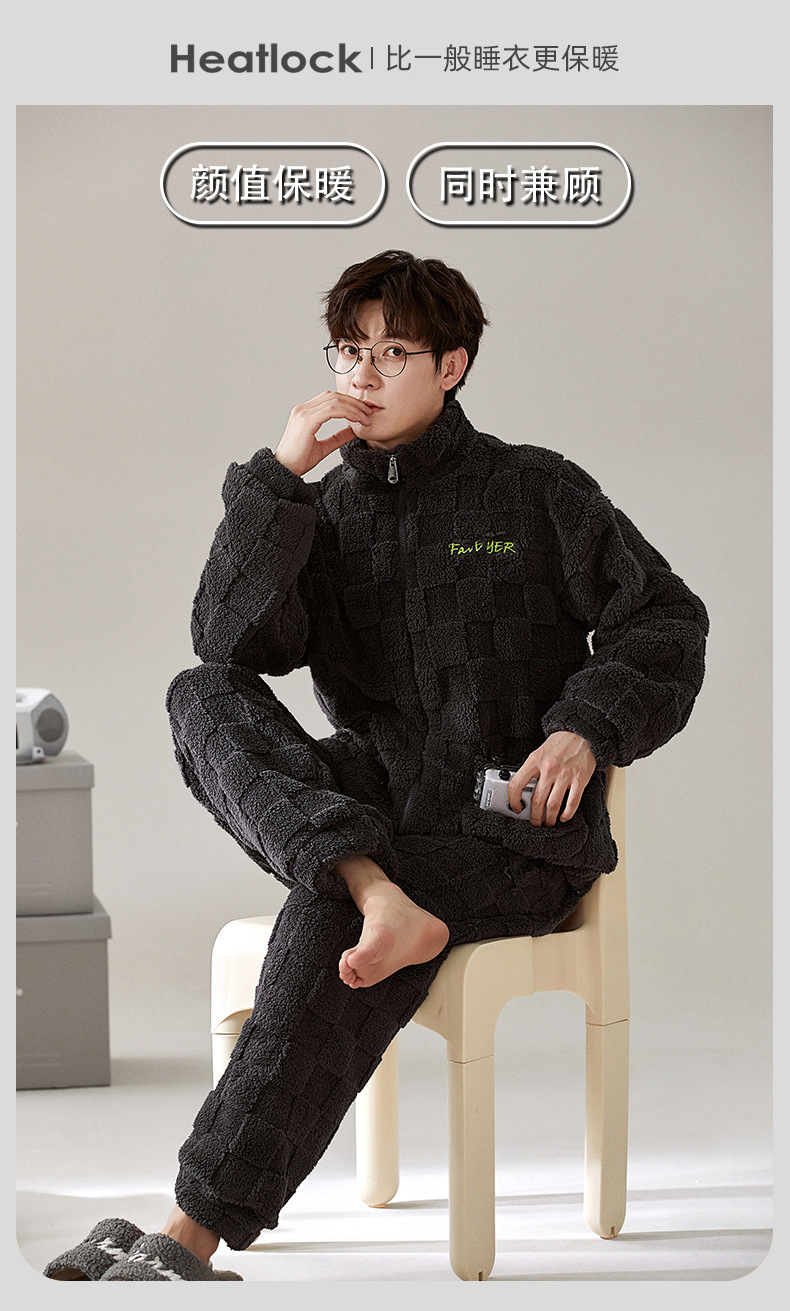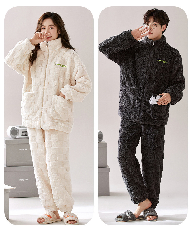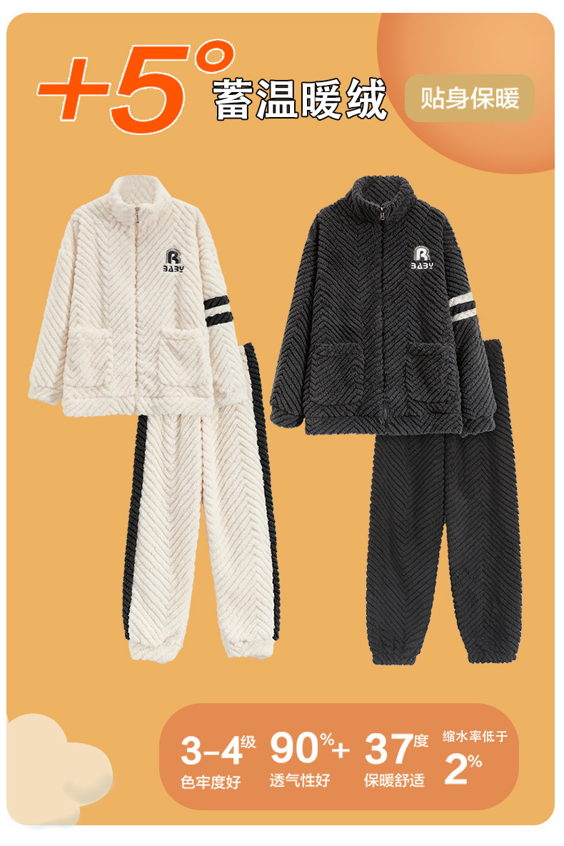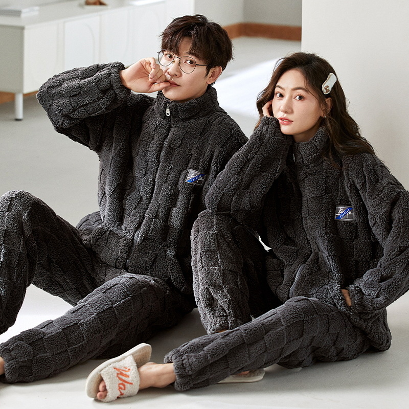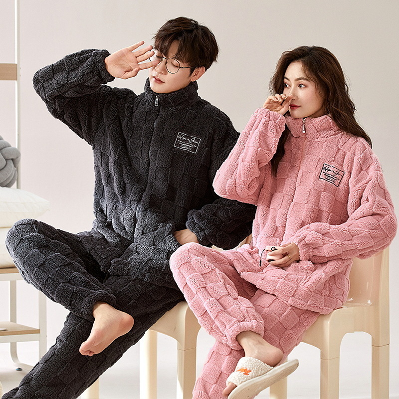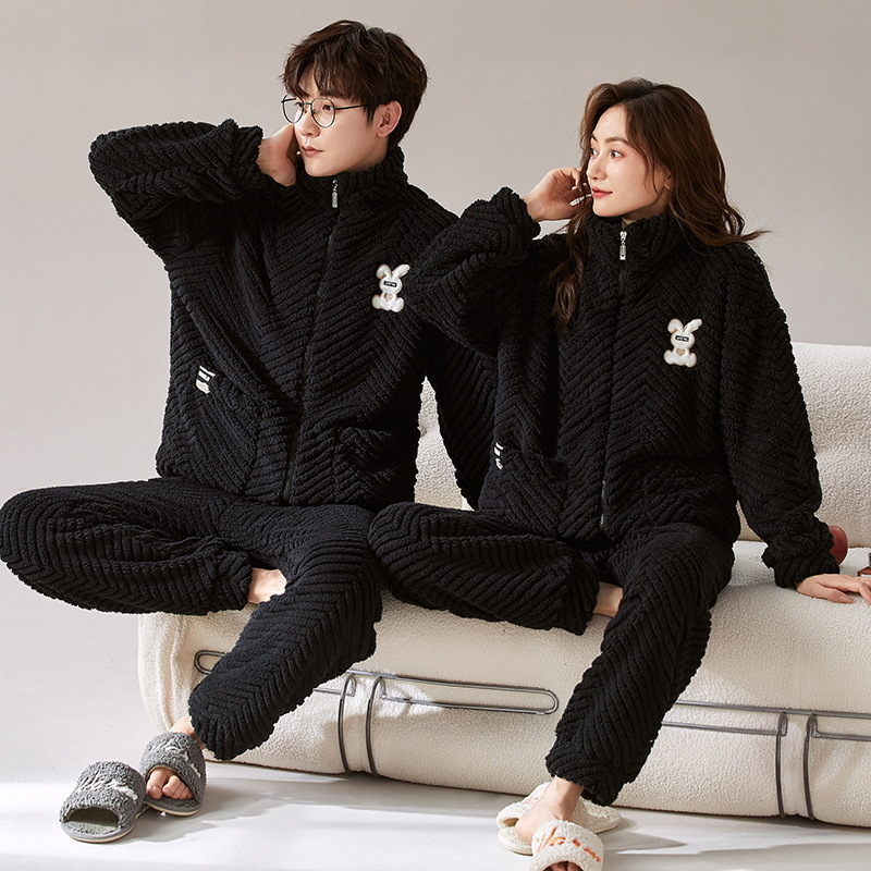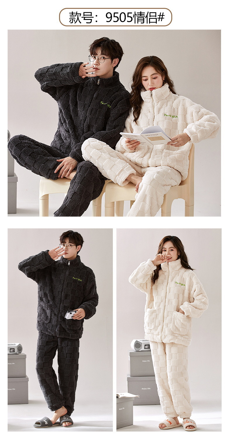 情侣睡衣秋冬季加厚珊瑚绒女款卡通冬天法兰绒男士家居服拉链套装