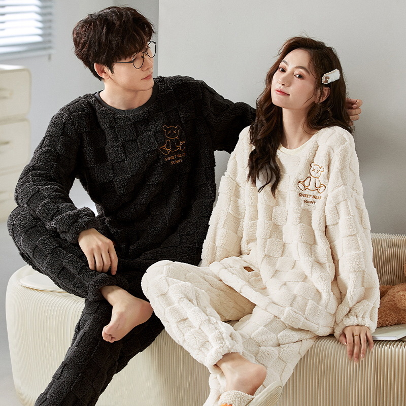 情侣睡衣秋冬季加厚保暖珊瑚绒女款卡通冬天法兰绒男士家居服套装