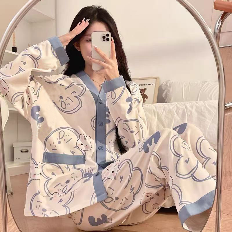 睡衣女春秋季2025年新款长袖高级感可爱薄款可外穿家居服大码套装