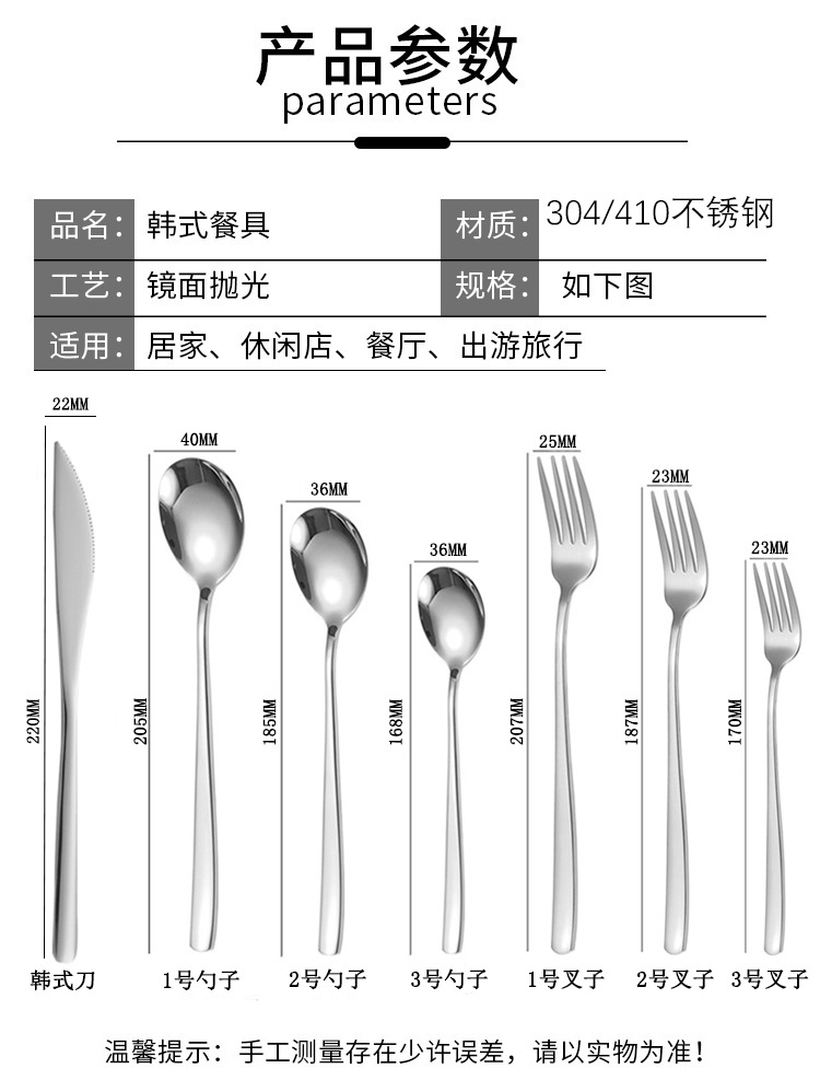 304不锈钢勺子叉子韩式ins风勺网红餐具高颜值家用长柄加厚汤勺叉