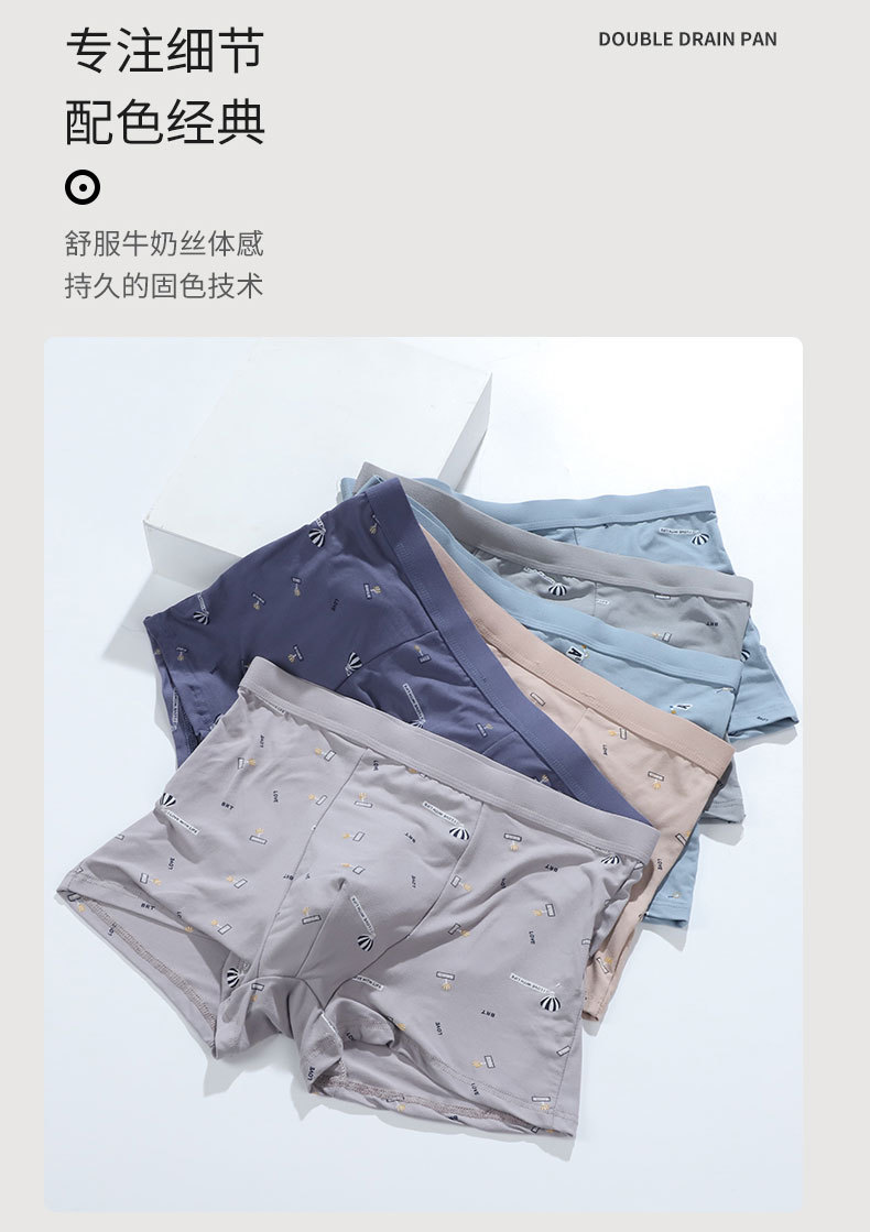 男士内裤牛奶丝平角裤 舒适男生内裤批发 大码中腰四角短裤厂家