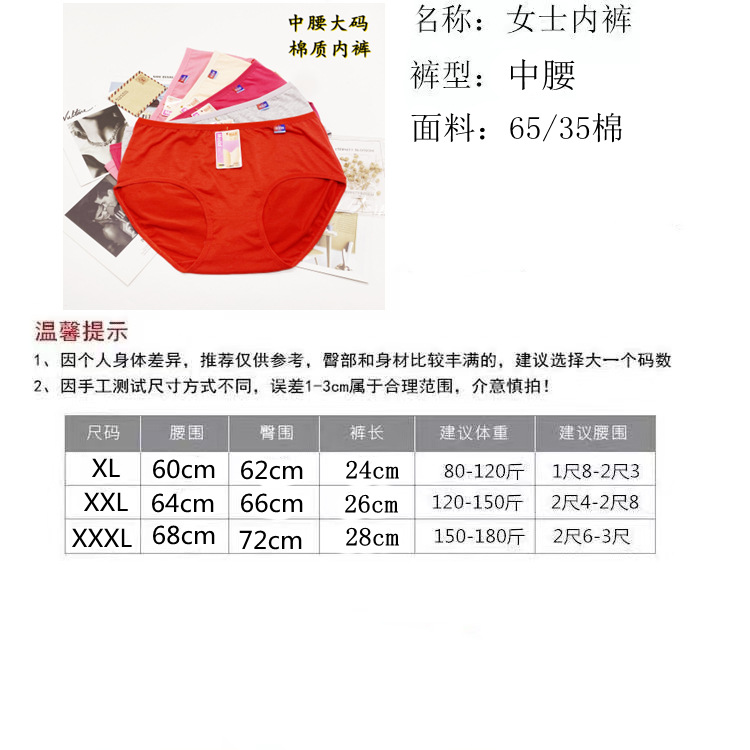 棉质大码女士内裤胖MM舒适透气棉女式三角裤中腰纯色内裤源头厂家
