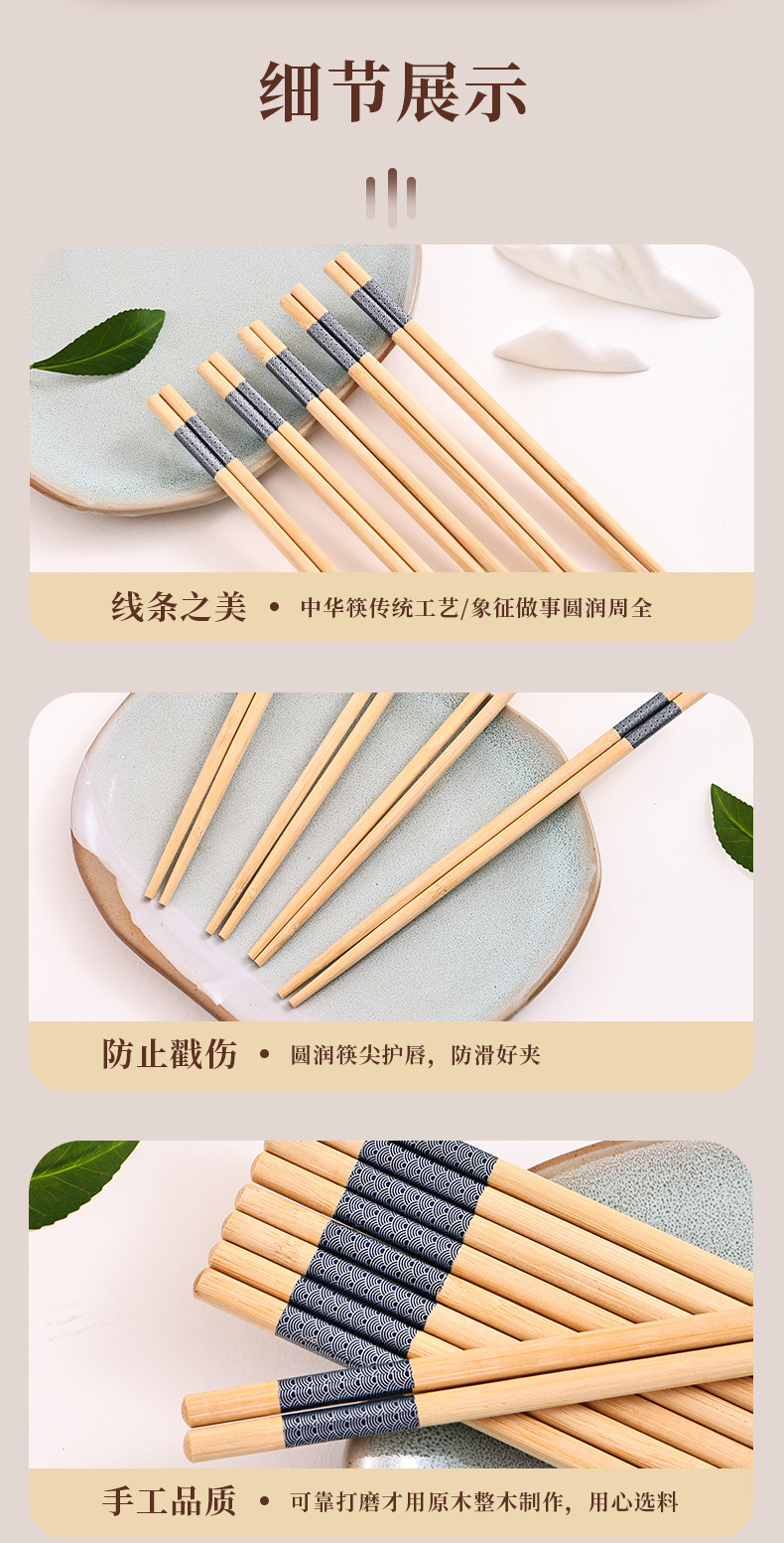天然锦鲤楠竹鱼鳞创意防花筷子无漆无蜡厂家批发一人餐具一筷