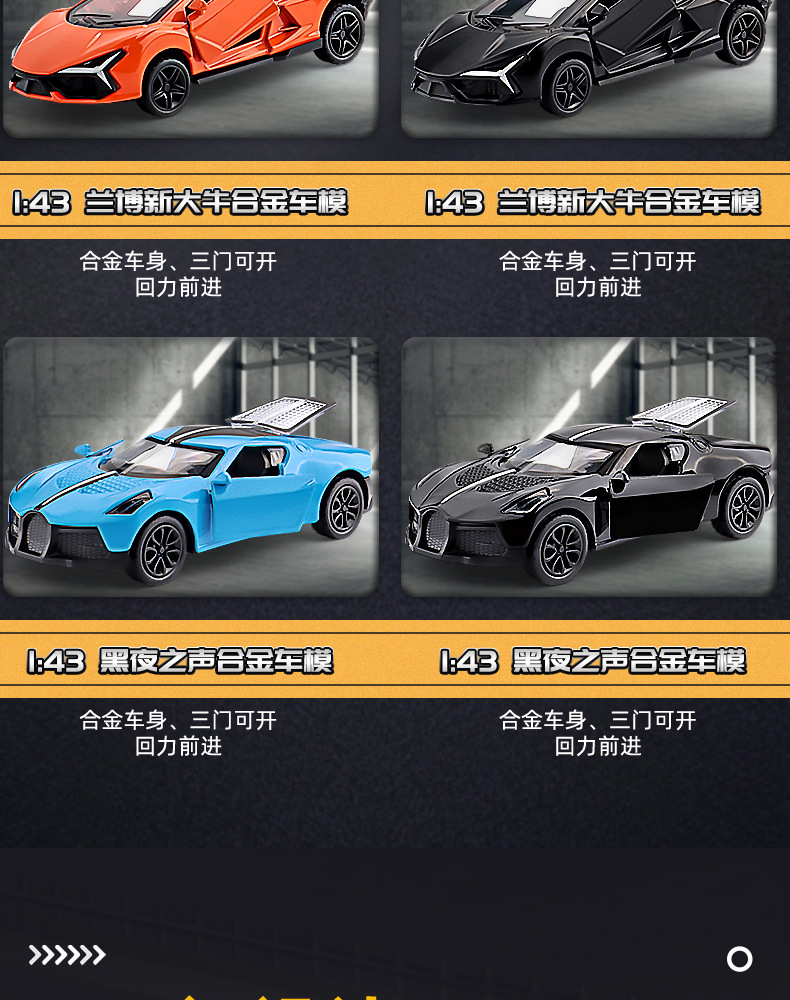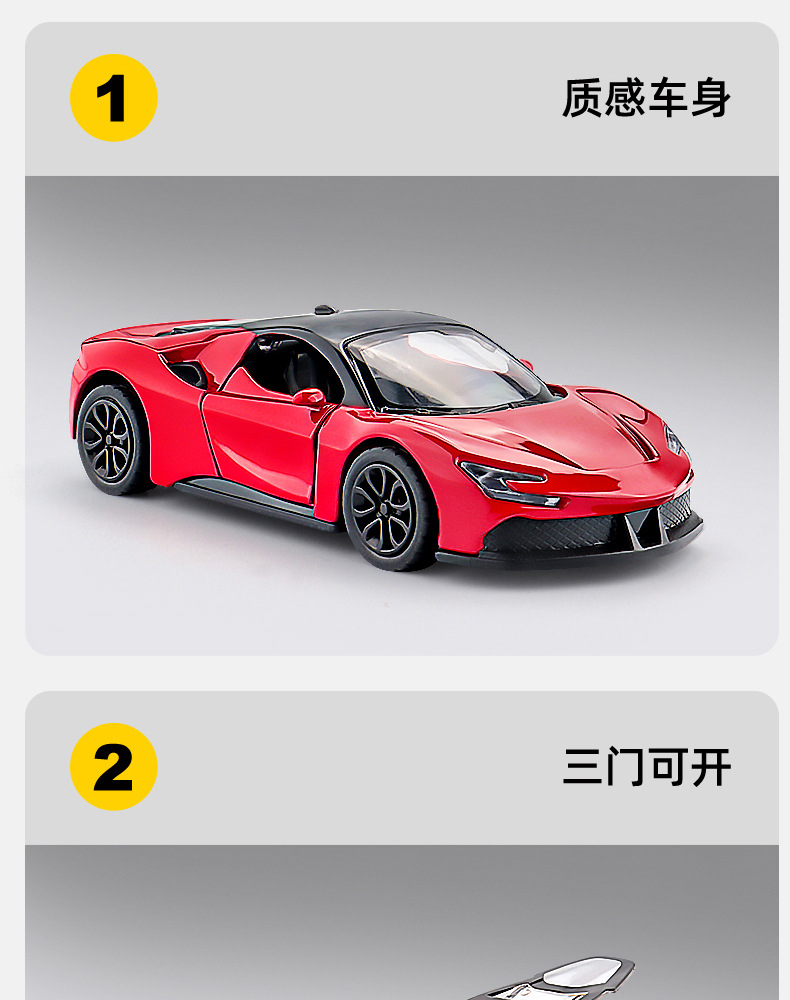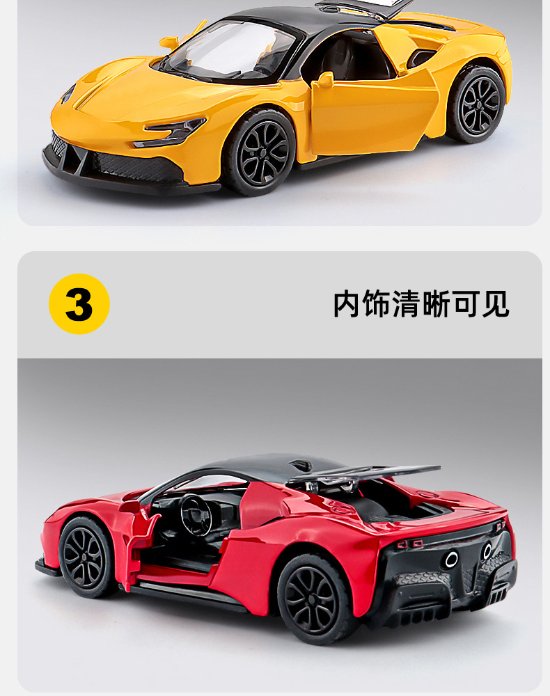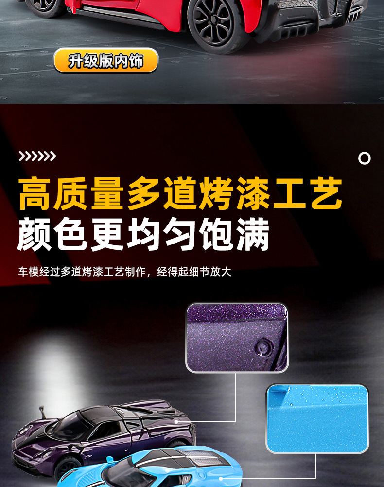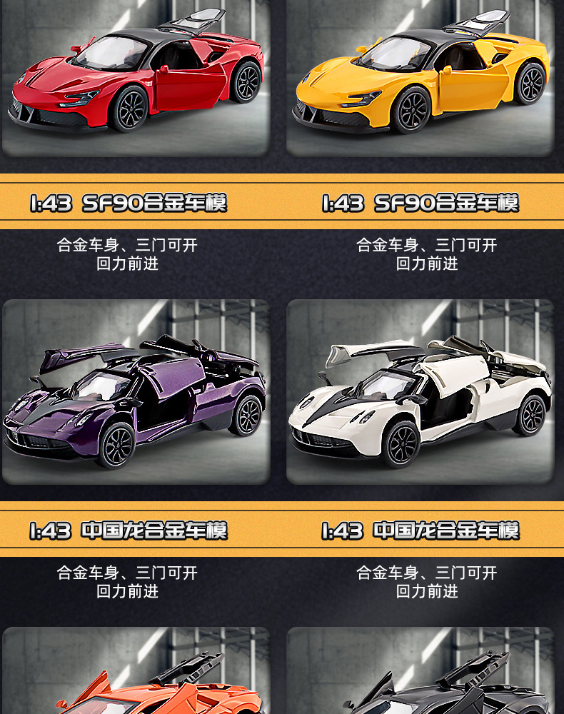 商超礼品帕咖尼风之子合金玩具车模型1:43三开门儿童回力玩具车