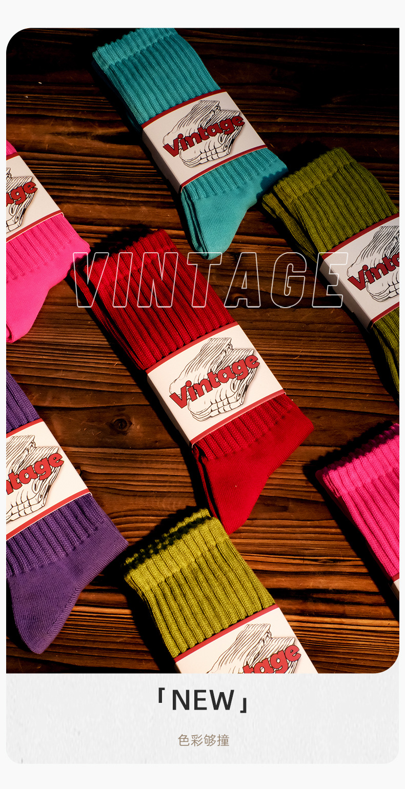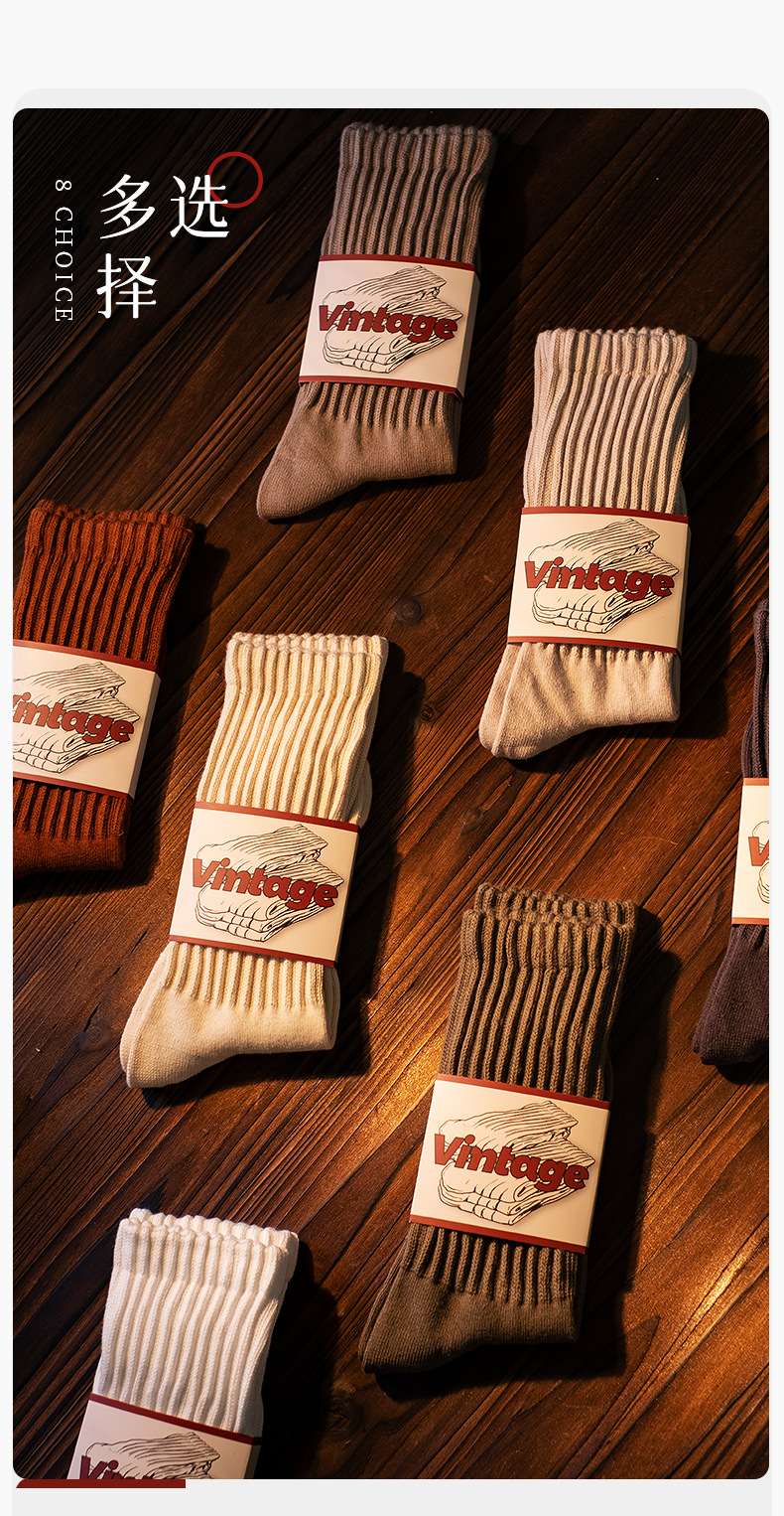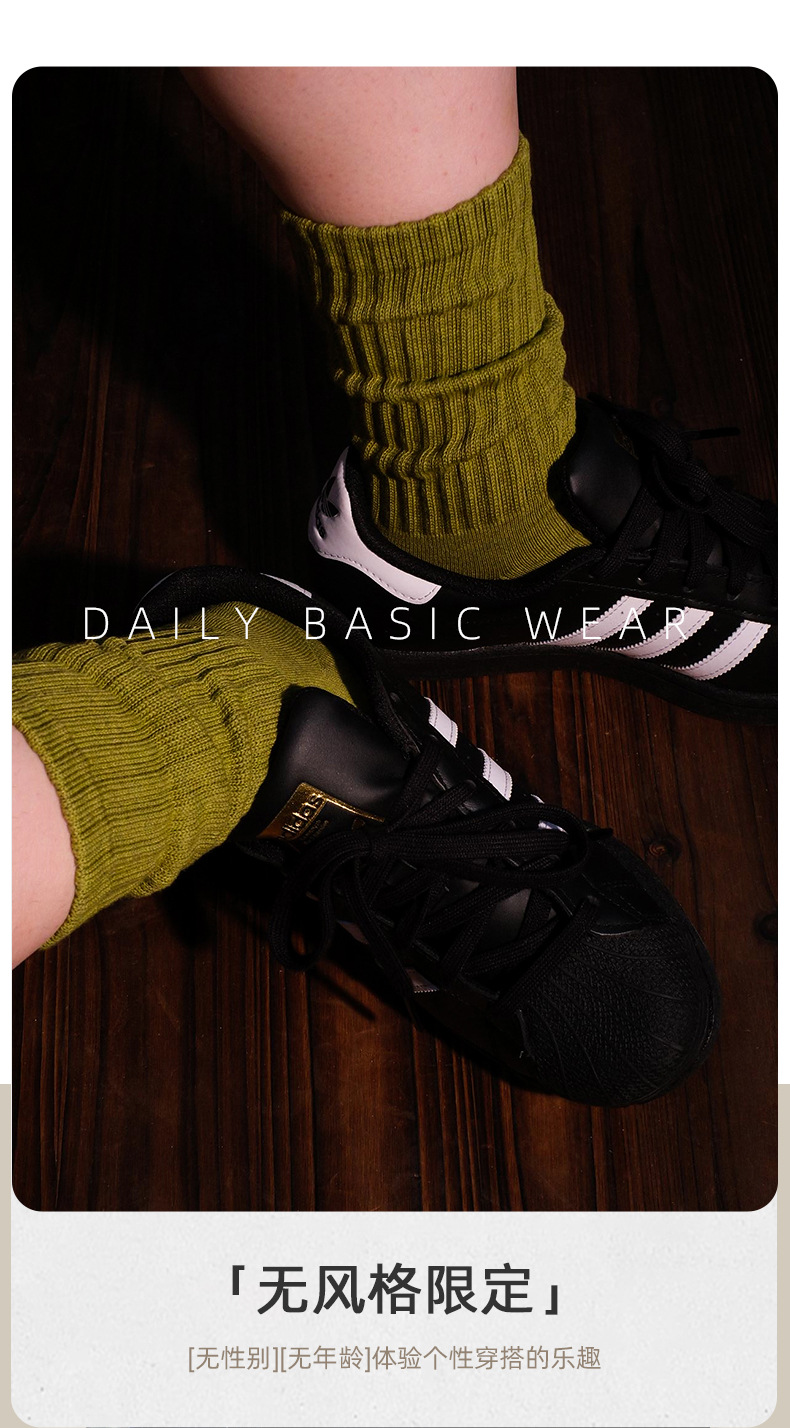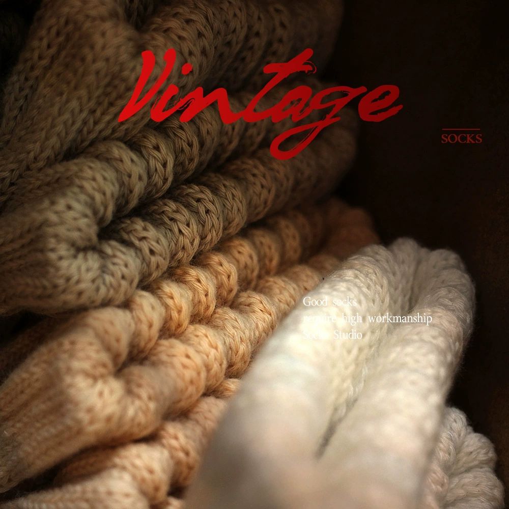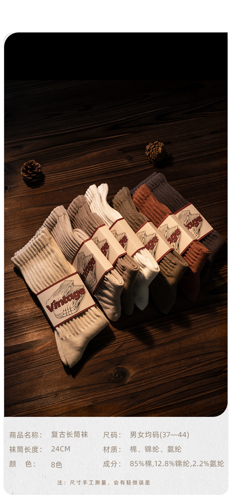 阿美咔叽袜子日系粗线男女中筒纯棉复古粗针美式长袜秋冬款堆堆袜