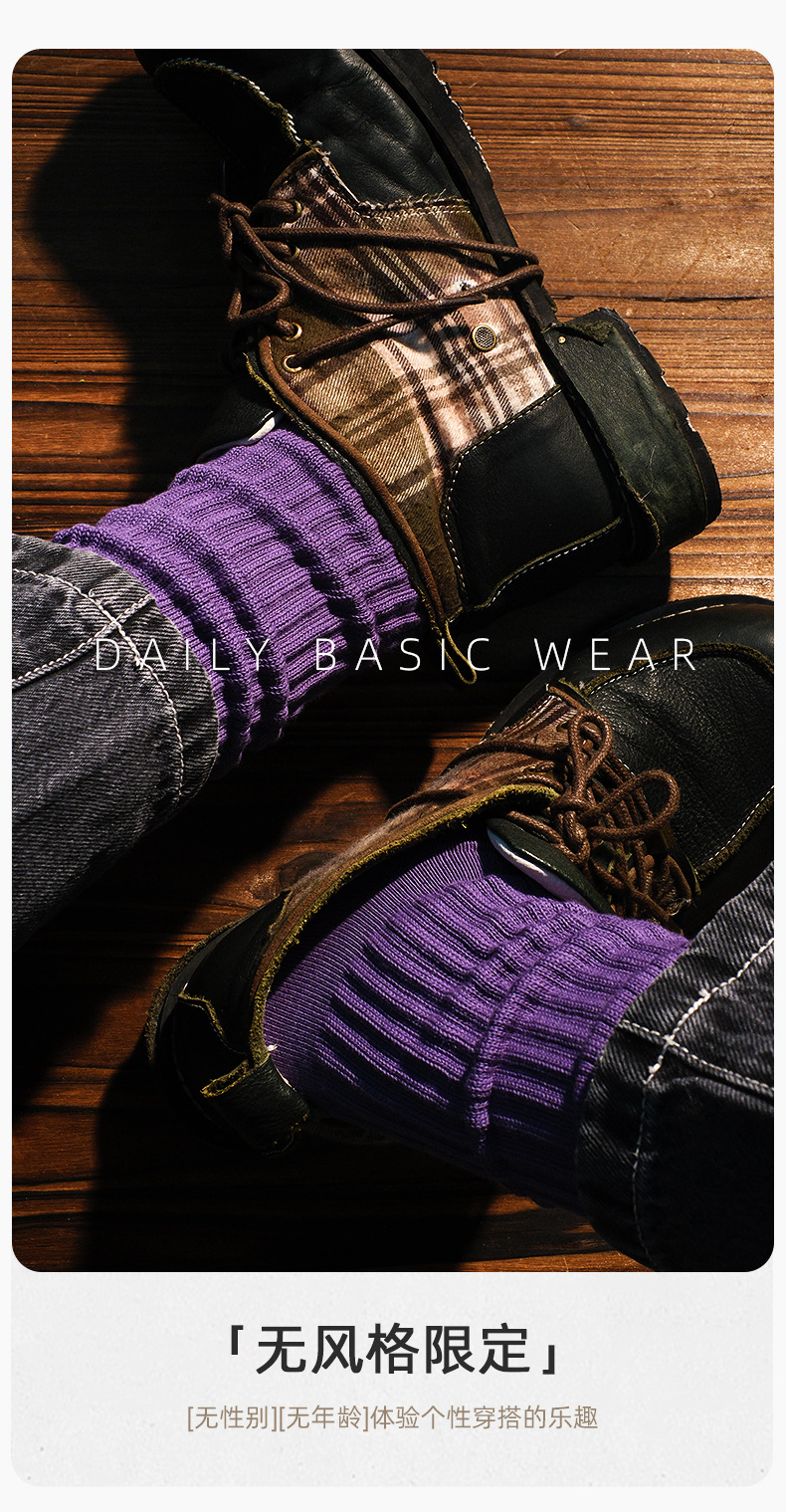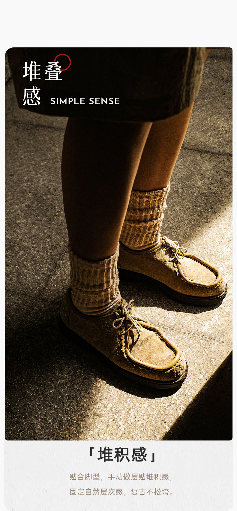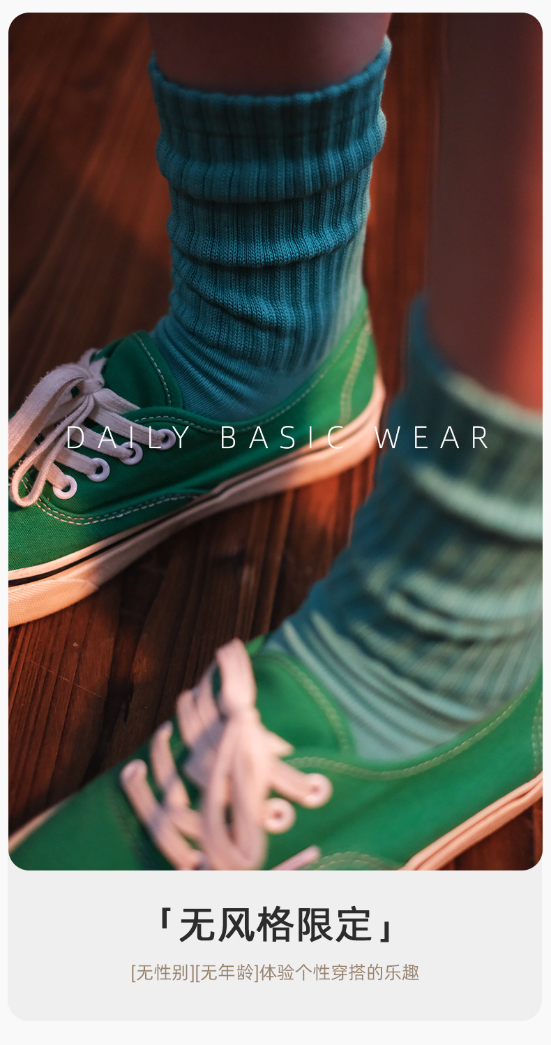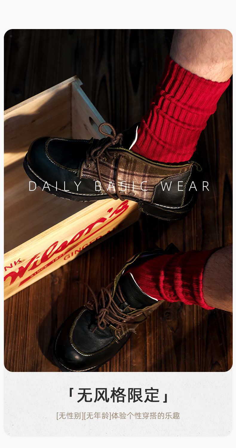 阿美咔叽袜子日系粗线男女中筒纯棉复古粗针美式长袜秋冬款堆堆袜