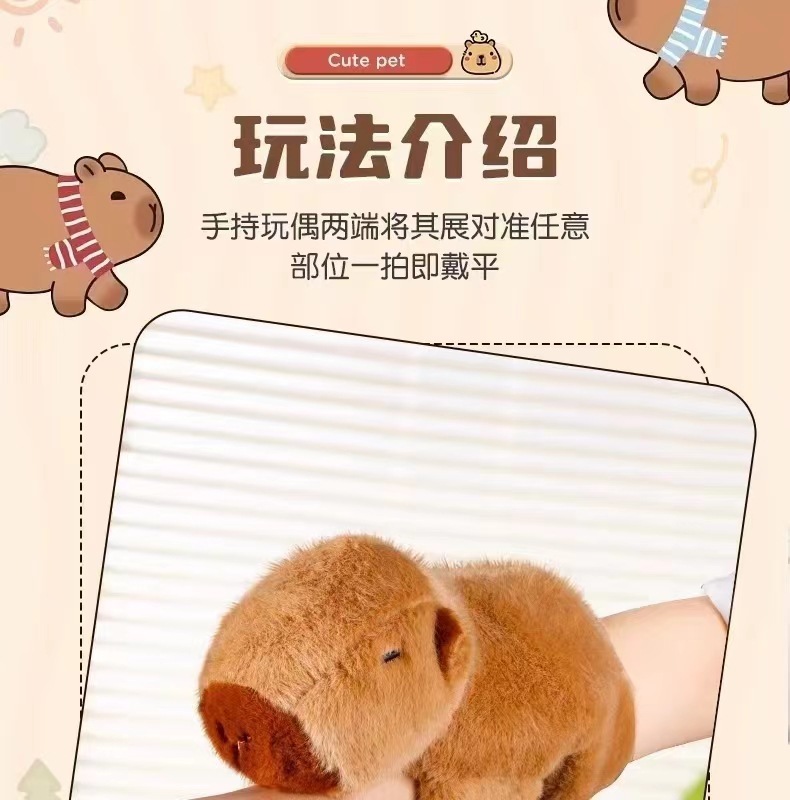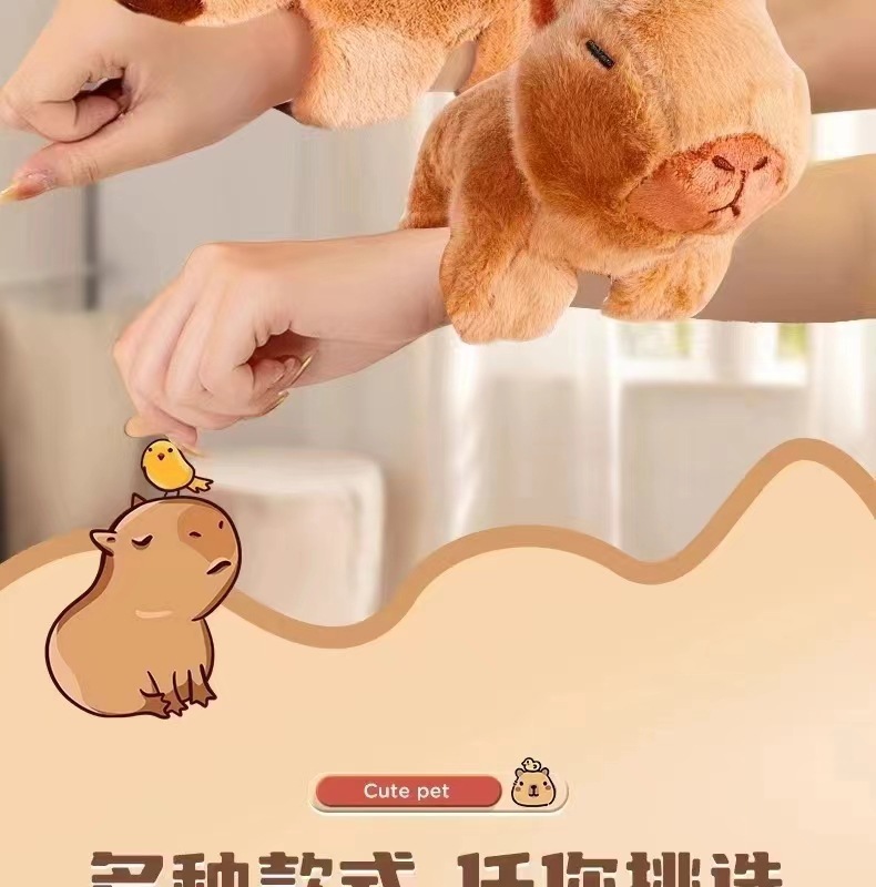 手环腕趴趴公仔卡皮巴拉水豚玩偶啪啪圈可爱毛绒玩具网红跨境娃娃
