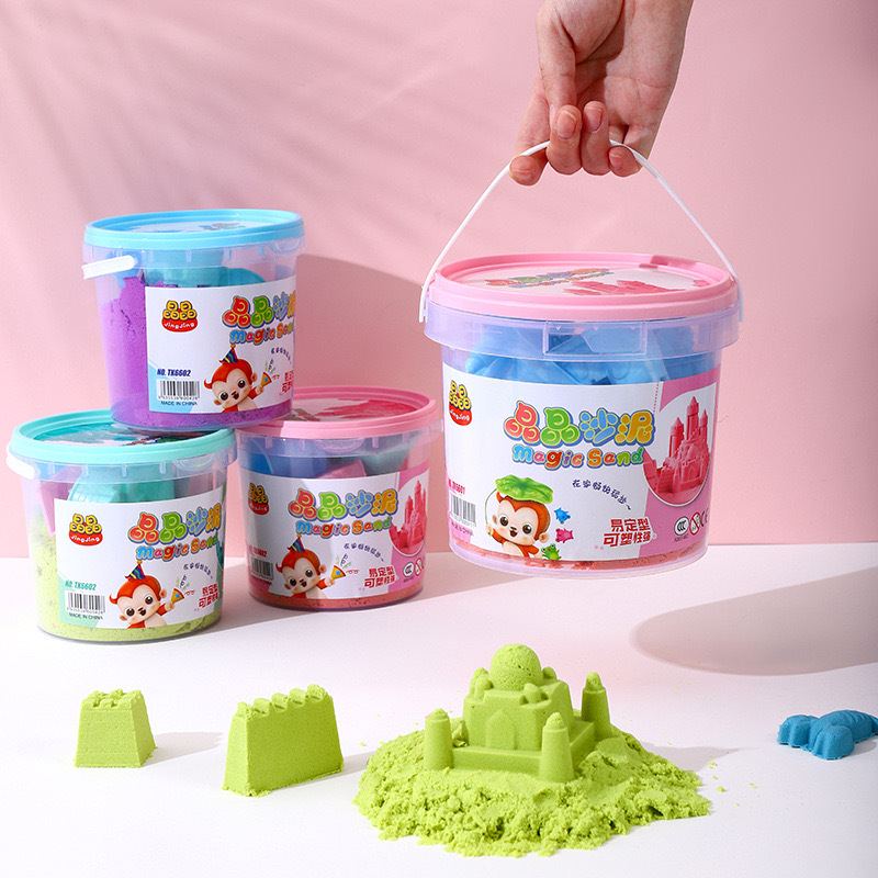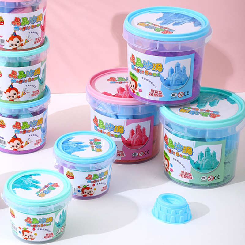 创意桶装太空沙彩泥套装DIY休闲儿童小学生干净多模具沙泥玩具混