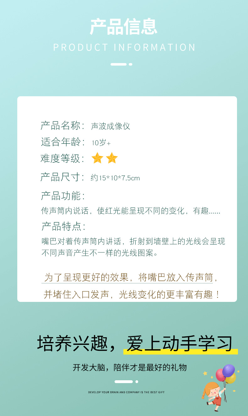 科学实验声波成像仪科技小制作小学生看得见的声音手工拼装模型