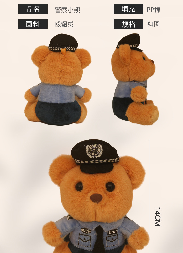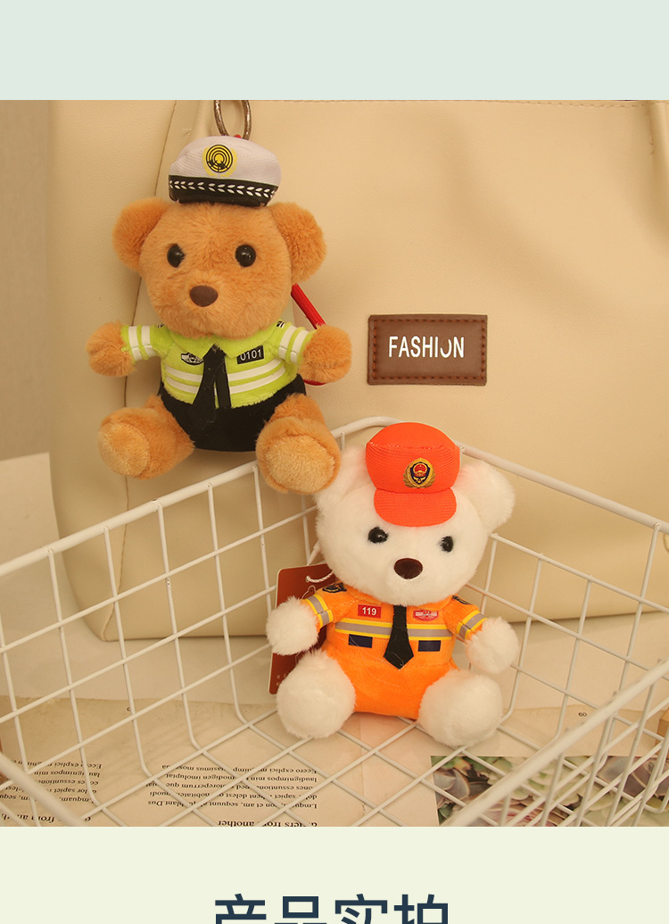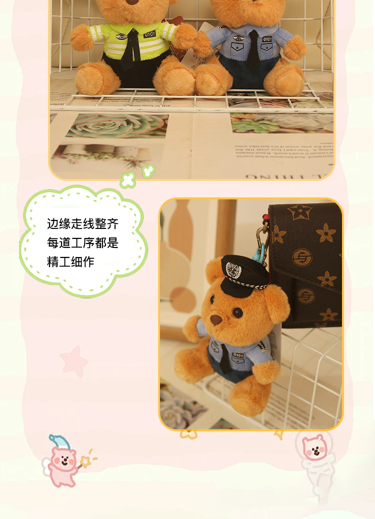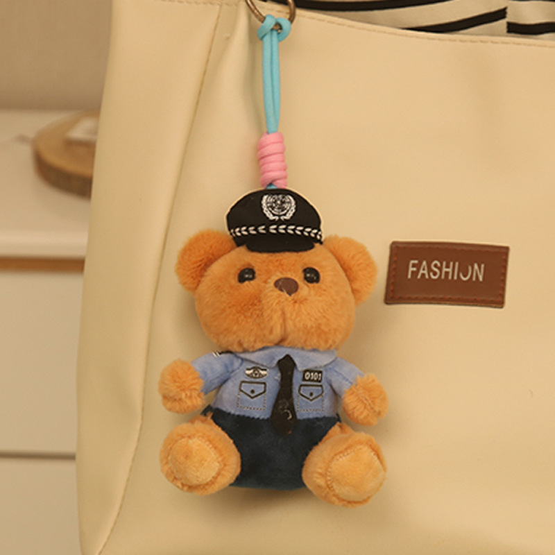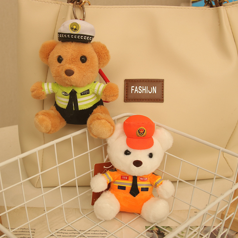 网红可爱萌交警小熊挂件毛绒玩具公仔消防警察包包挂饰钥匙扣娃娃