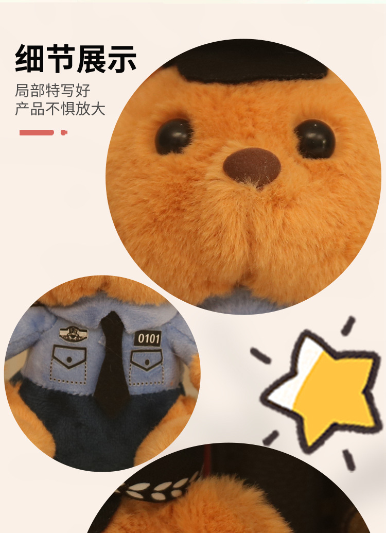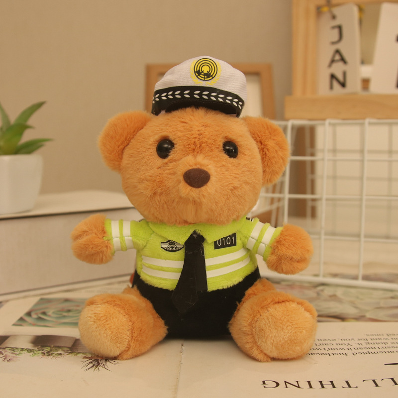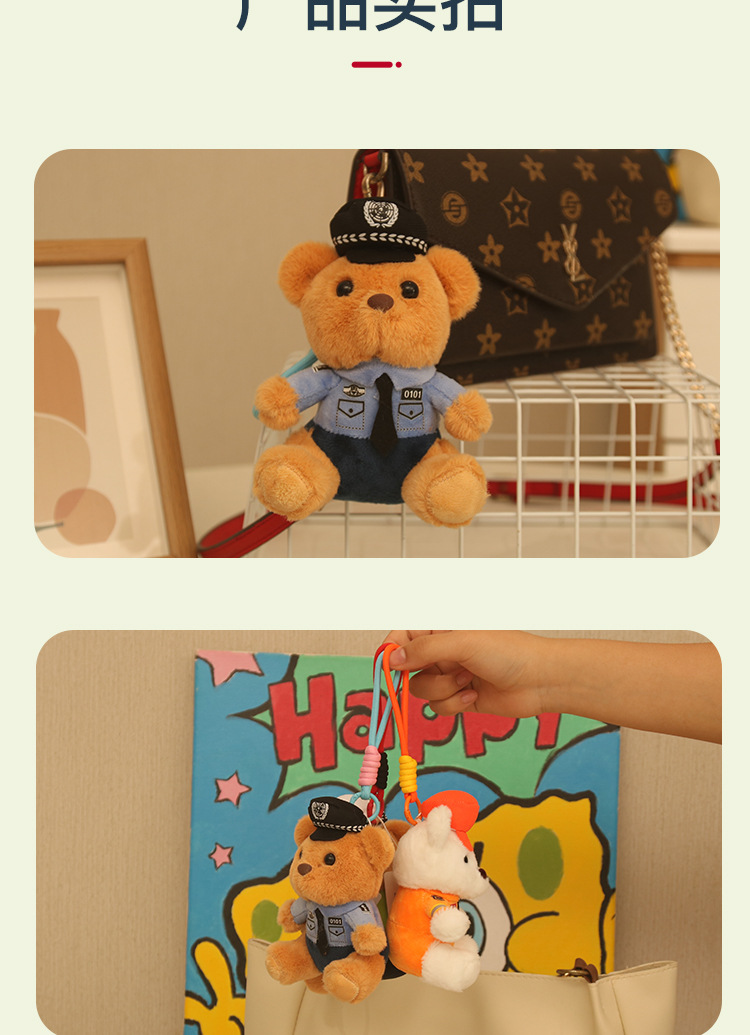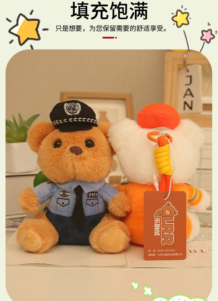 网红可爱萌交警小熊挂件毛绒玩具公仔消防警察包包挂饰钥匙扣娃娃