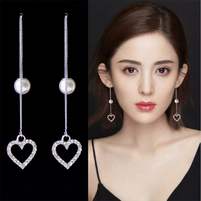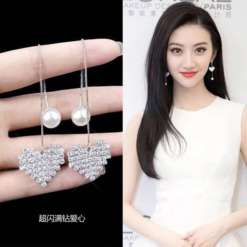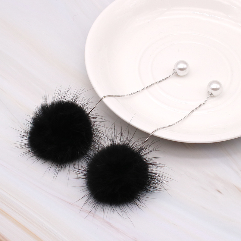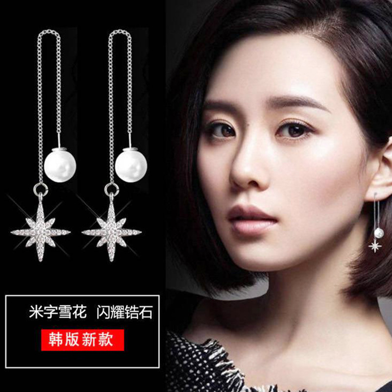 韩国S925银针五角星星月亮树叶冰花四叶草毛球耳线长款耳坠女耳环