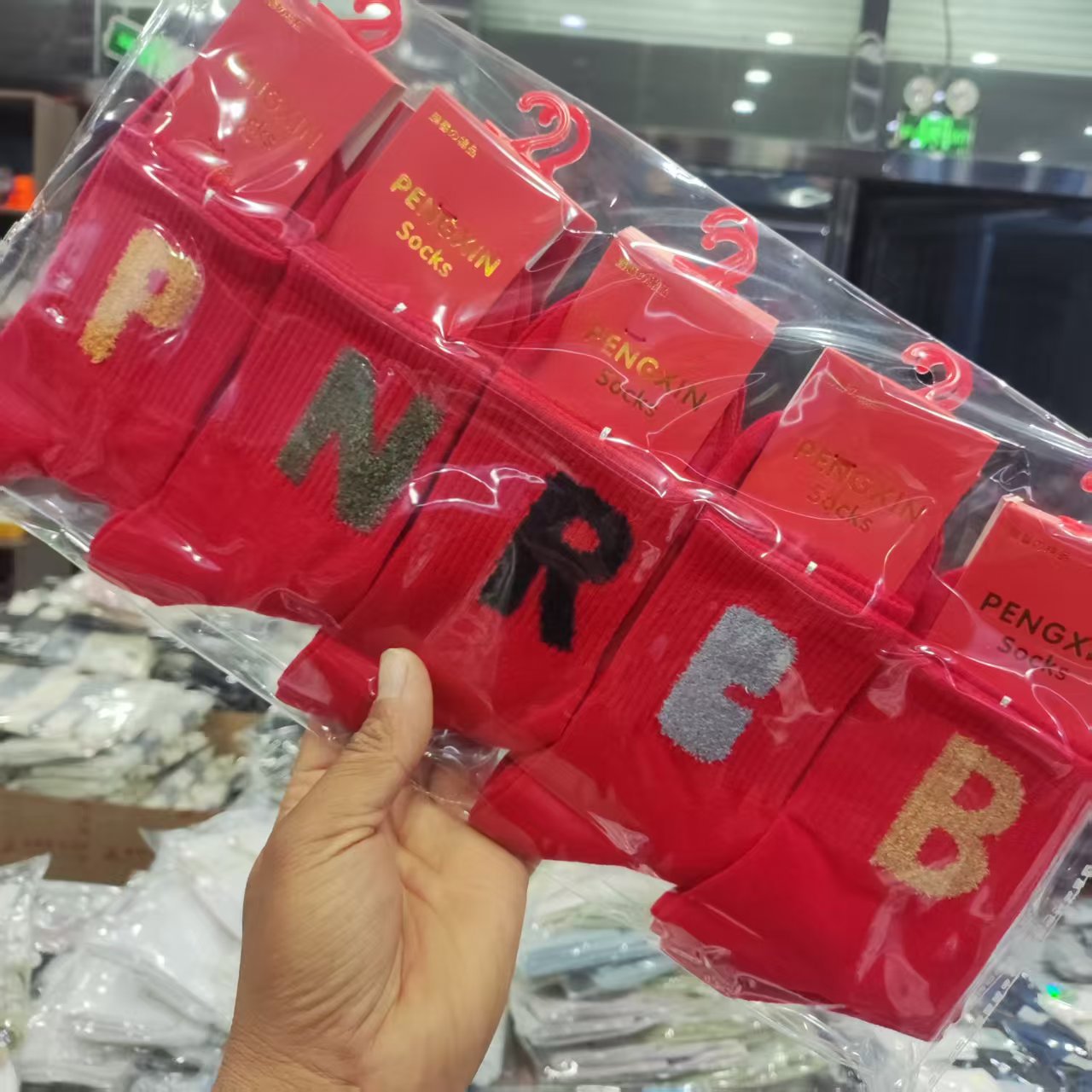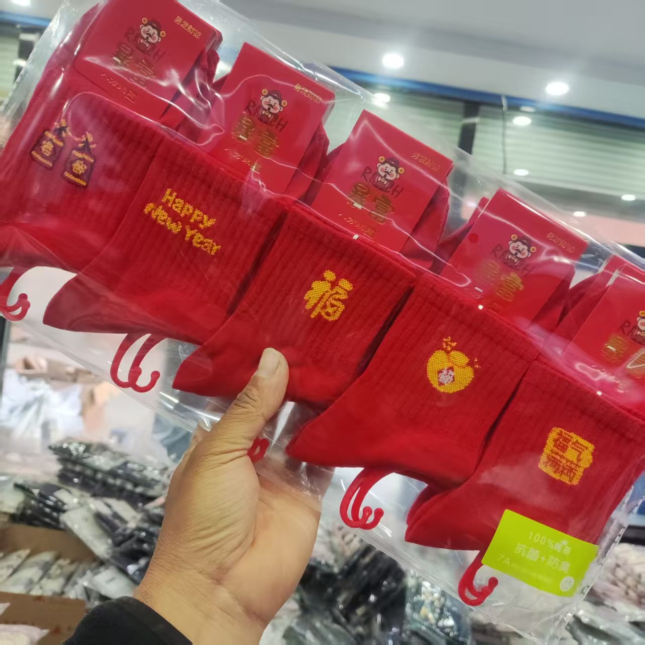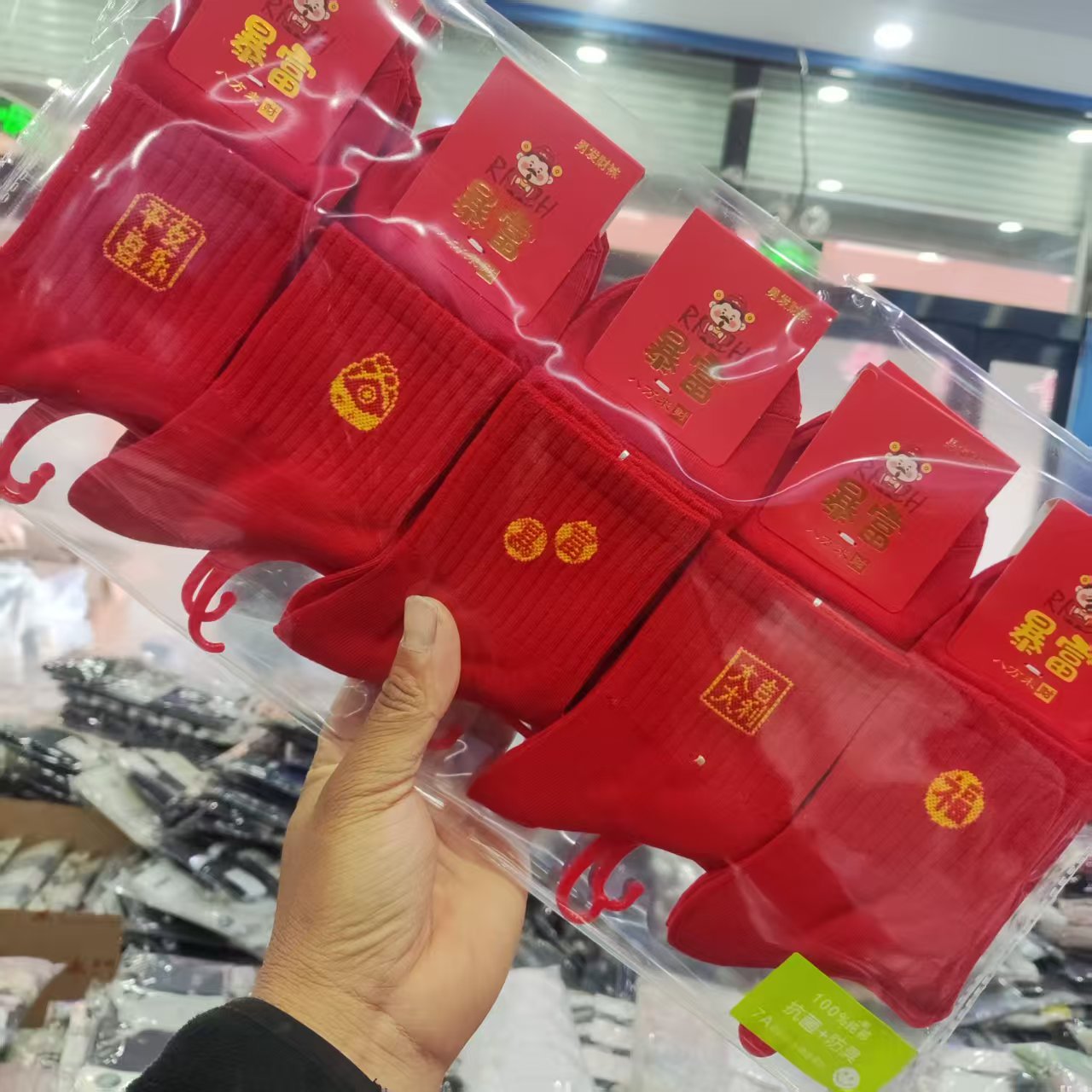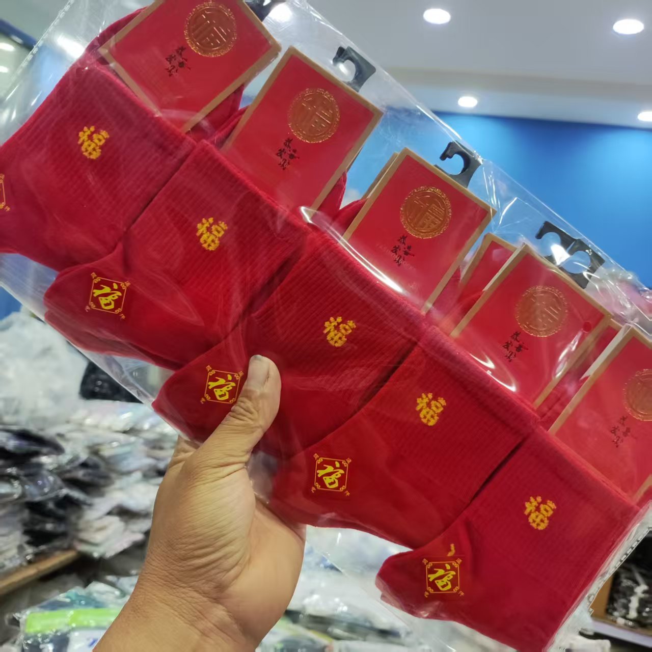 袜子日韩系秋冬男女大红袜子结婚喜庆本命年男女大红棉袜现货批发