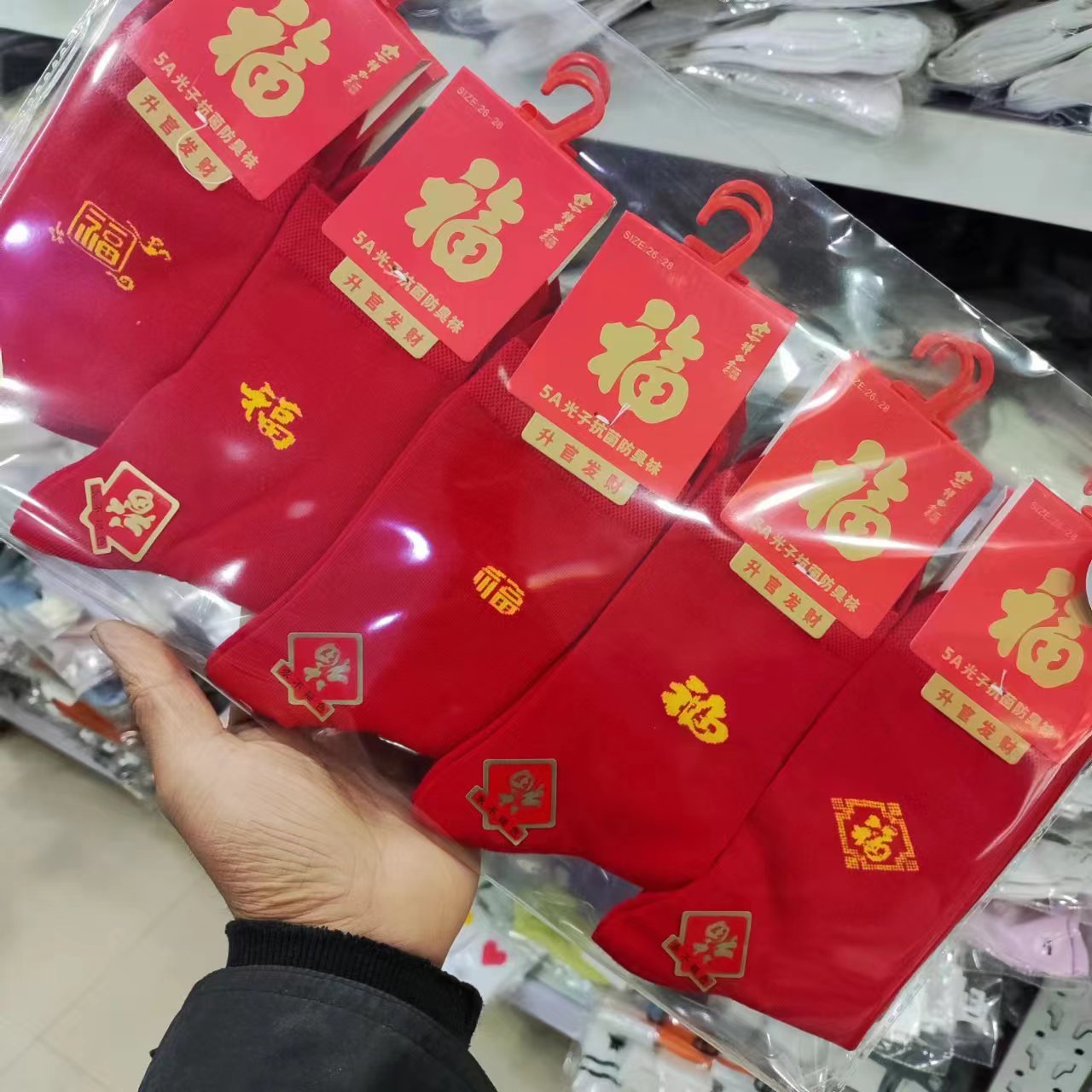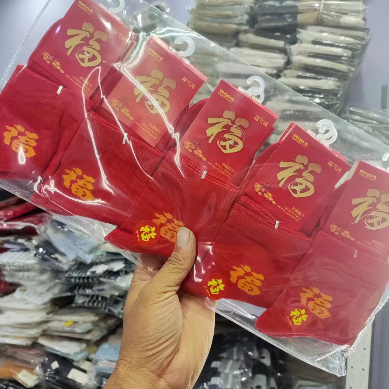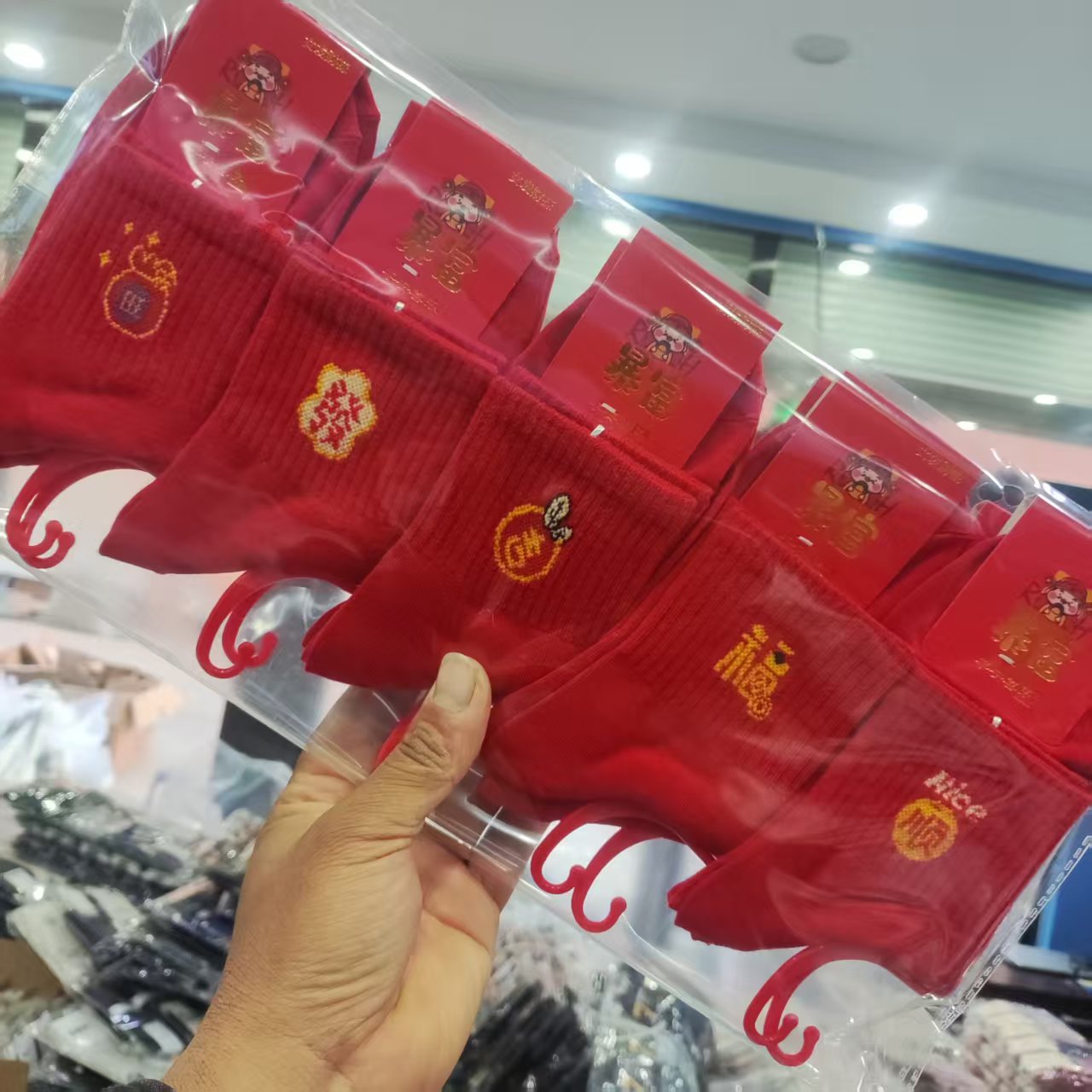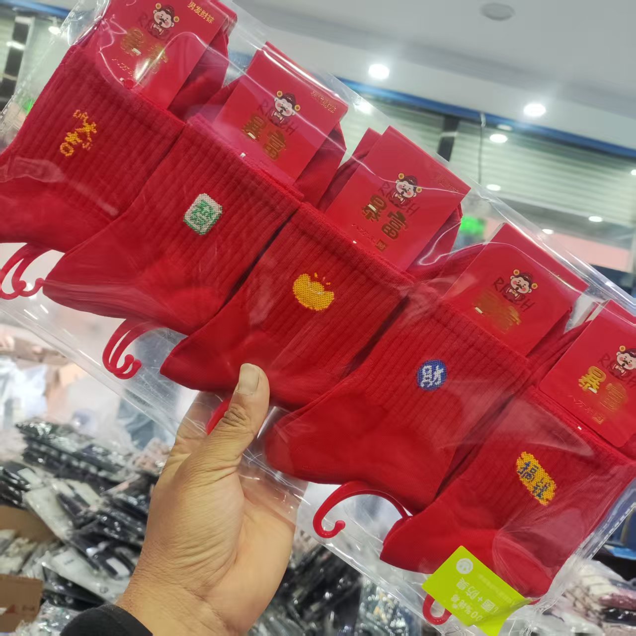 袜子日韩系秋冬男女大红袜子结婚喜庆本命年男女大红棉袜现货批发