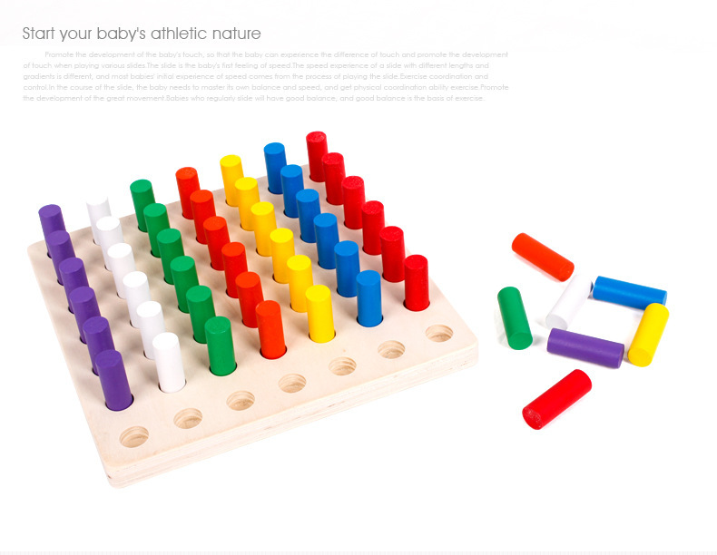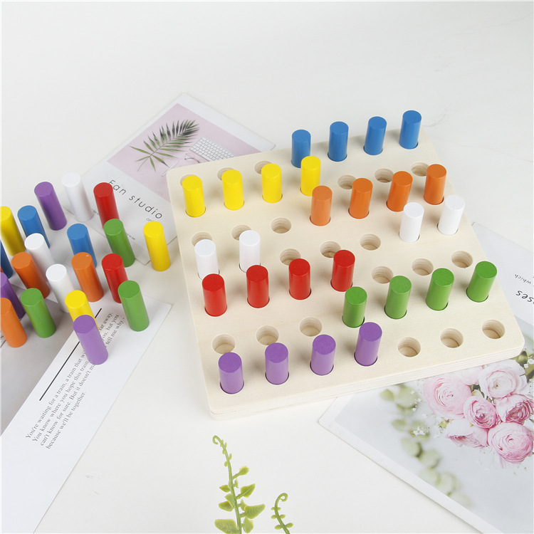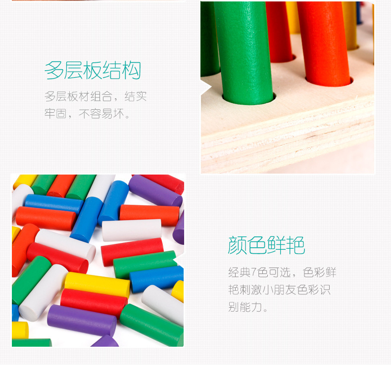 蒙氏彩色指抓板感统木插板插棍0.52智力开发动手动脑颜色分辨教具