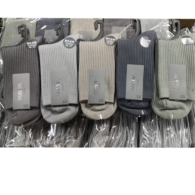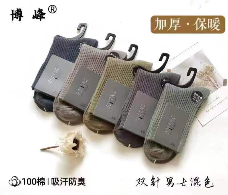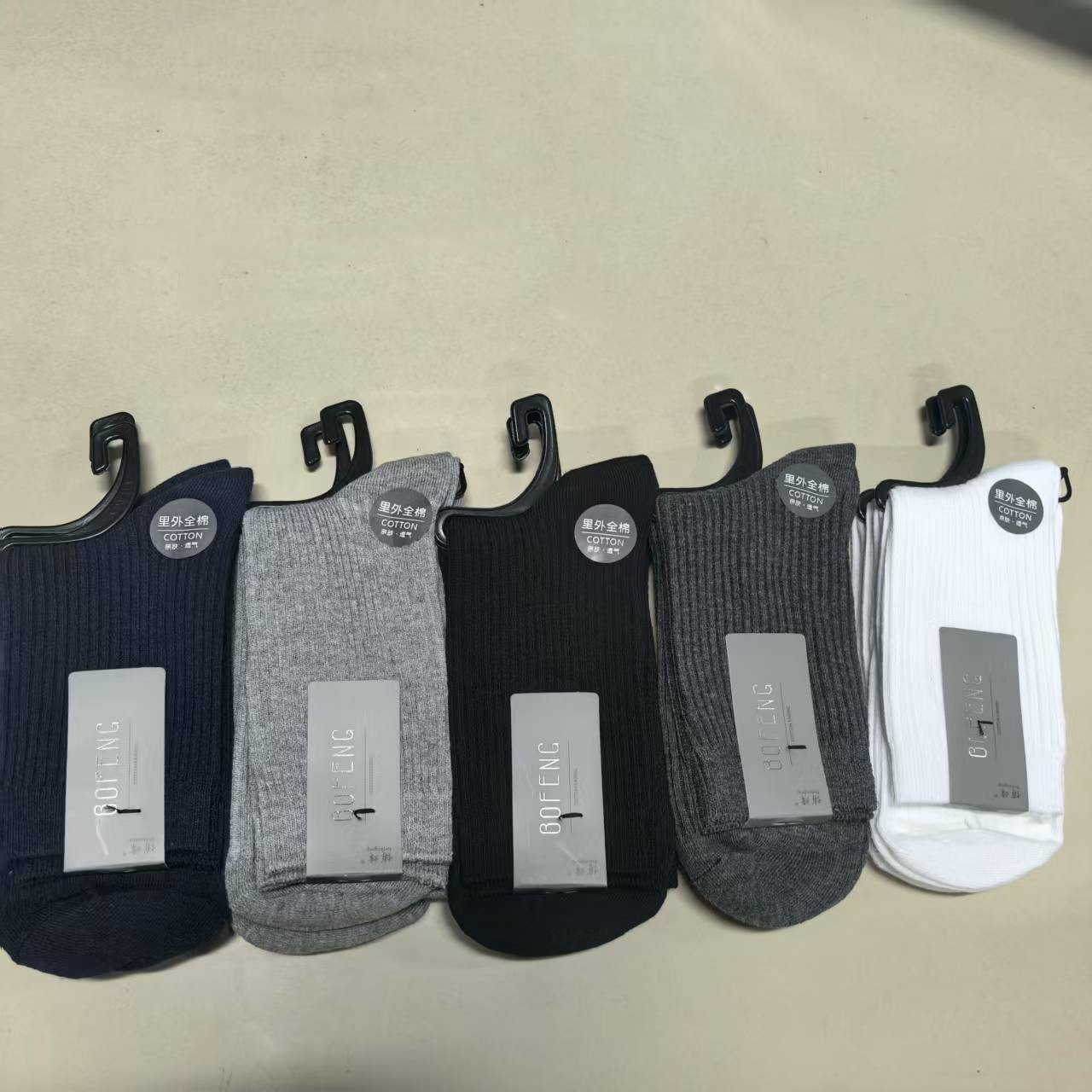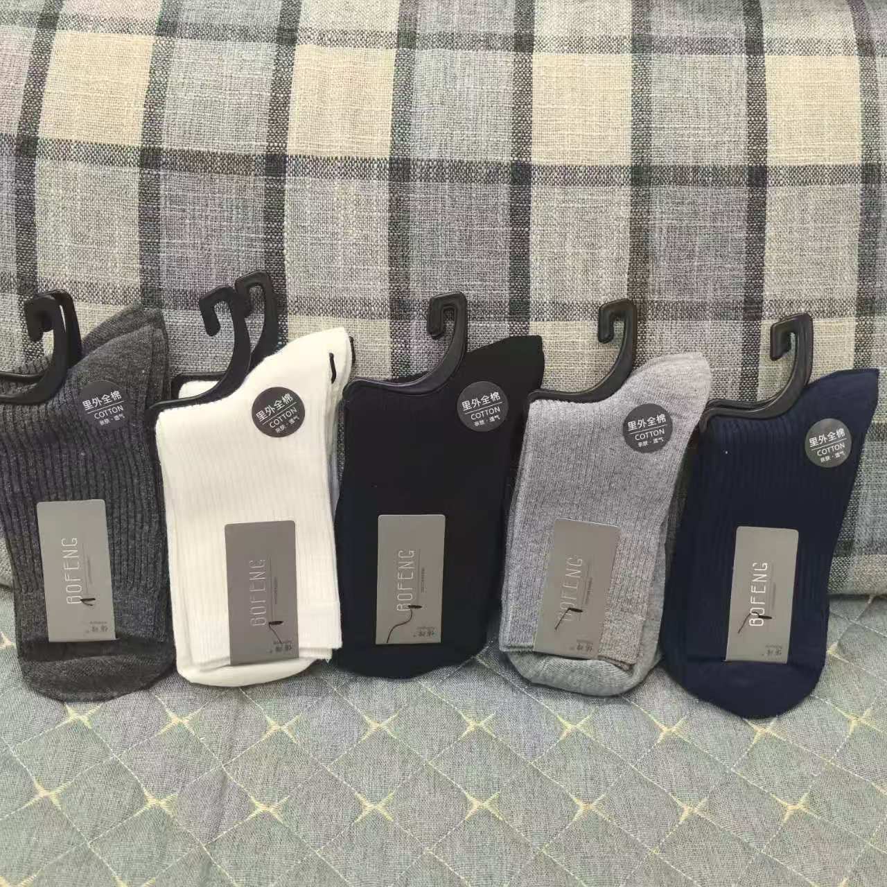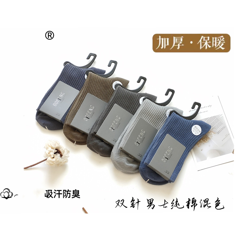 新款秋冬季厚款运动透气中筒商务长袜 男士双针纯色 精梳棉袜子批