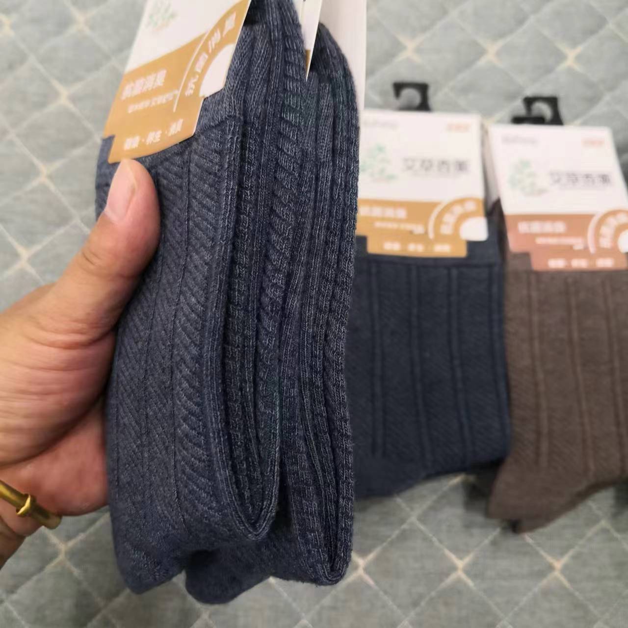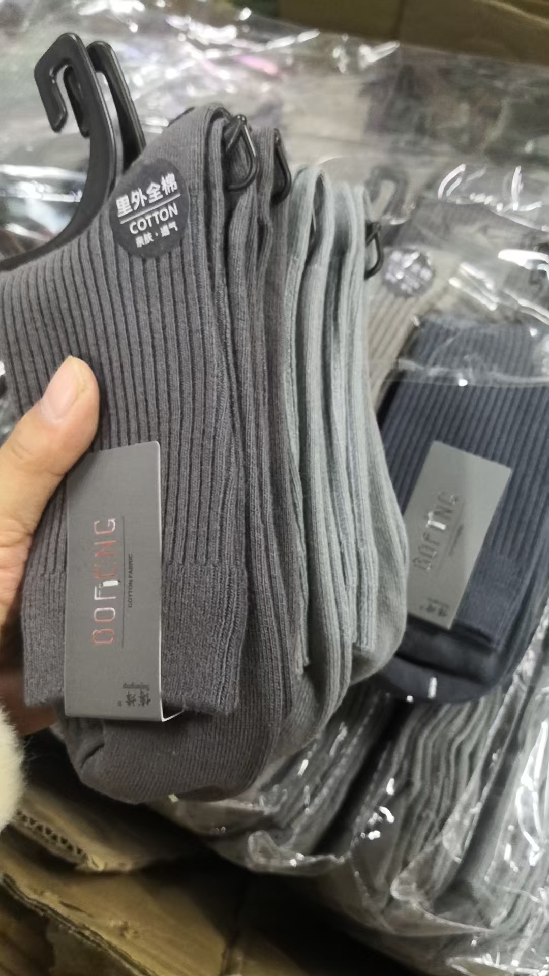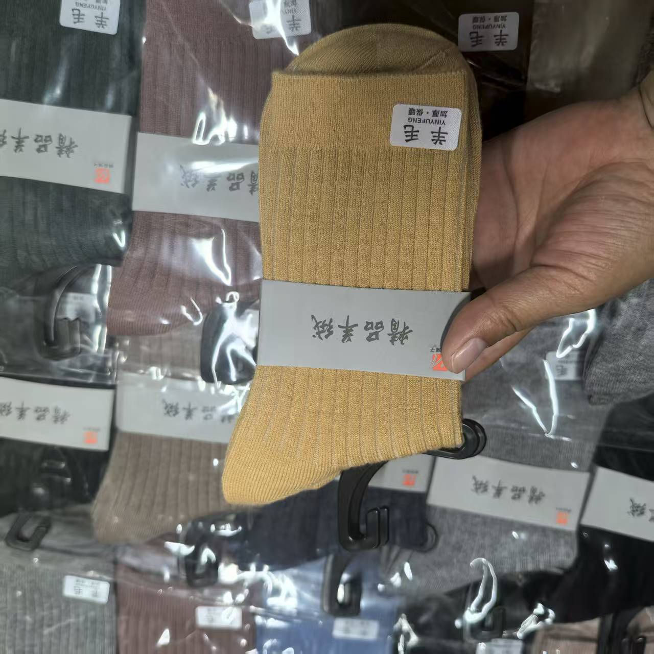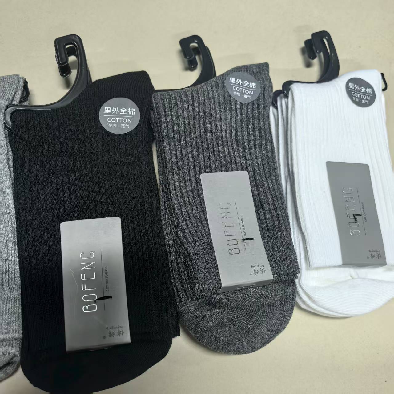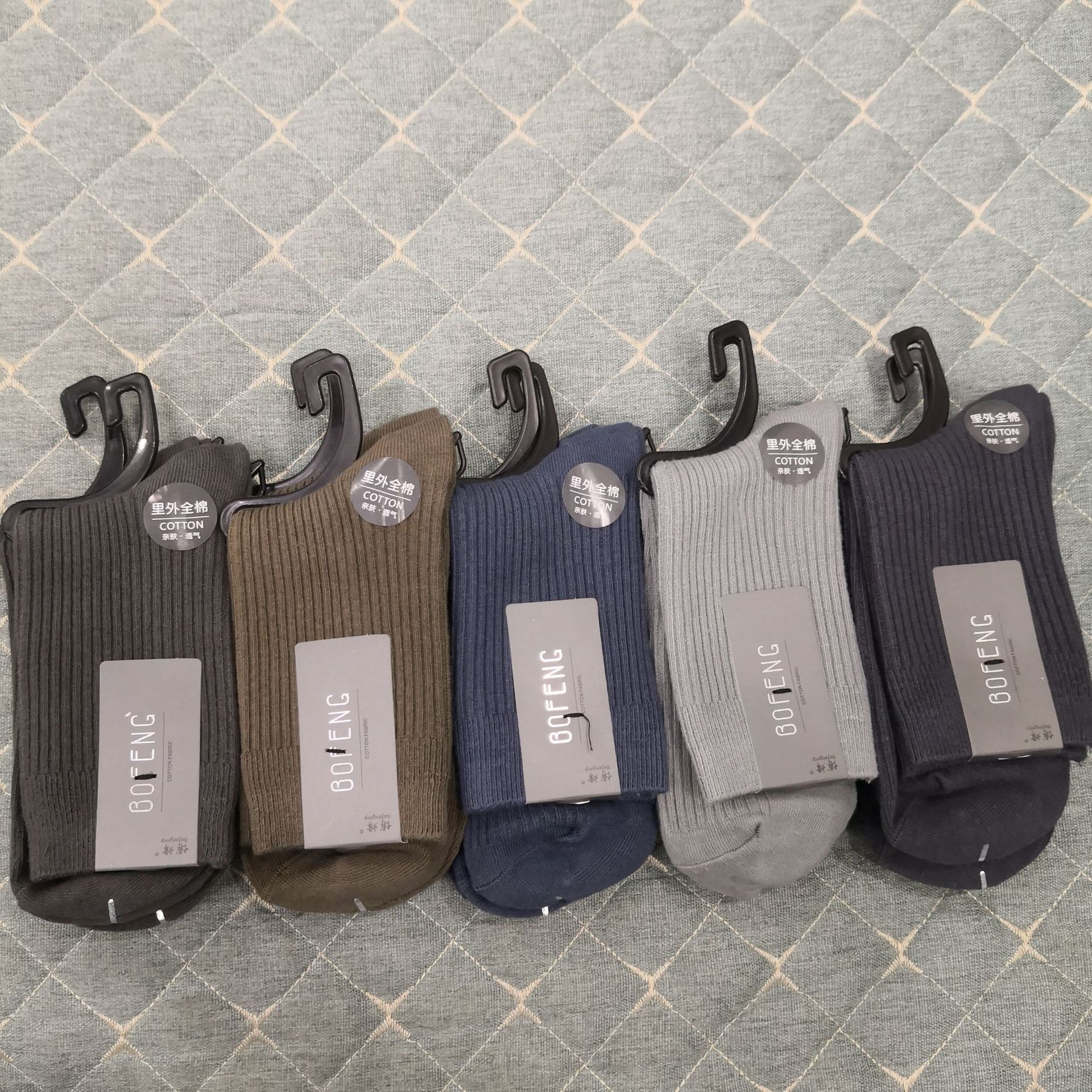 新款秋冬季厚款运动透气中筒商务长袜 男士双针纯色 精梳棉袜子批