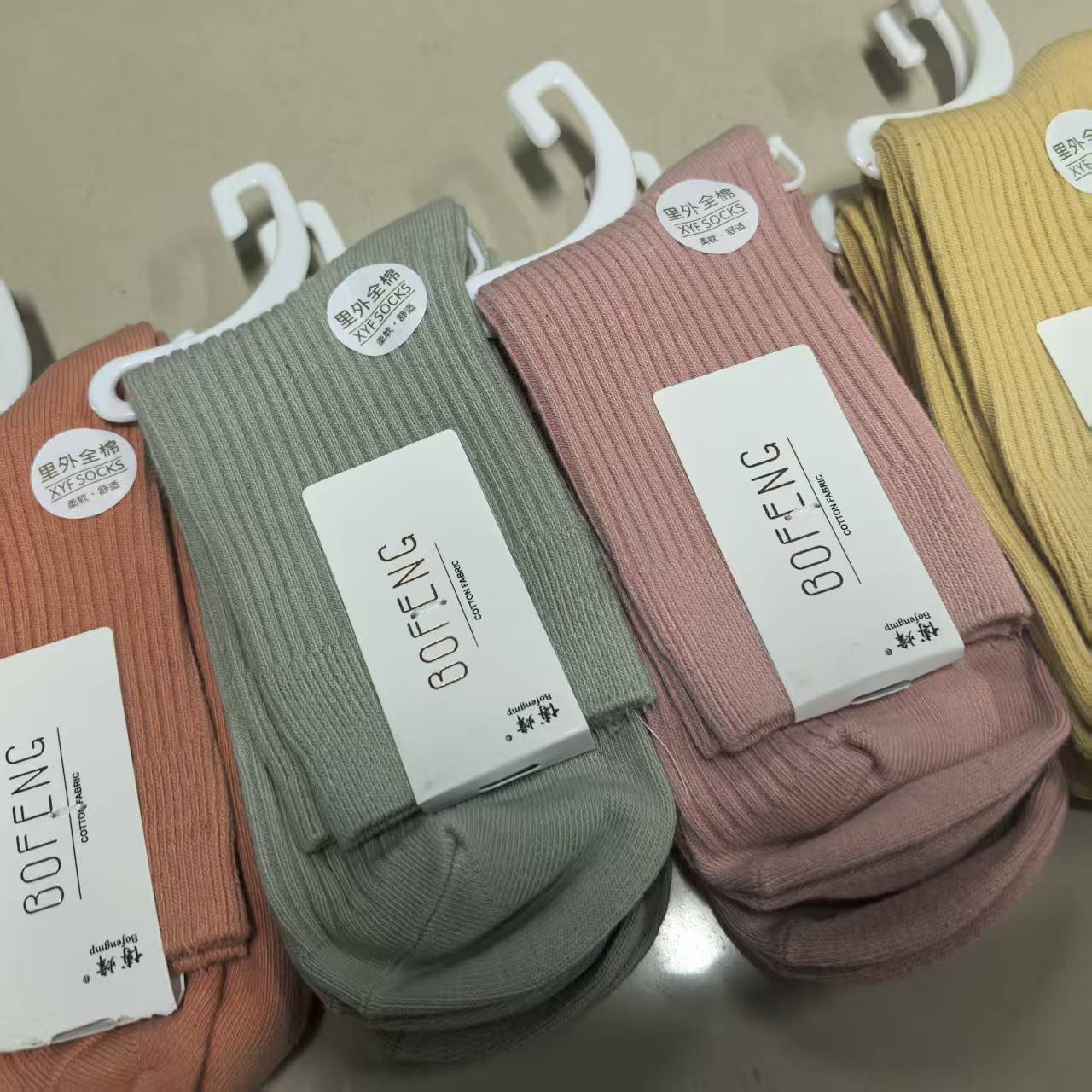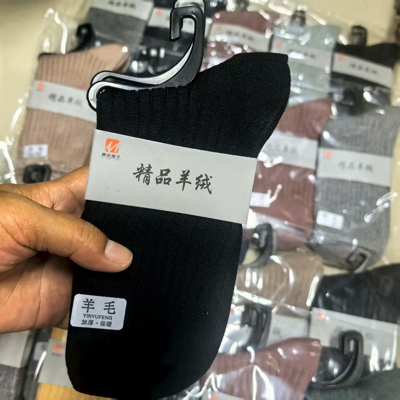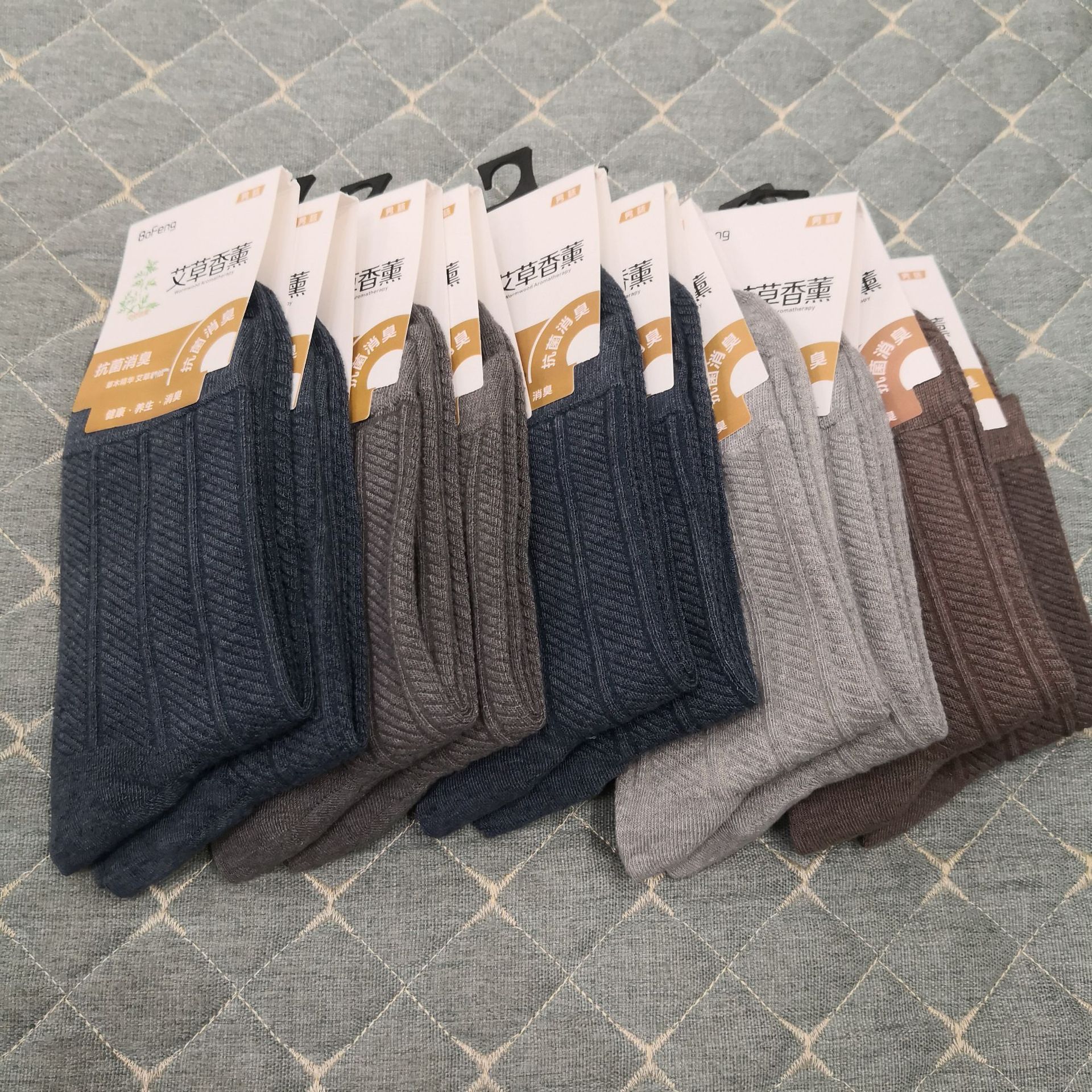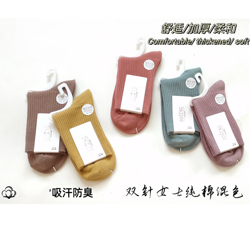 新款秋冬季厚款运动透气中筒商务长袜 男士双针纯色 精梳棉袜子批