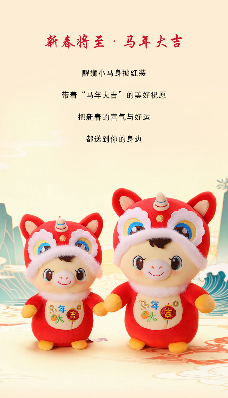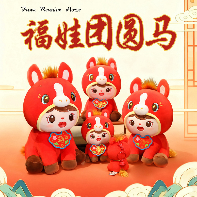 2026马年吉祥物生肖马集合毛绒玩具公仔有钱有福开门红年会小礼品