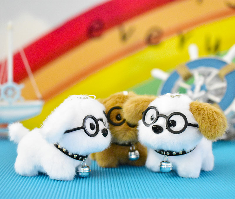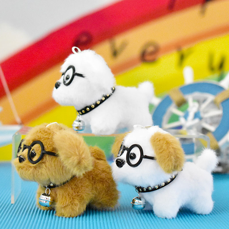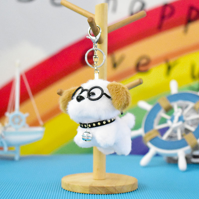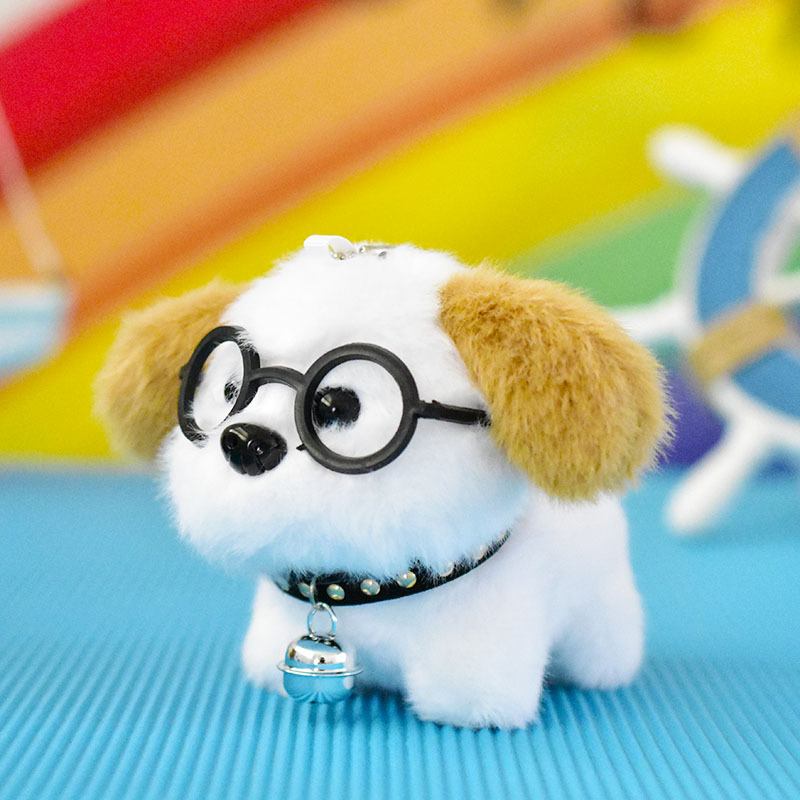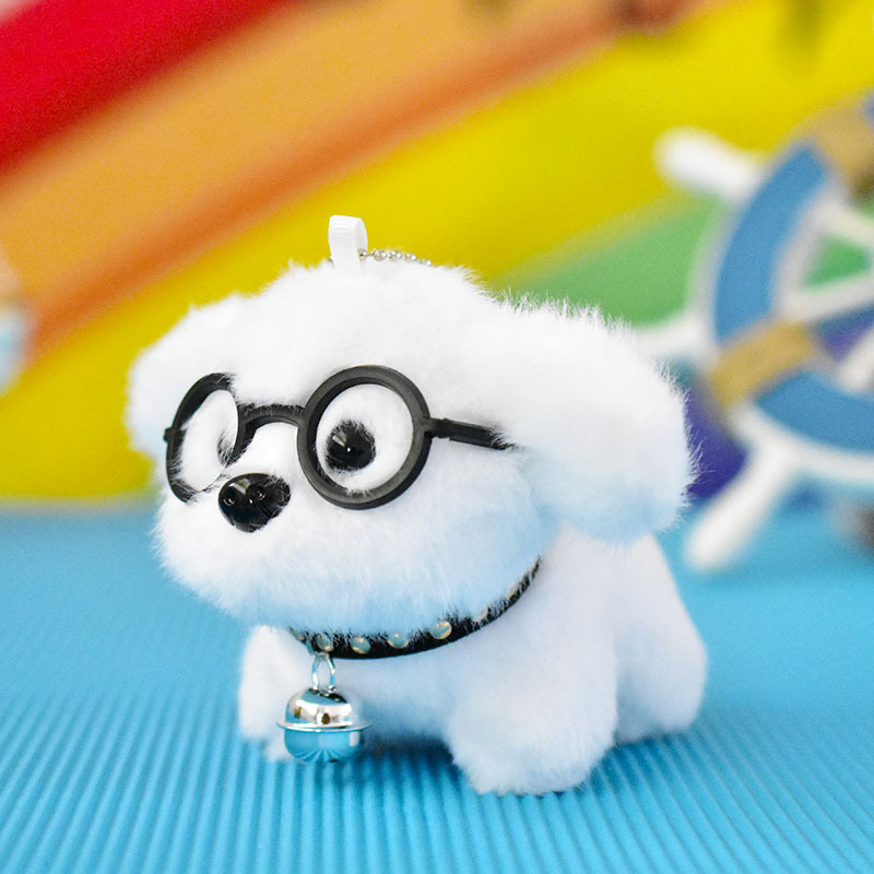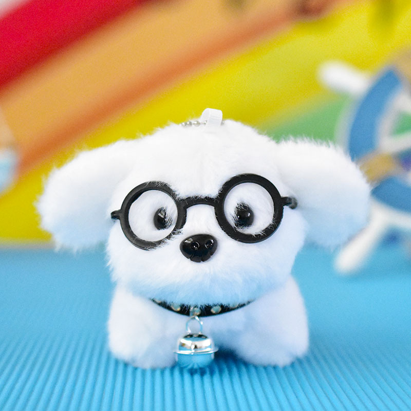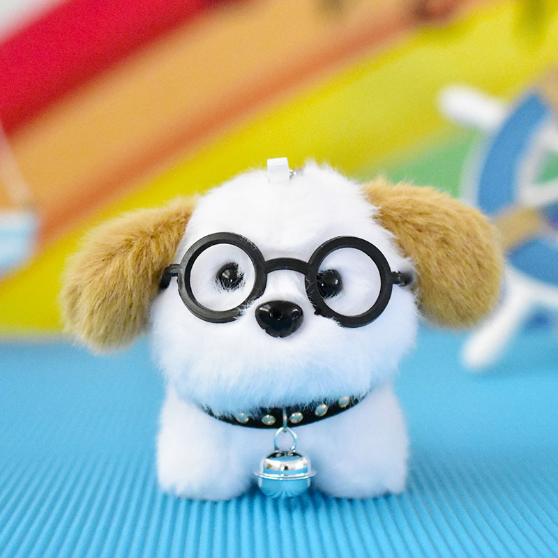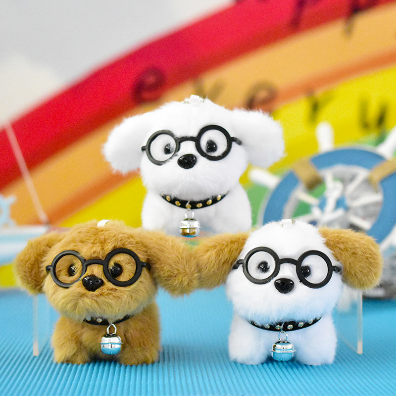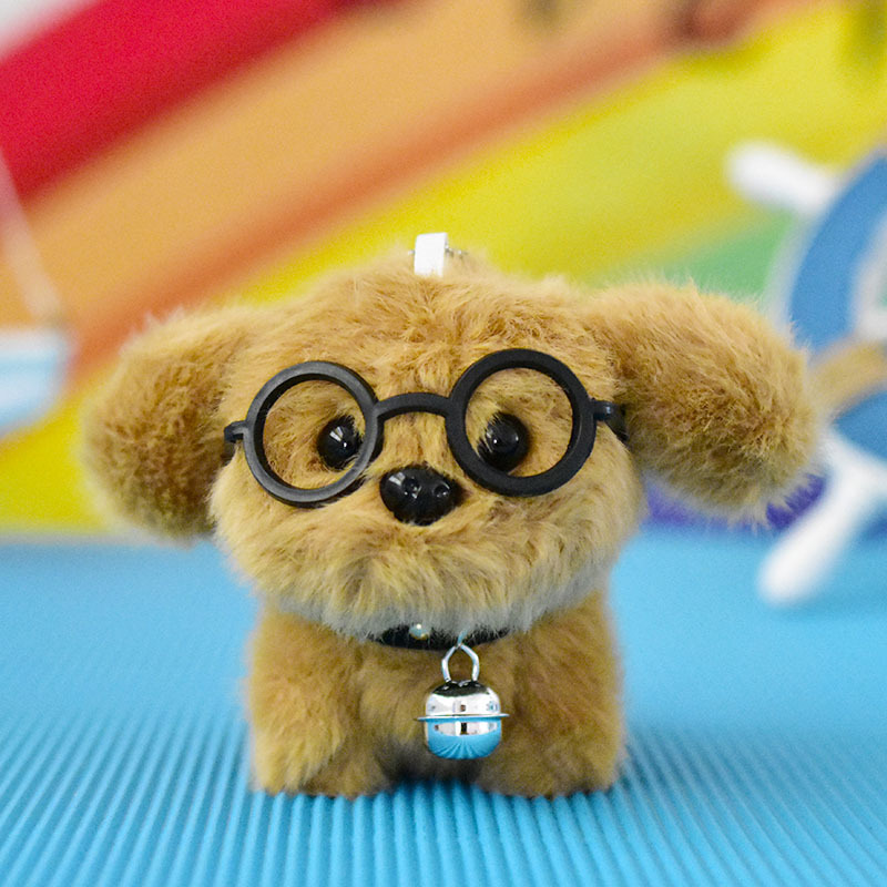 网红可爱萌眼镜小狗挂件毛绒玩具公仔卡通包包挂饰钥匙扣娃娃玩偶