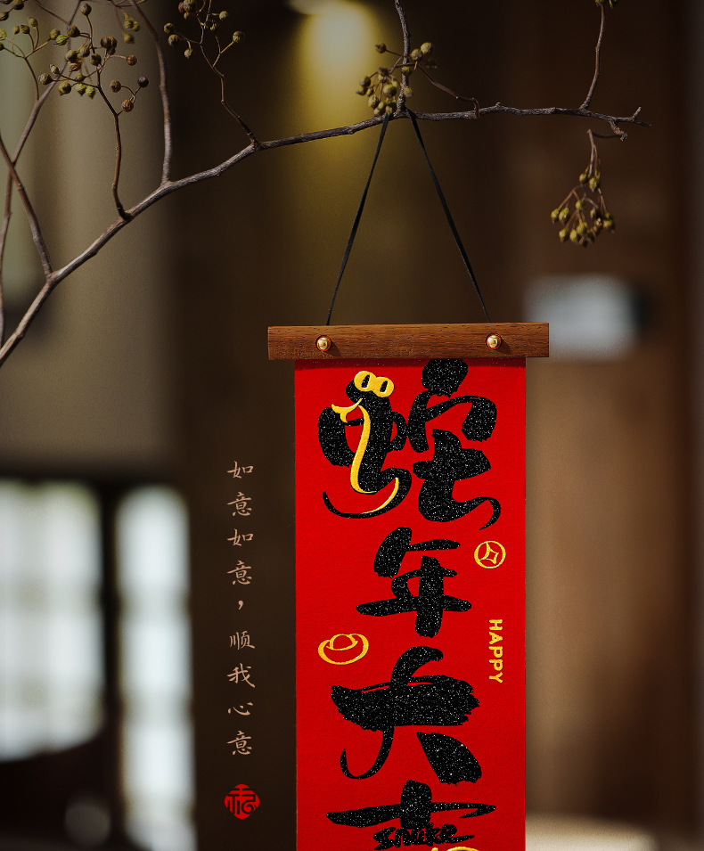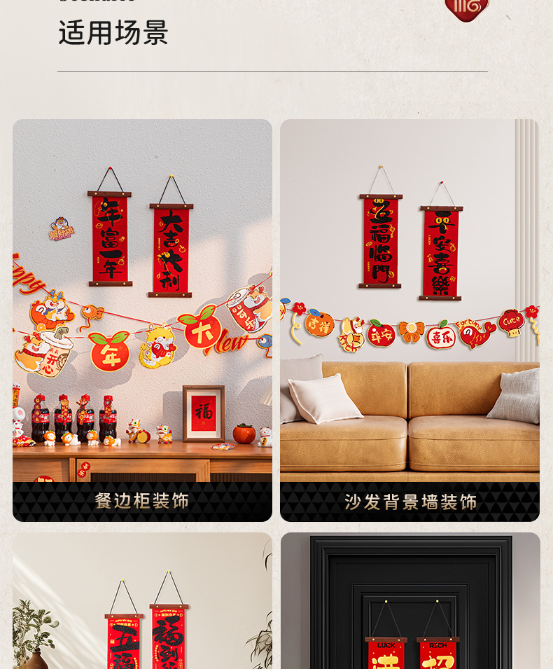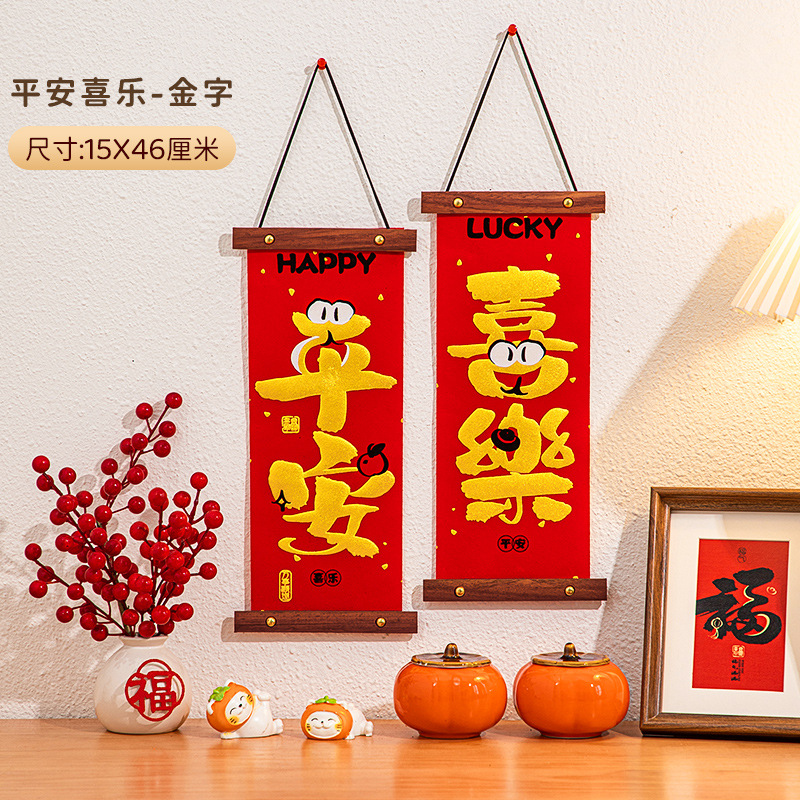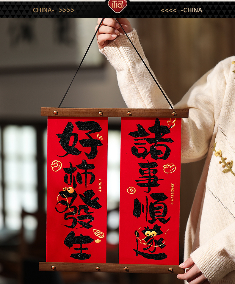 对联入户装饰木质挂件结婚布置新房背景墙绒布玄关春节装饰挂件