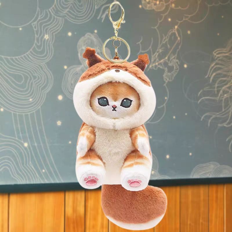 跨境新款猫福珊迪鲨鱼猫毛绒公仔日系卡通仿真猫咪挂件包挂饰玩偶