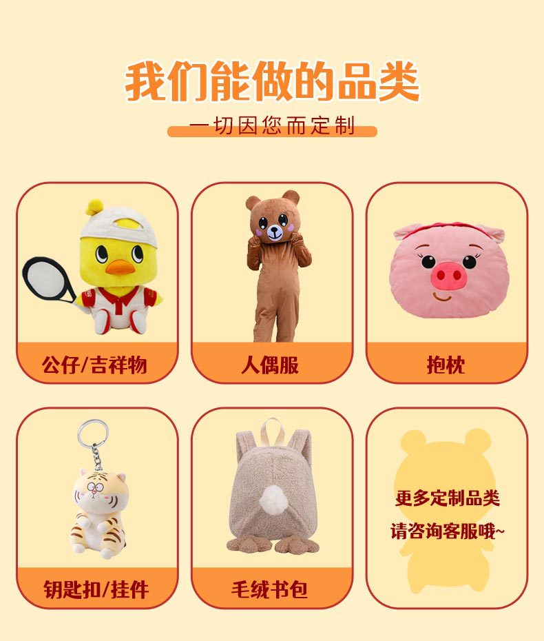 | plush toy customization(毛绒玩具定制) | USD $0.0 | 1399 piece available |