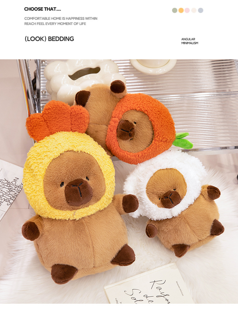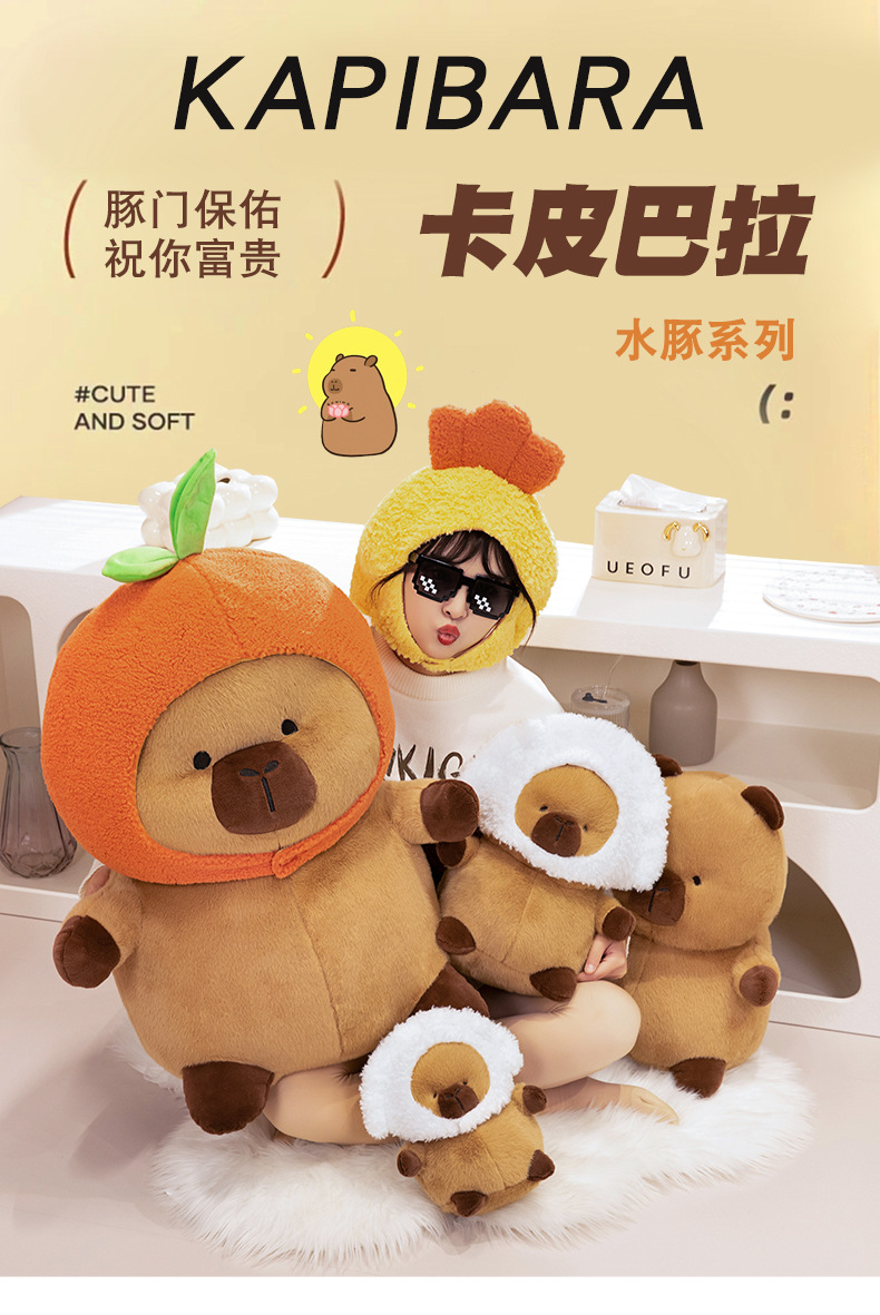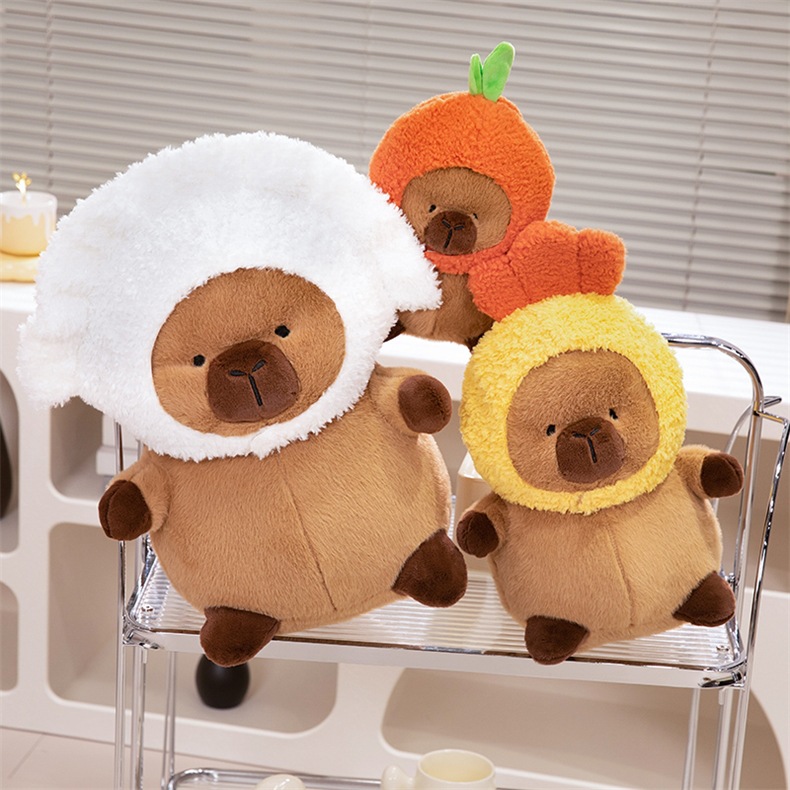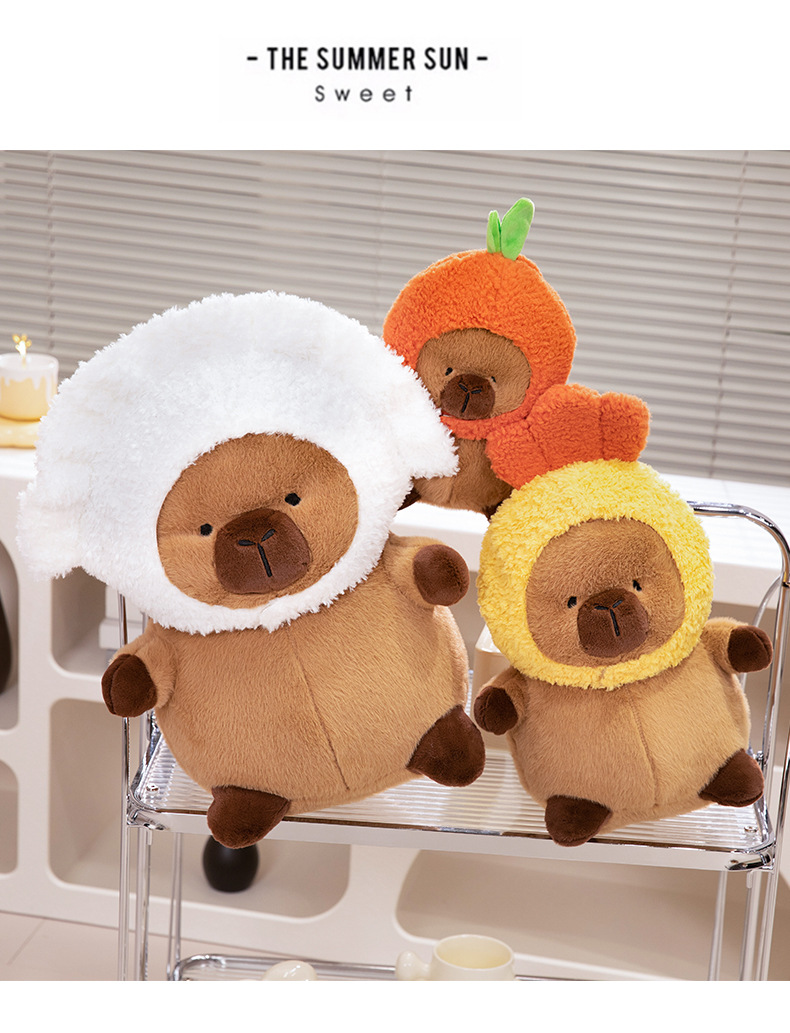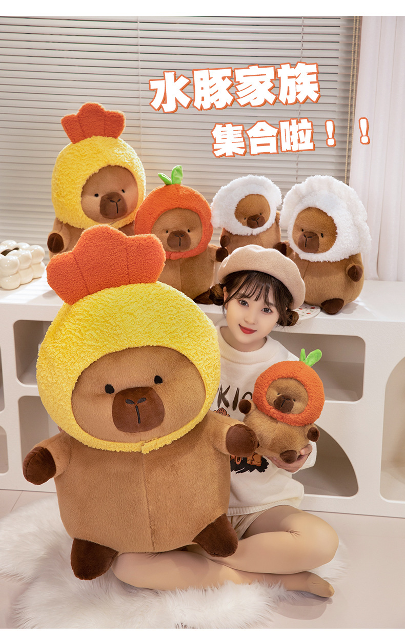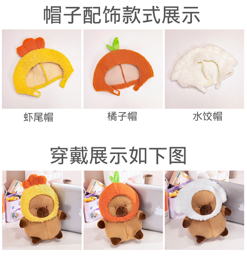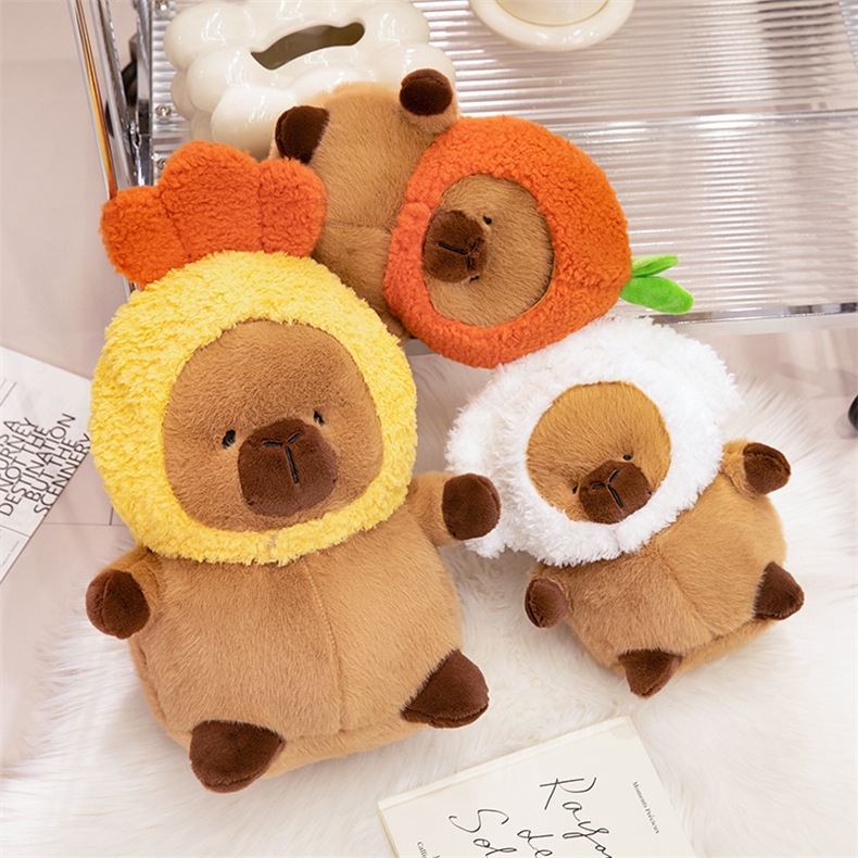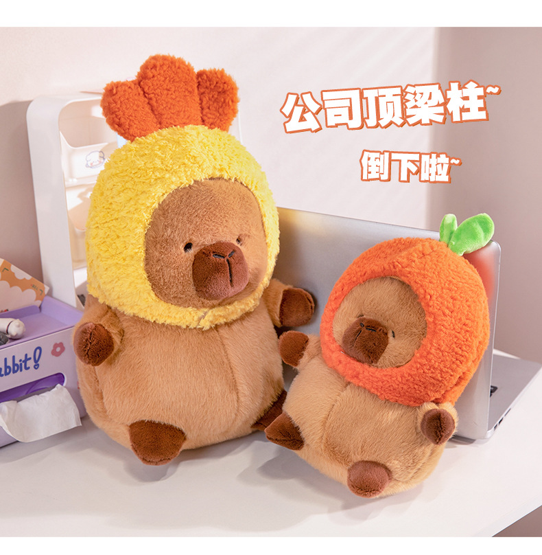 跨境爆品卡皮巴拉毛绒玩具蔬菜帽子水豚公仔儿童安抚娃娃节日礼品