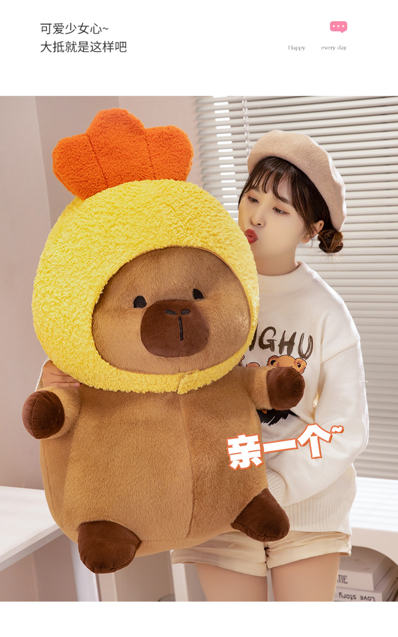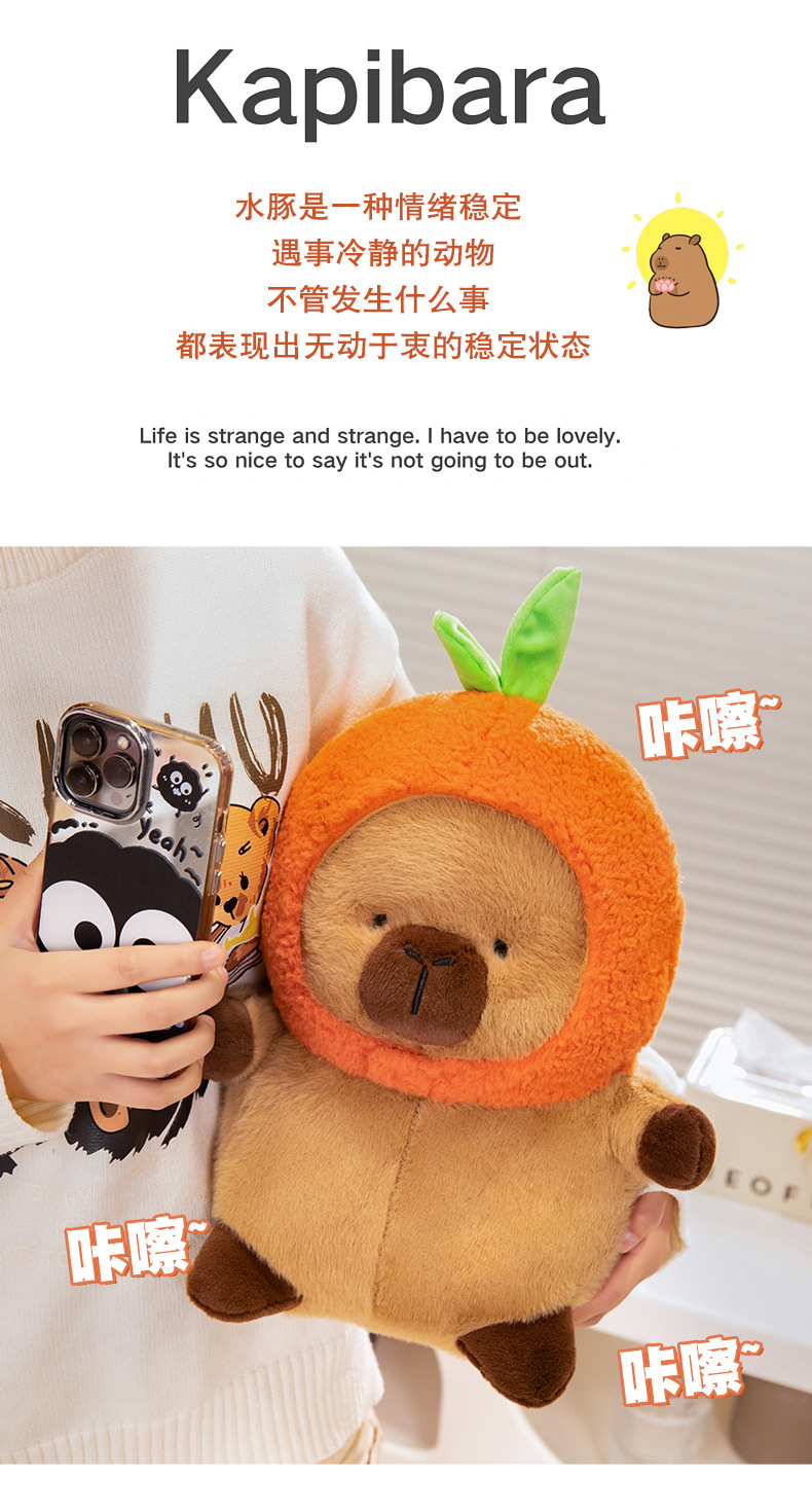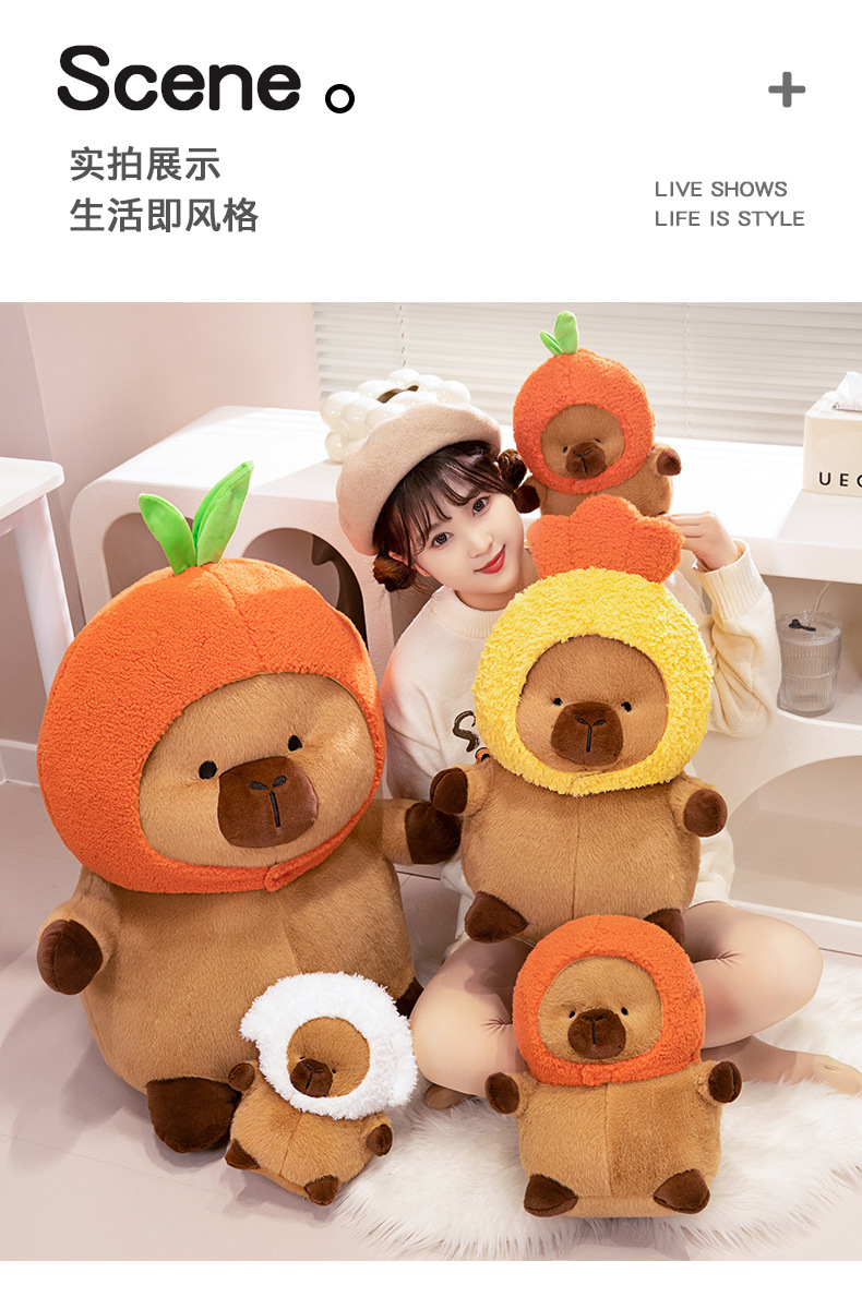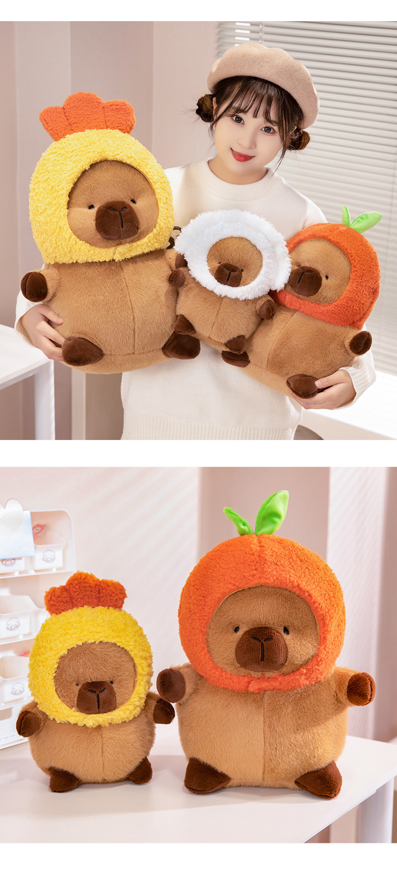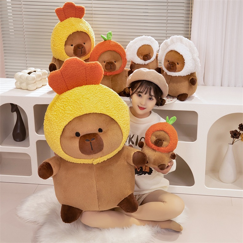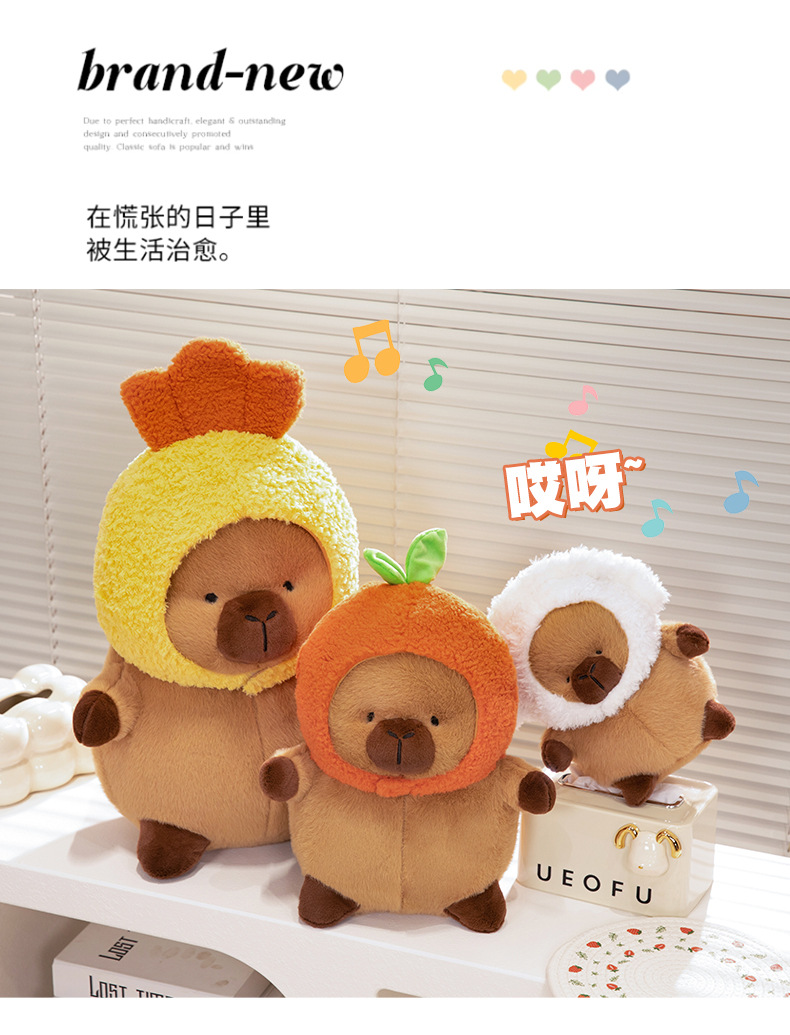 跨境爆品卡皮巴拉毛绒玩具蔬菜帽子水豚公仔儿童安抚娃娃节日礼品