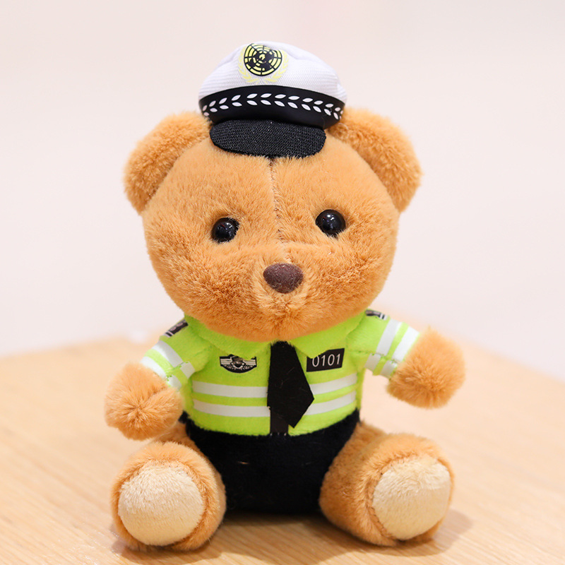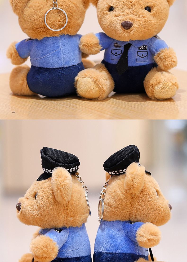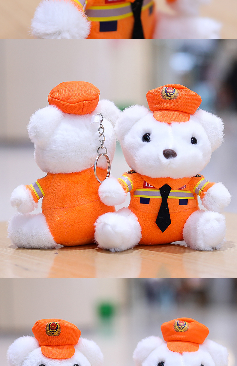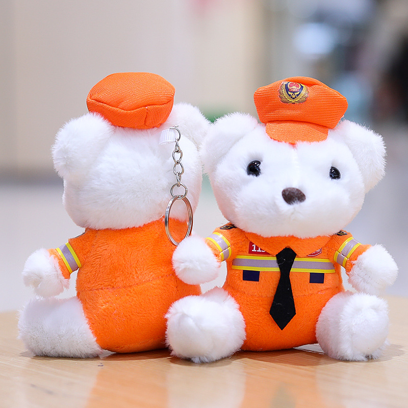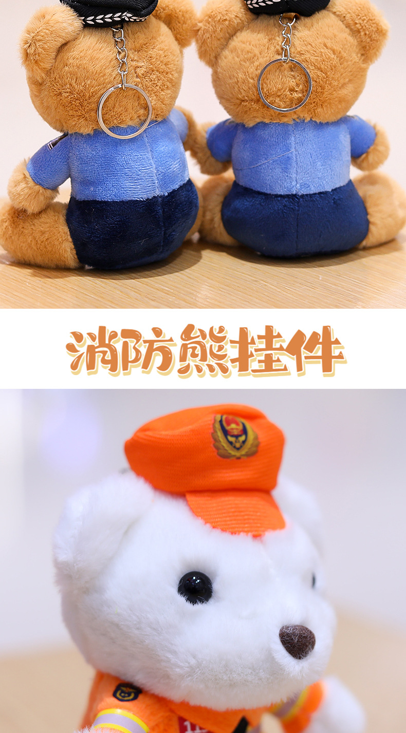 交警小熊挂件包包挂饰钥匙扣毛绒玩具公仔消防警察熊玩偶logo潮玩