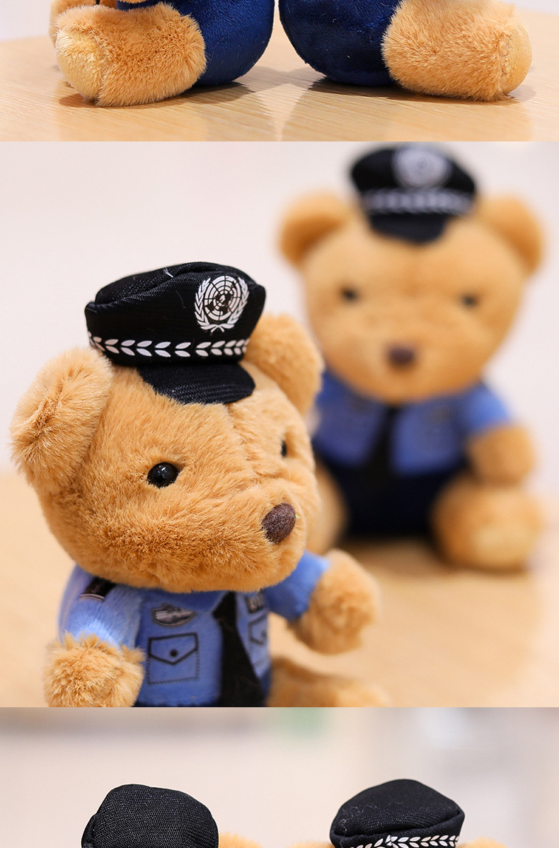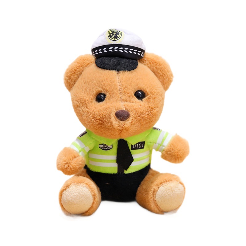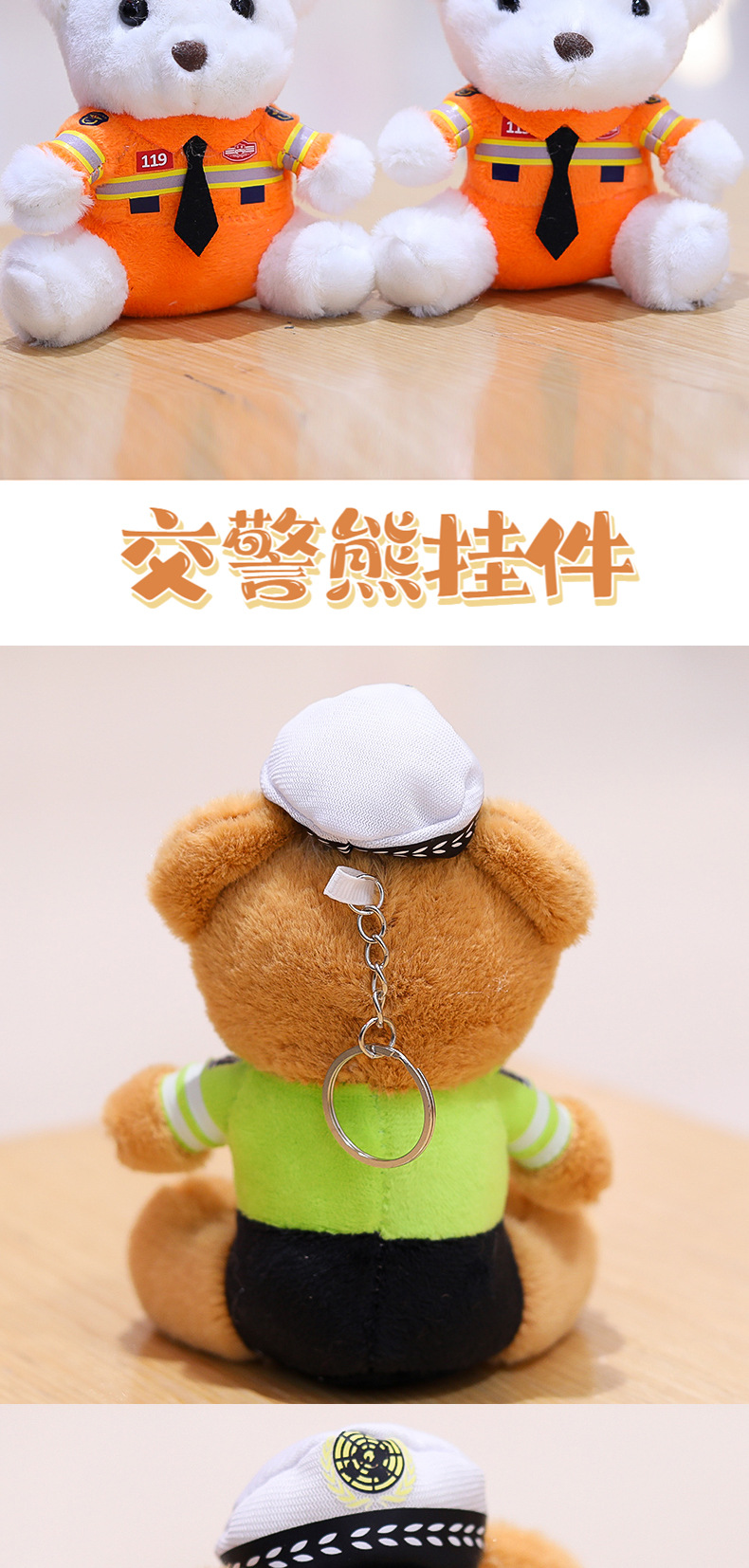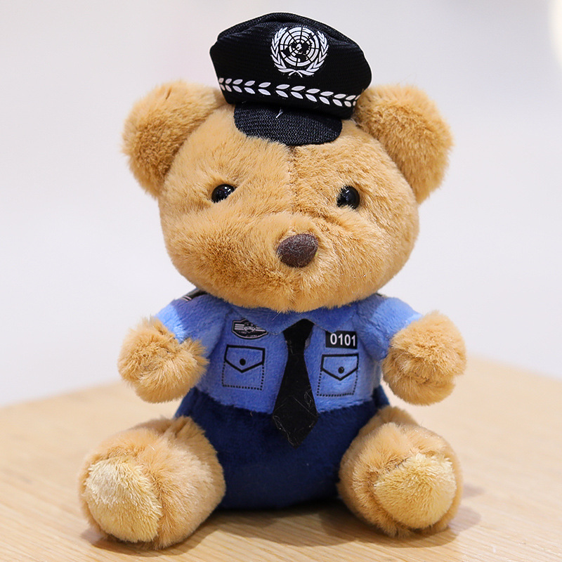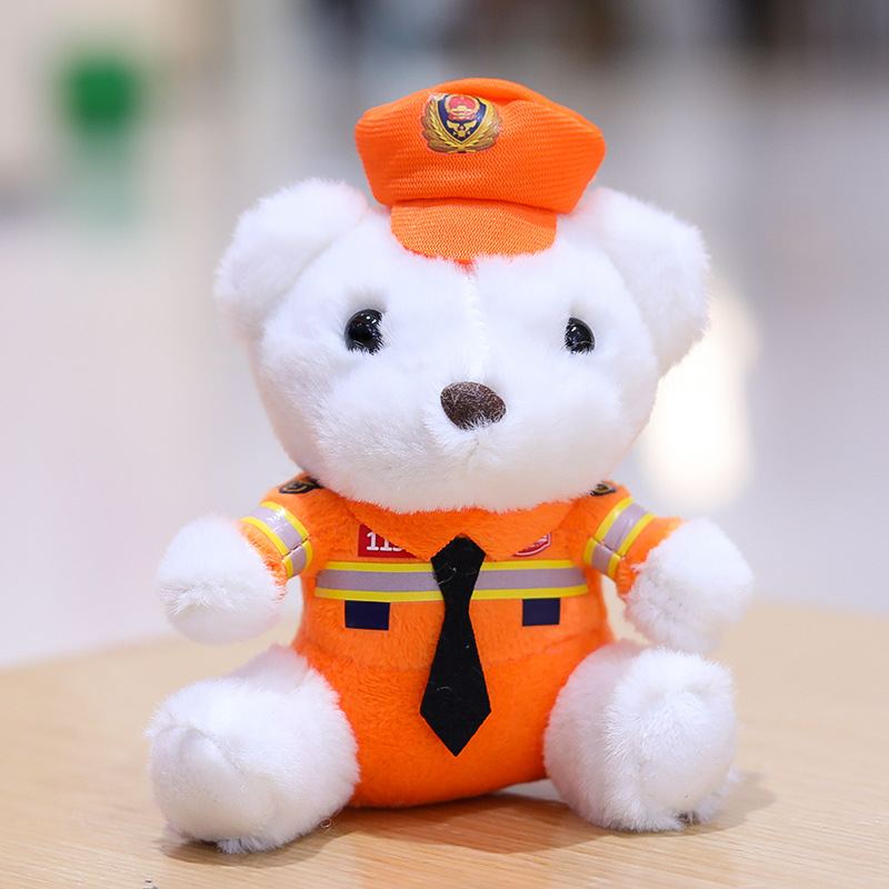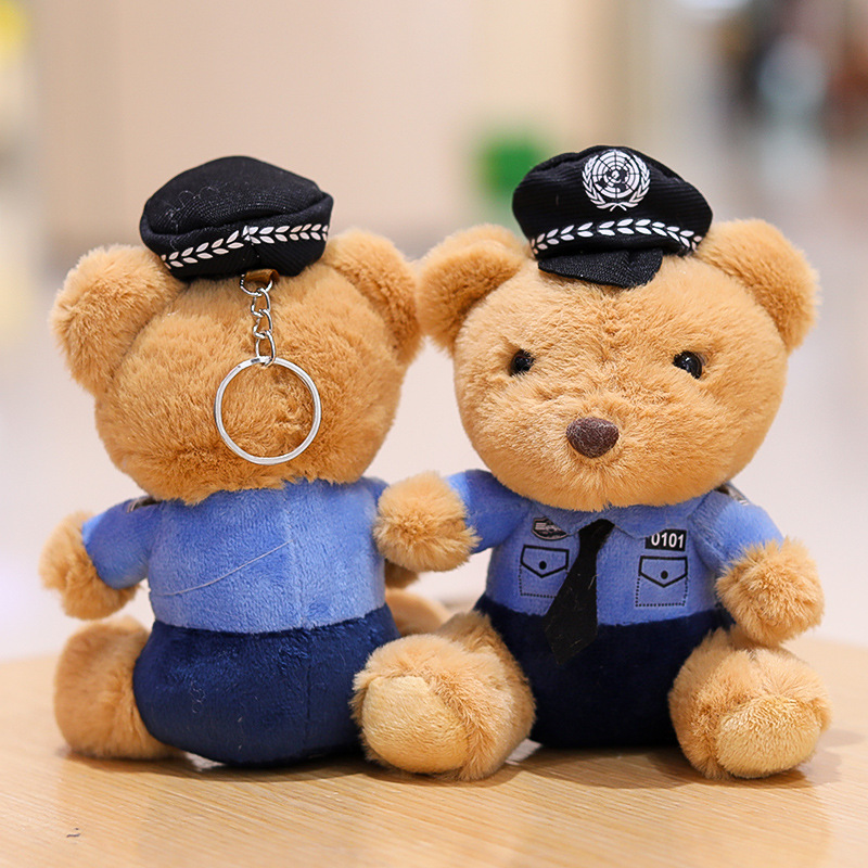 交警小熊挂件包包挂饰钥匙扣毛绒玩具公仔消防警察熊玩偶logo潮玩