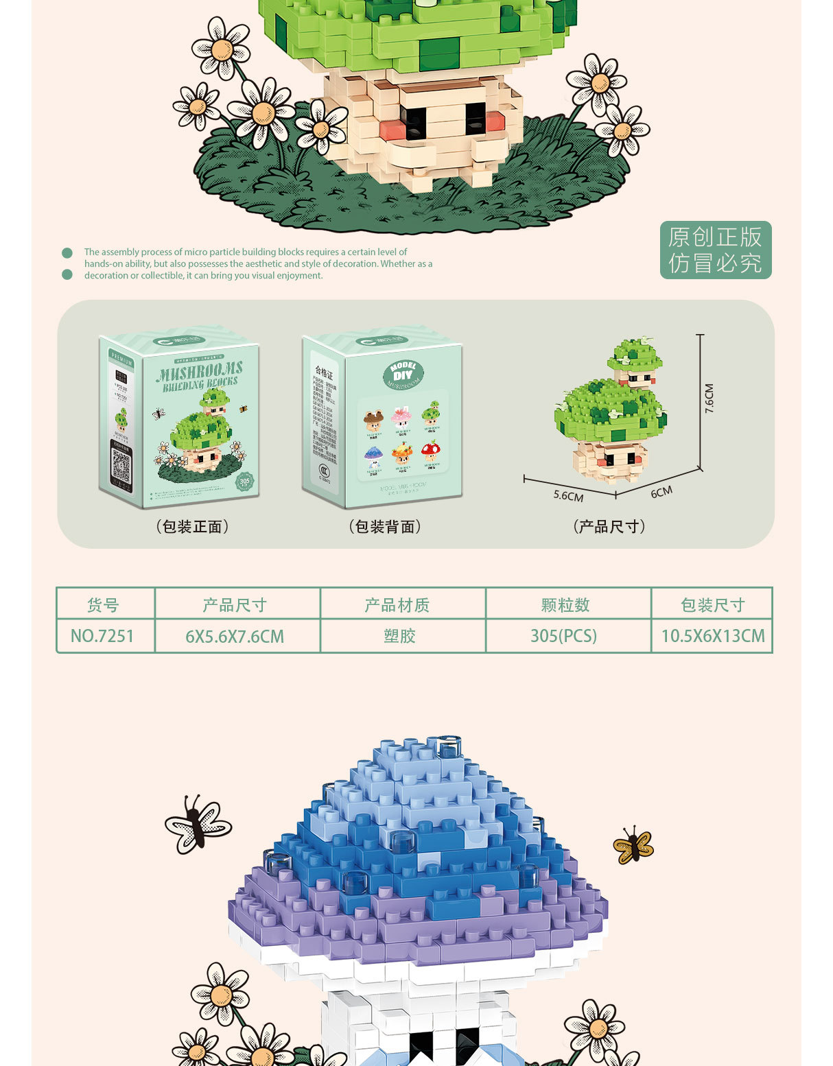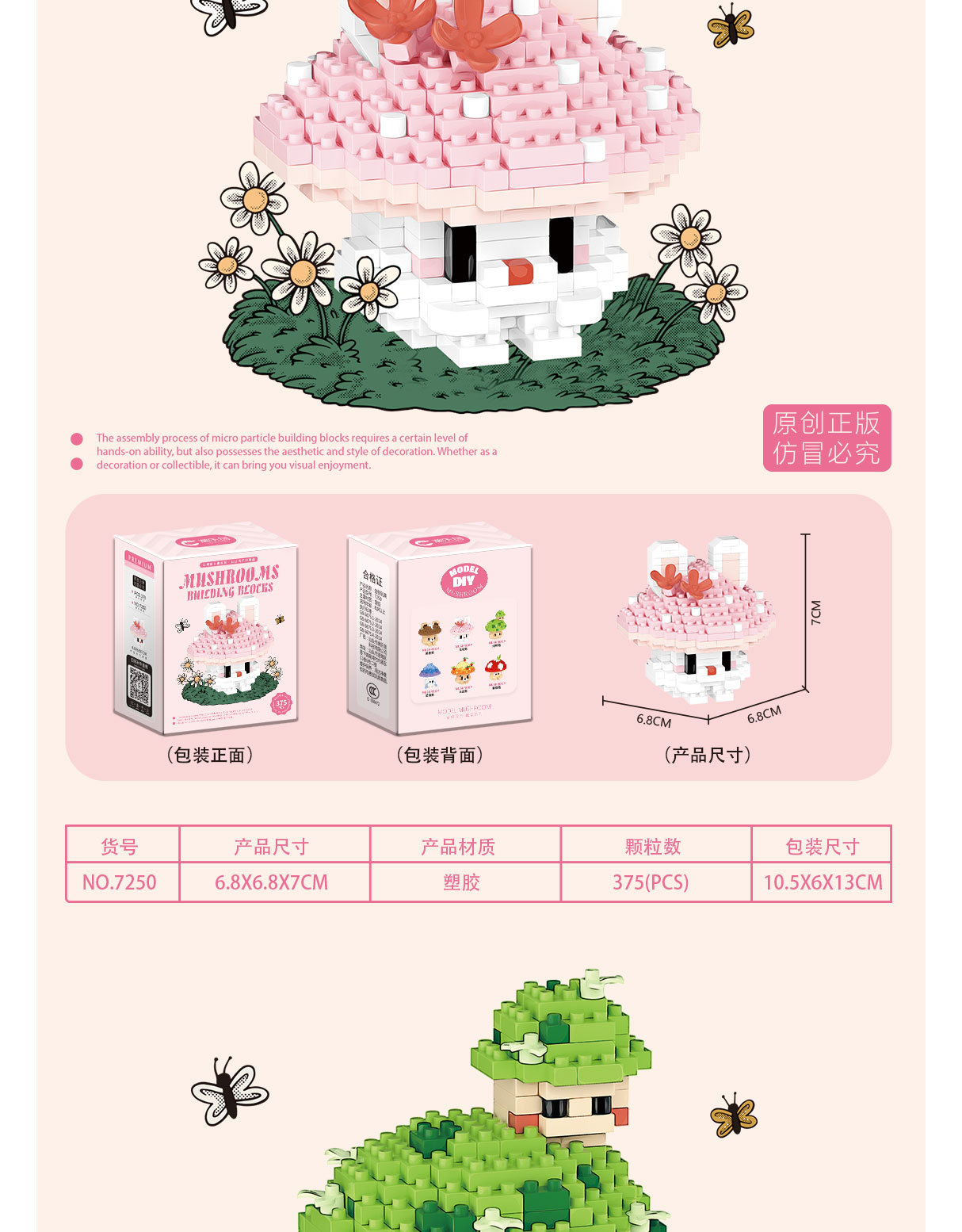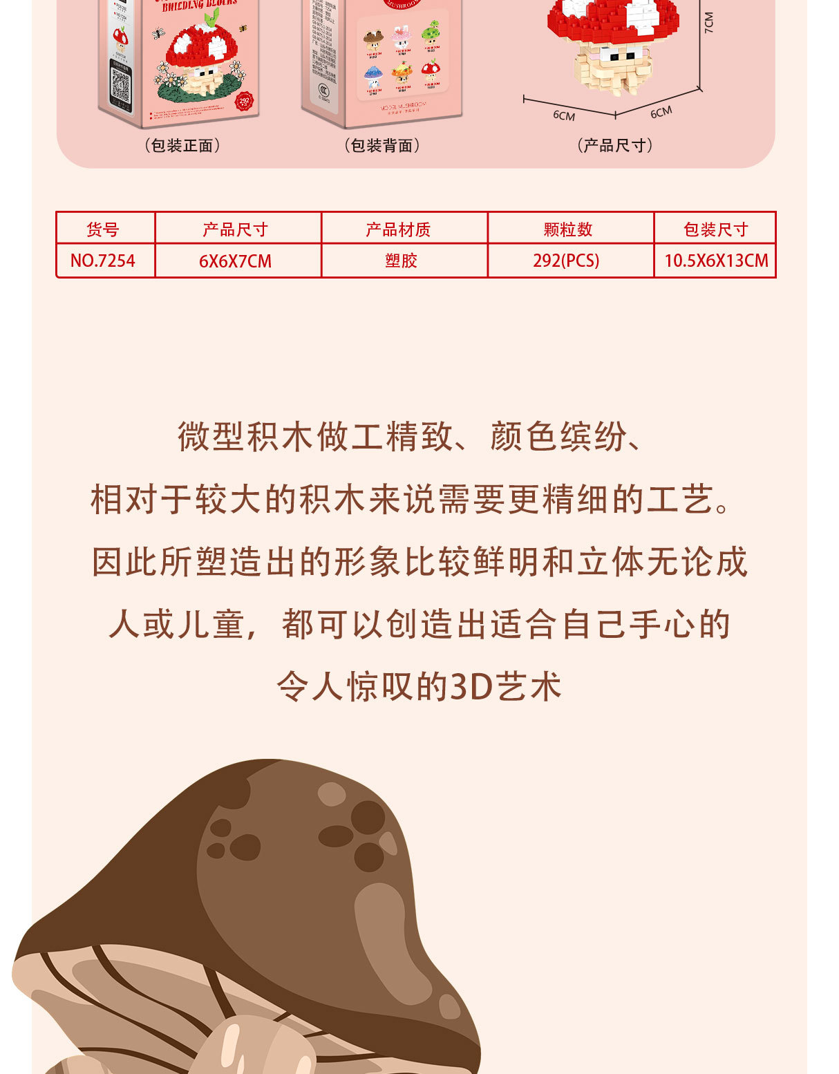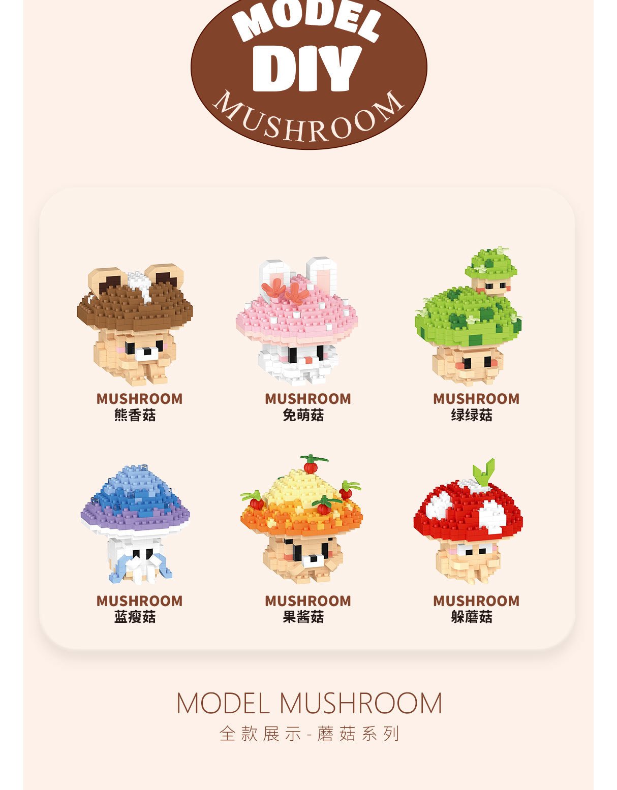 兼容乐高蘑菇微颗粒拼装积木卡通公仔可爱桌面摆件儿童益智玩具