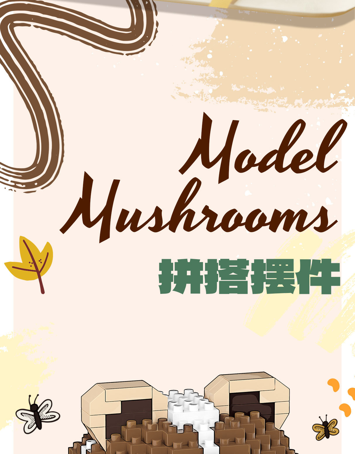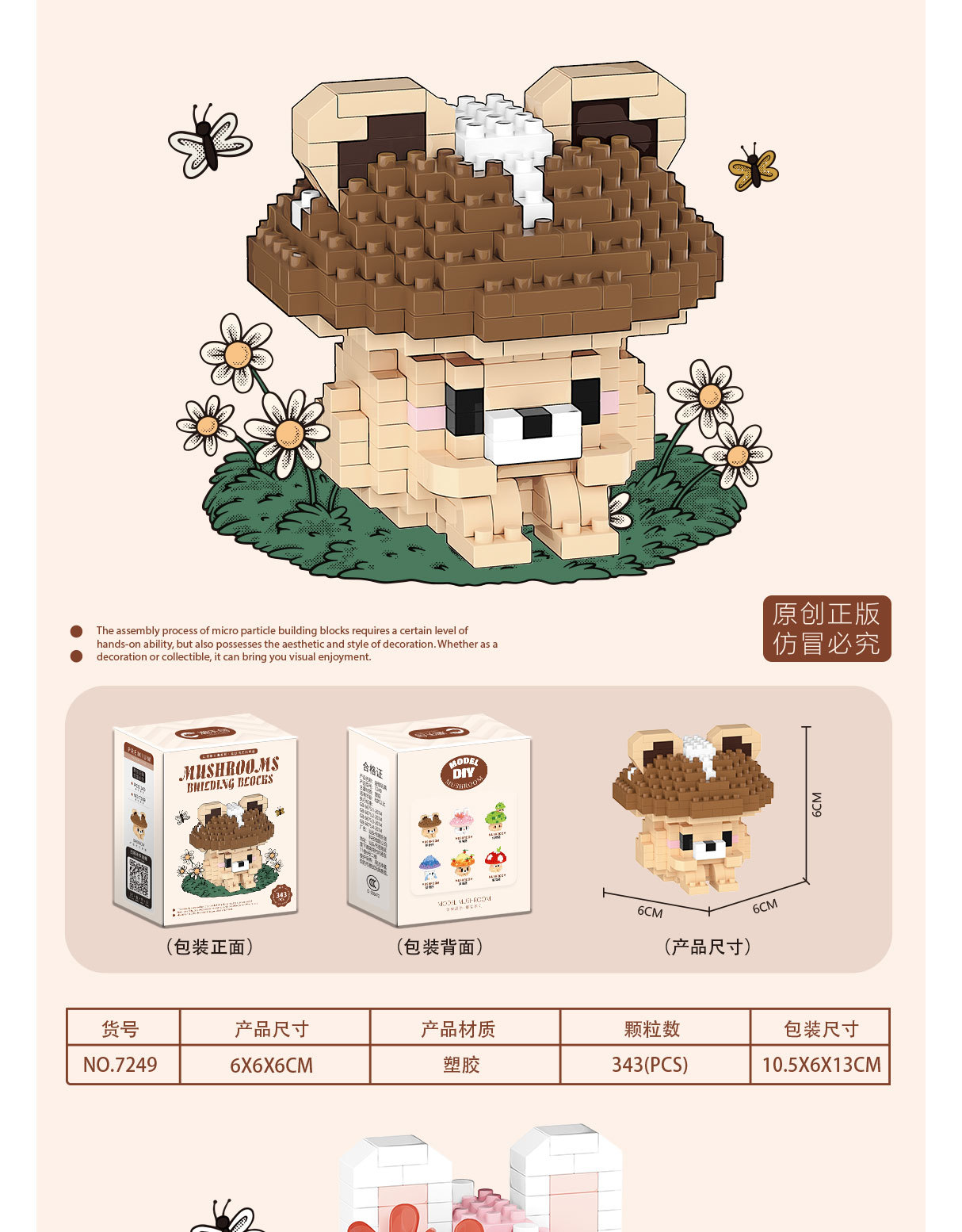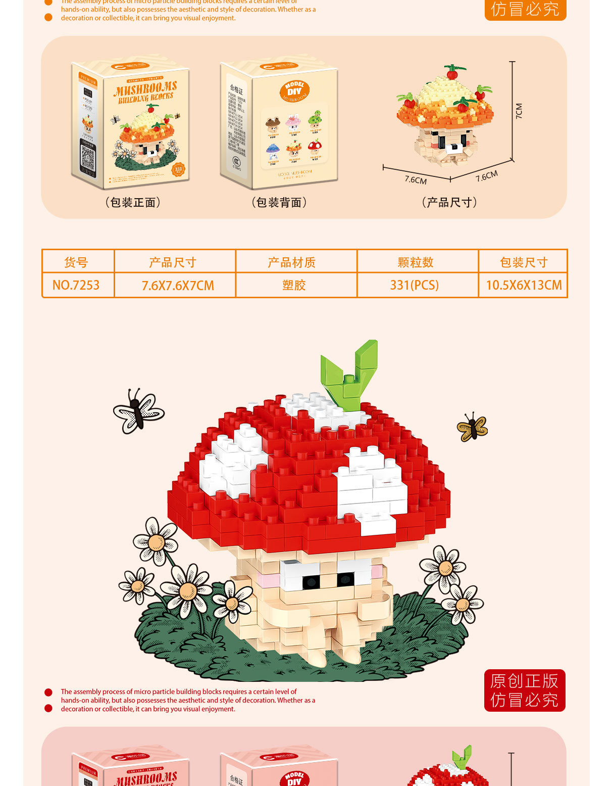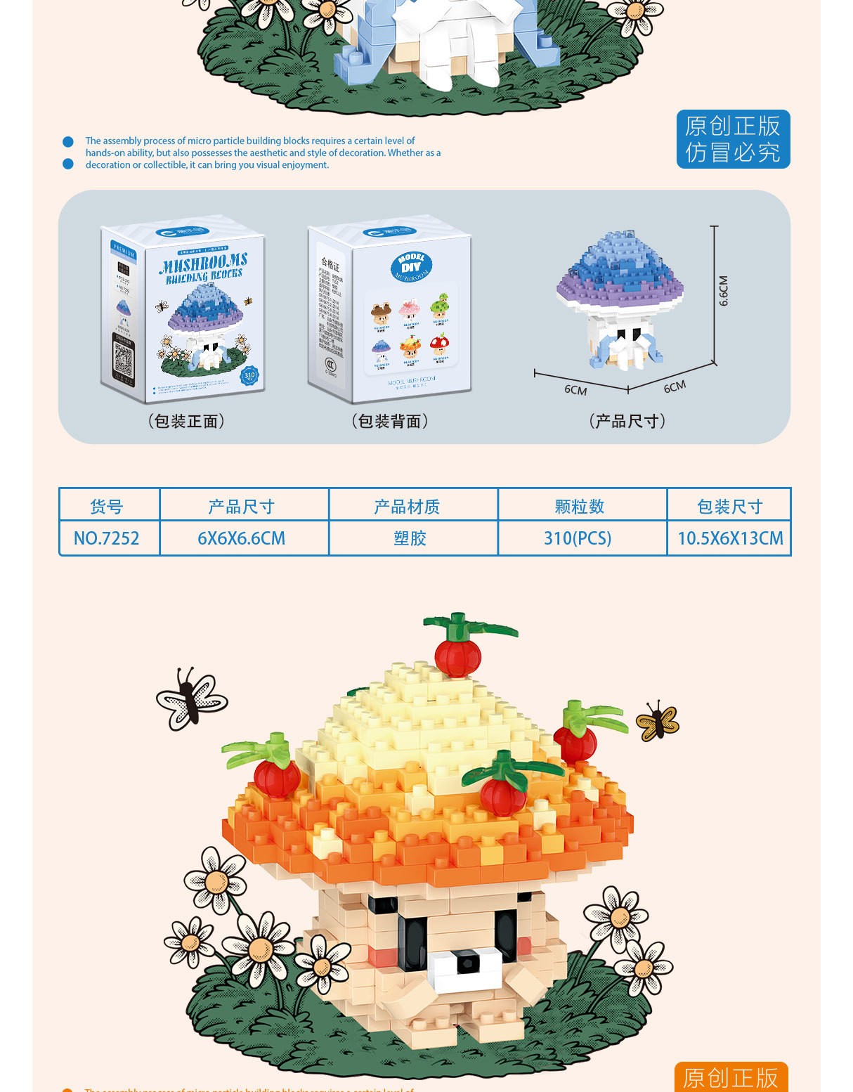 兼容乐高蘑菇微颗粒拼装积木卡通公仔可爱桌面摆件儿童益智玩具