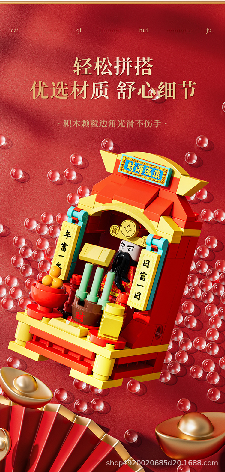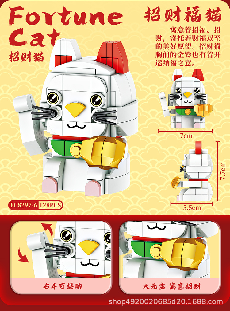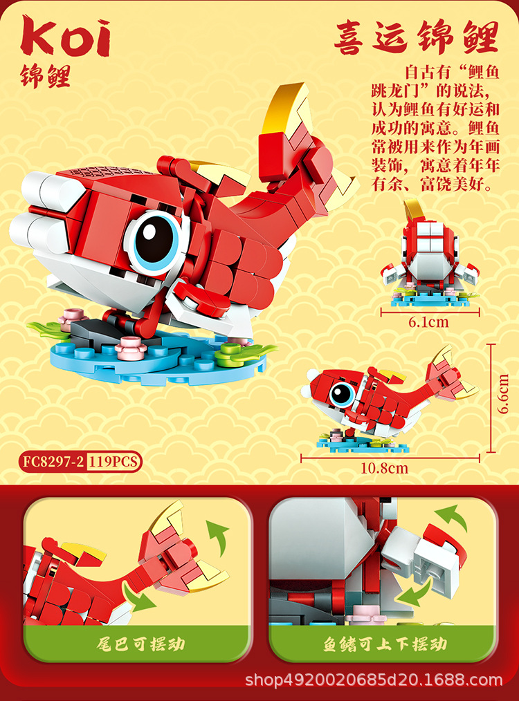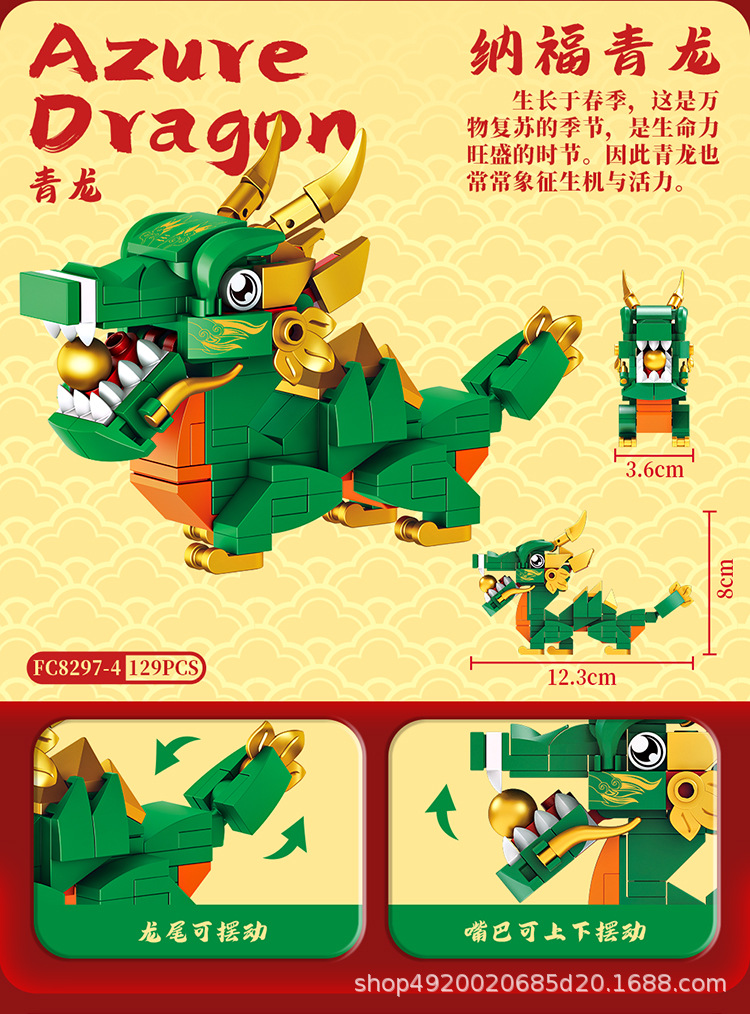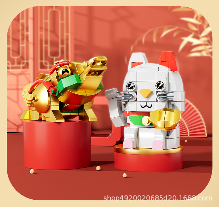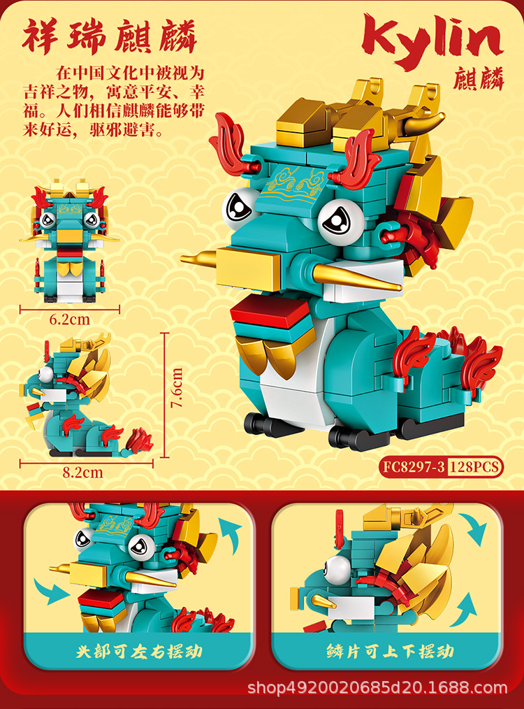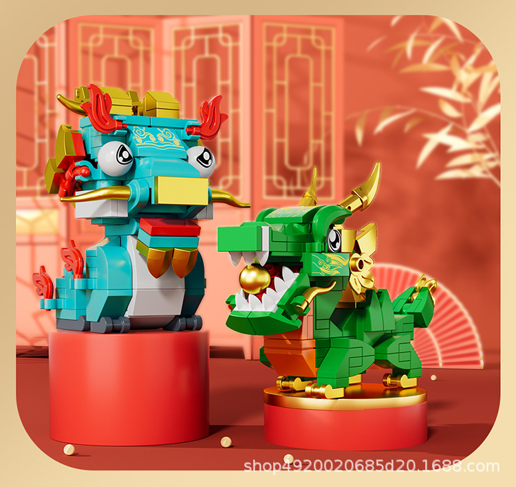 国潮积木神兽中国风摆件醒狮兼容乐高龙年伴手礼新年元旦礼物玩具