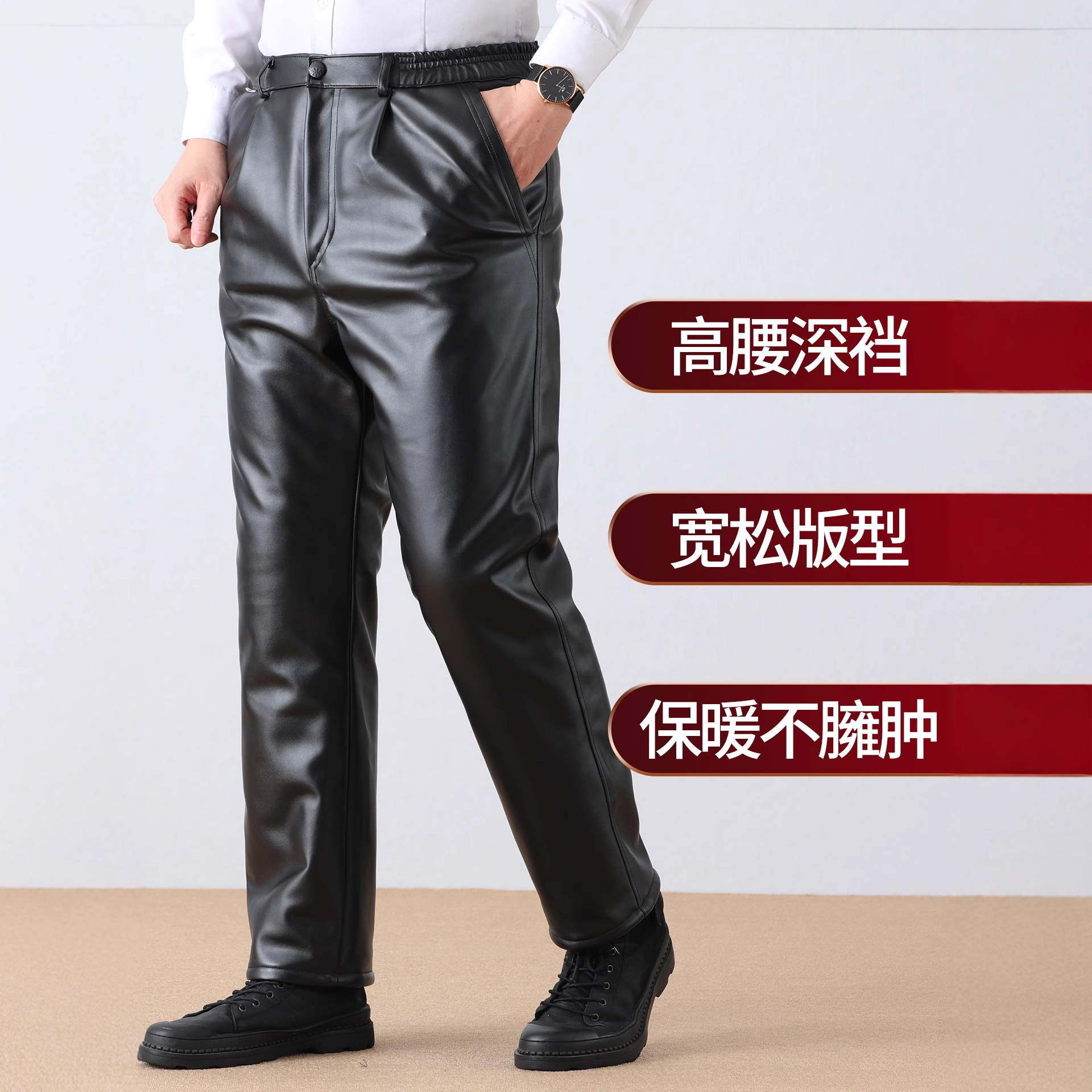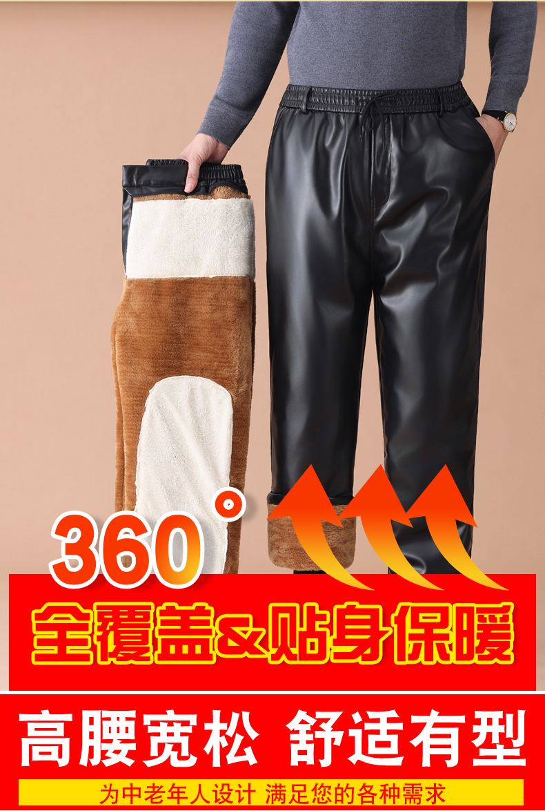 加厚加绒皮裤男冬季代驾外卖骑行防风防水保暖裤东北外穿皮棉裤男
