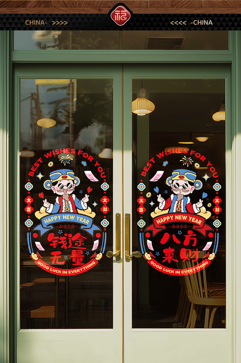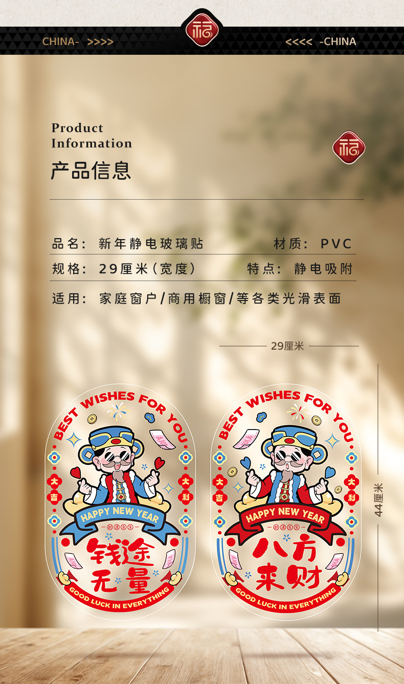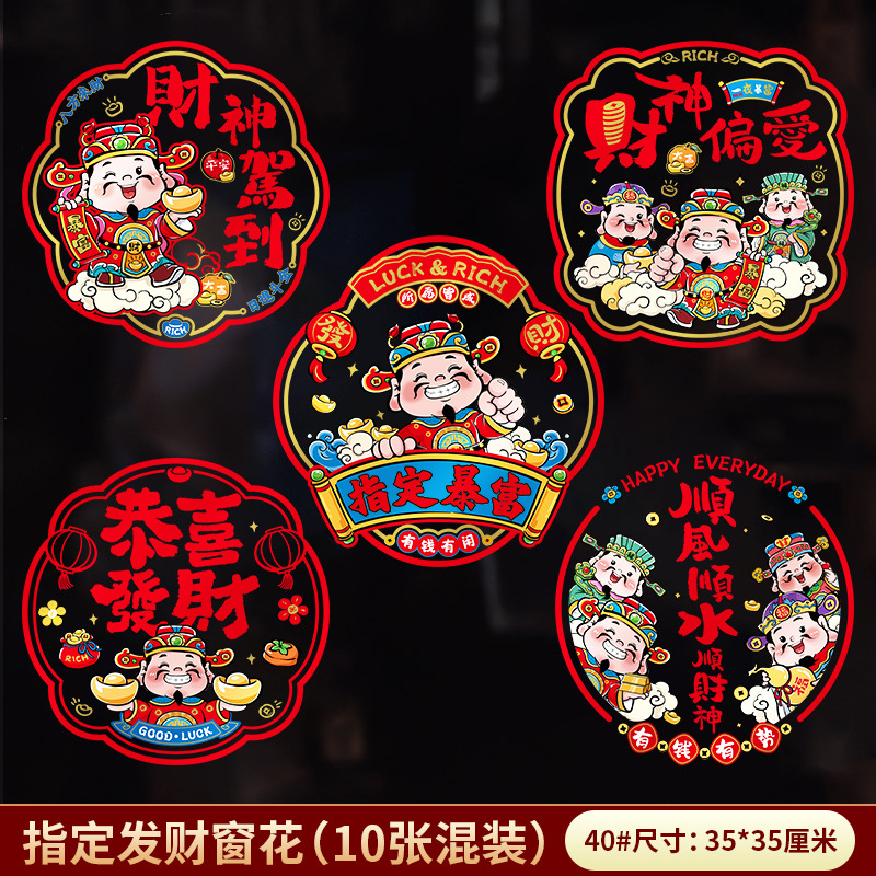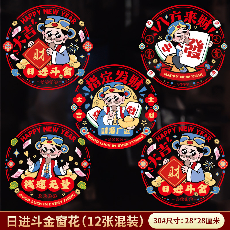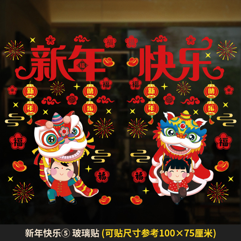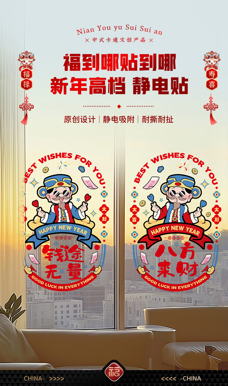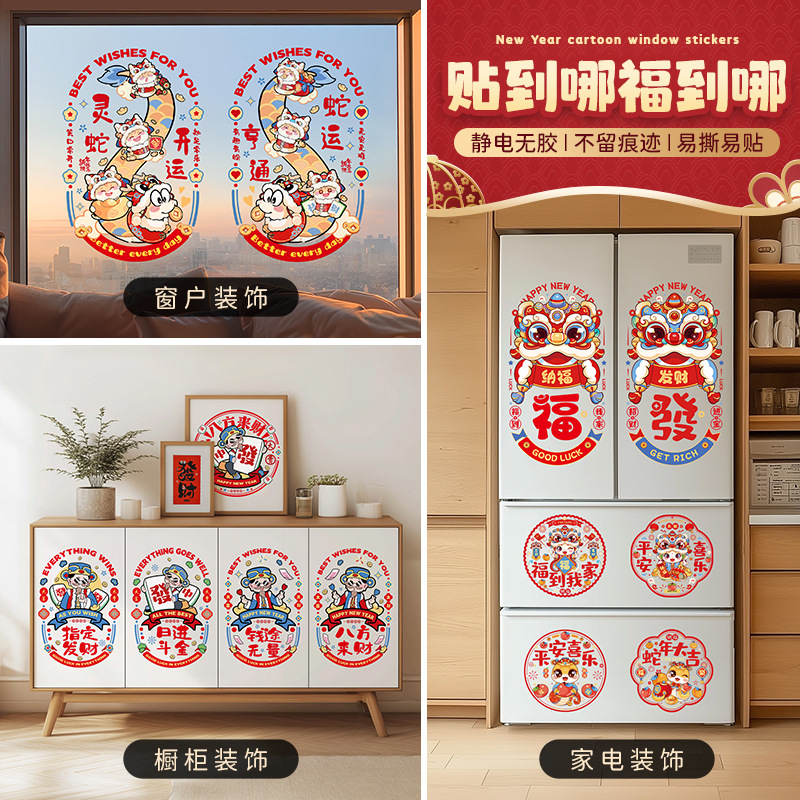 窗花静电贴2026马年新年装饰玻璃贴生肖年画福字门贴春节过年装饰