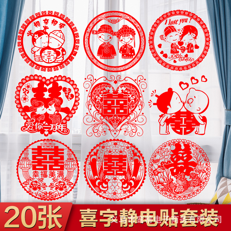 结婚静电喜字贴创意装饰窗花婚礼婚房布置玻璃贴纸喜字婚庆