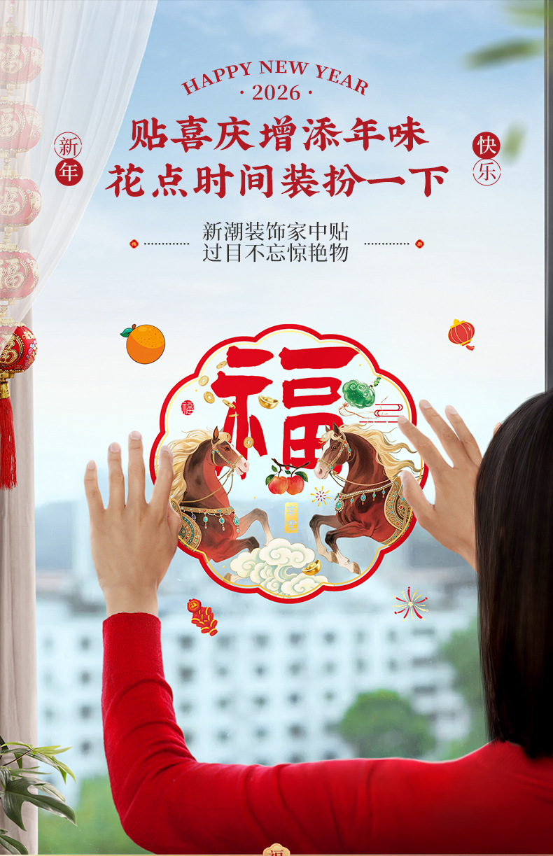 马年窗花新年贴纸2026静电贴过年年货窗贴春节玻璃门贴剪纸装饰品
