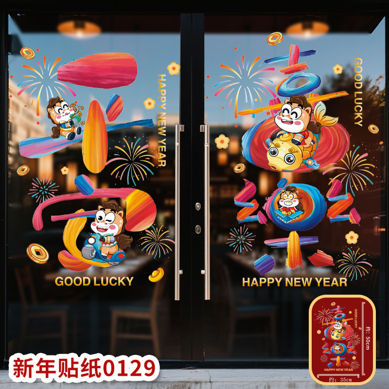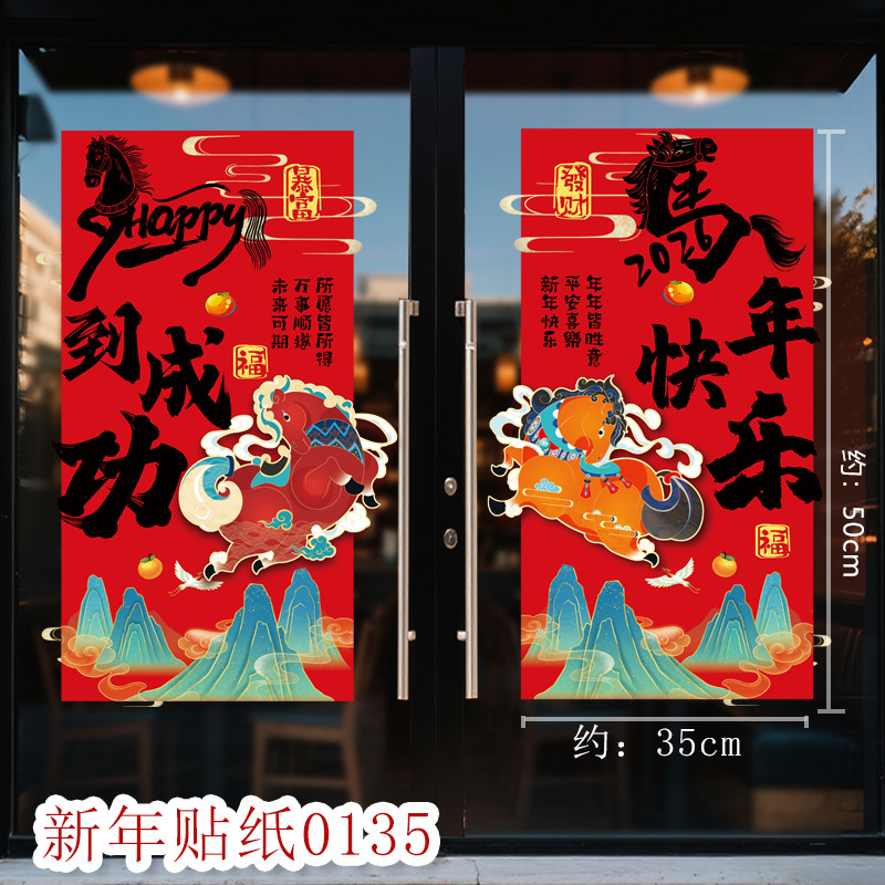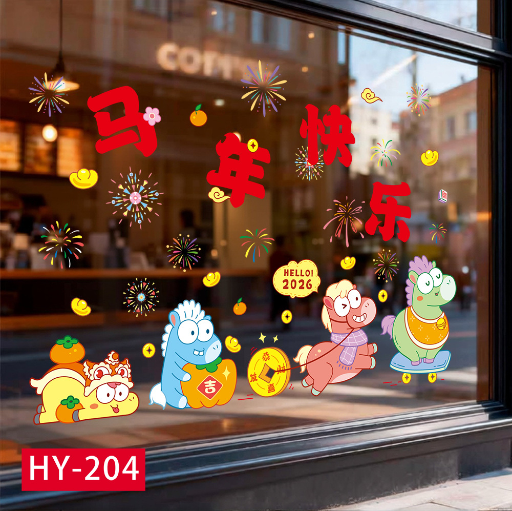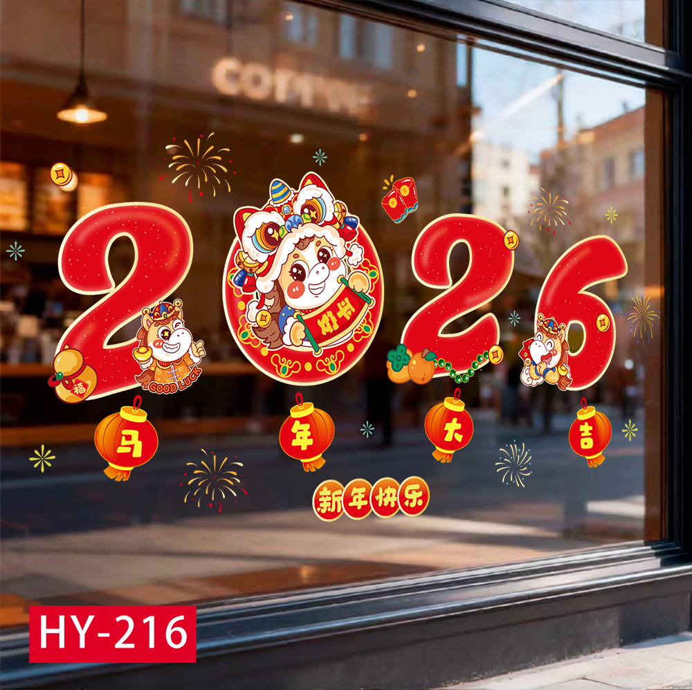 2026新年静电贴马年春节新年玻璃贴纸橱窗静电贴窗花过年元旦窗贴