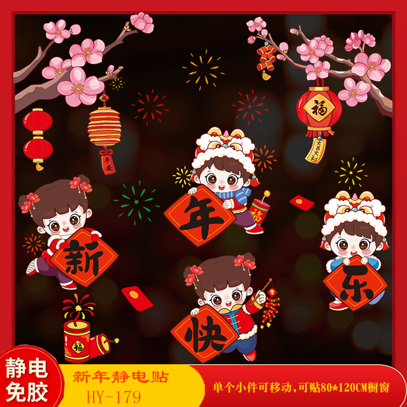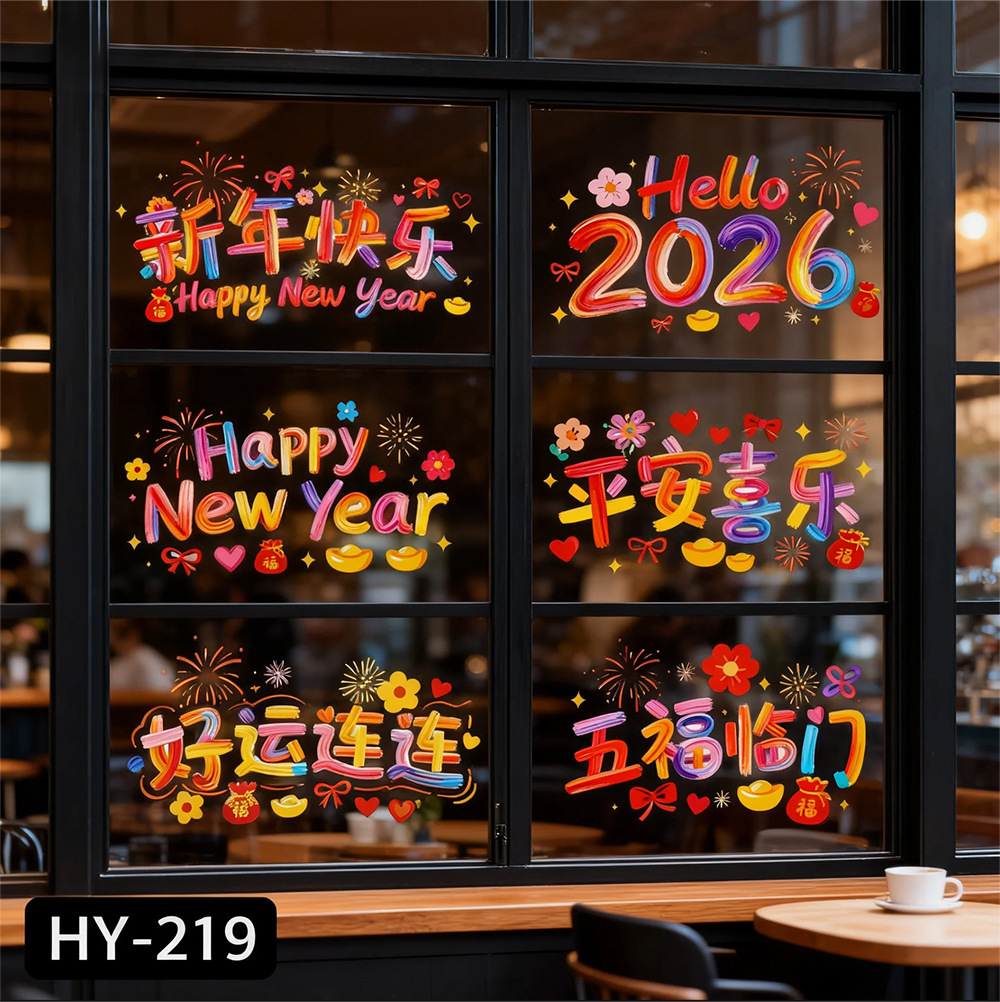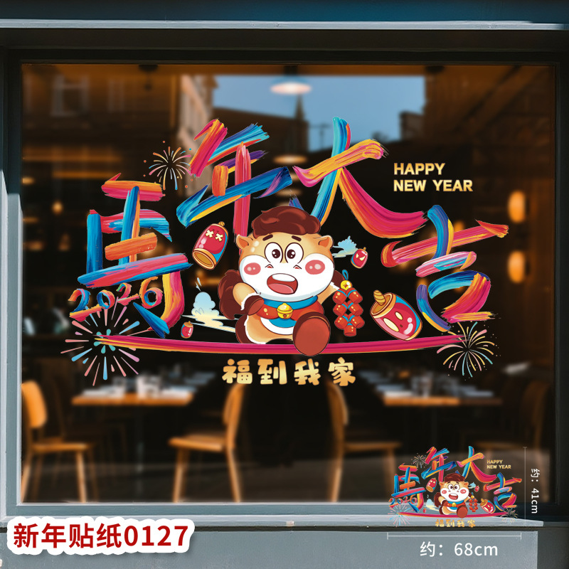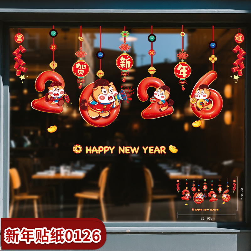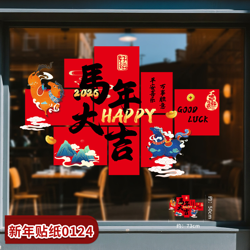 2026新年静电贴马年春节新年玻璃贴纸橱窗静电贴窗花过年元旦窗贴